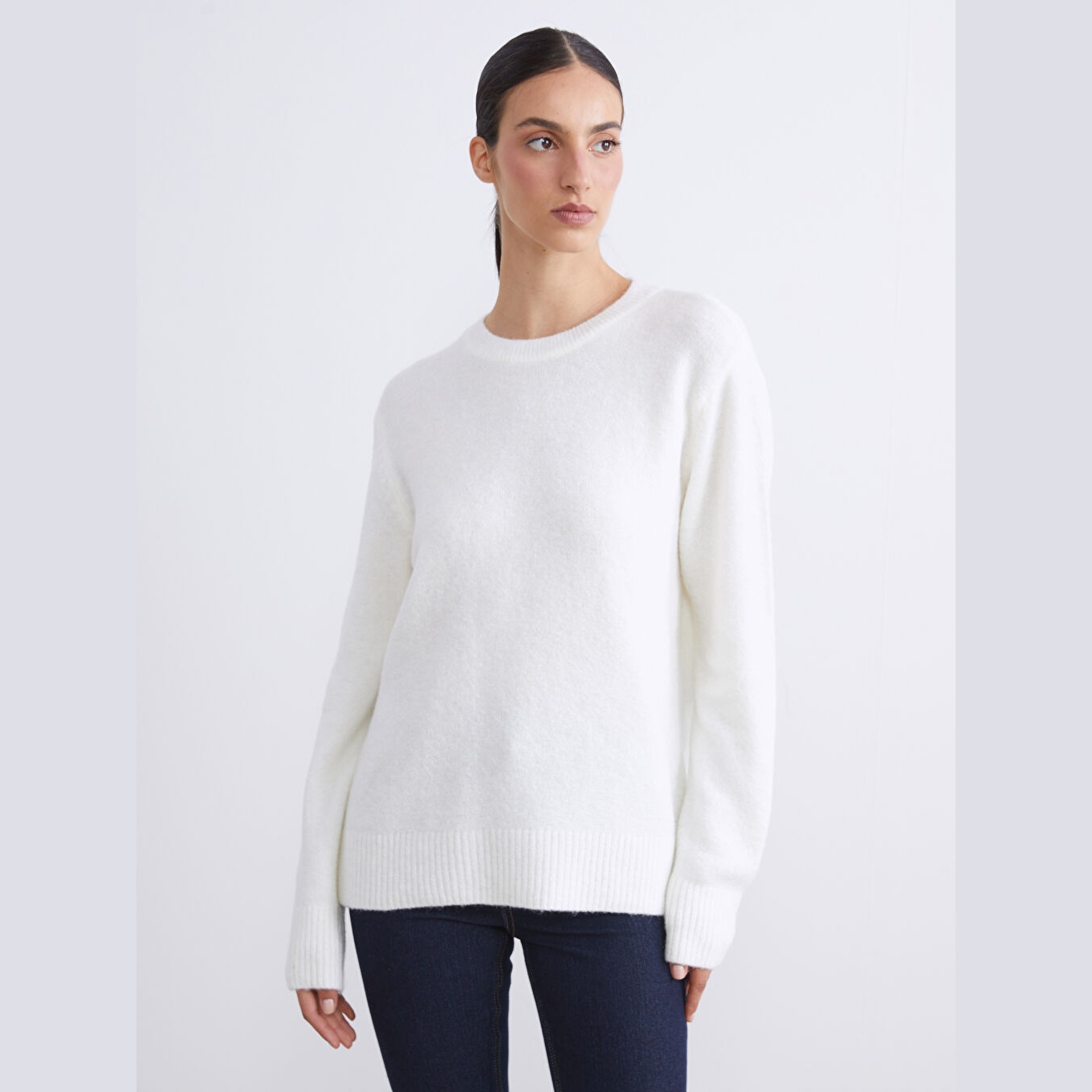 كنزة نسائية بياقة دائرية من LCW Classic – إكرو (قصة واسعة، تصميم سادة، خامة تحتوي على صوف بنسبة 9%)