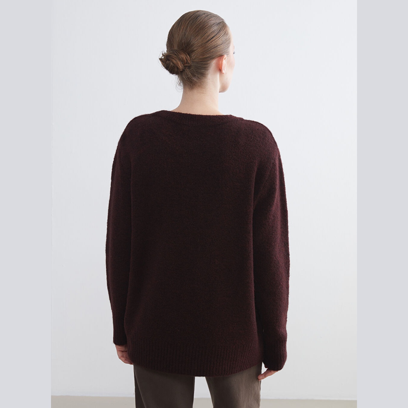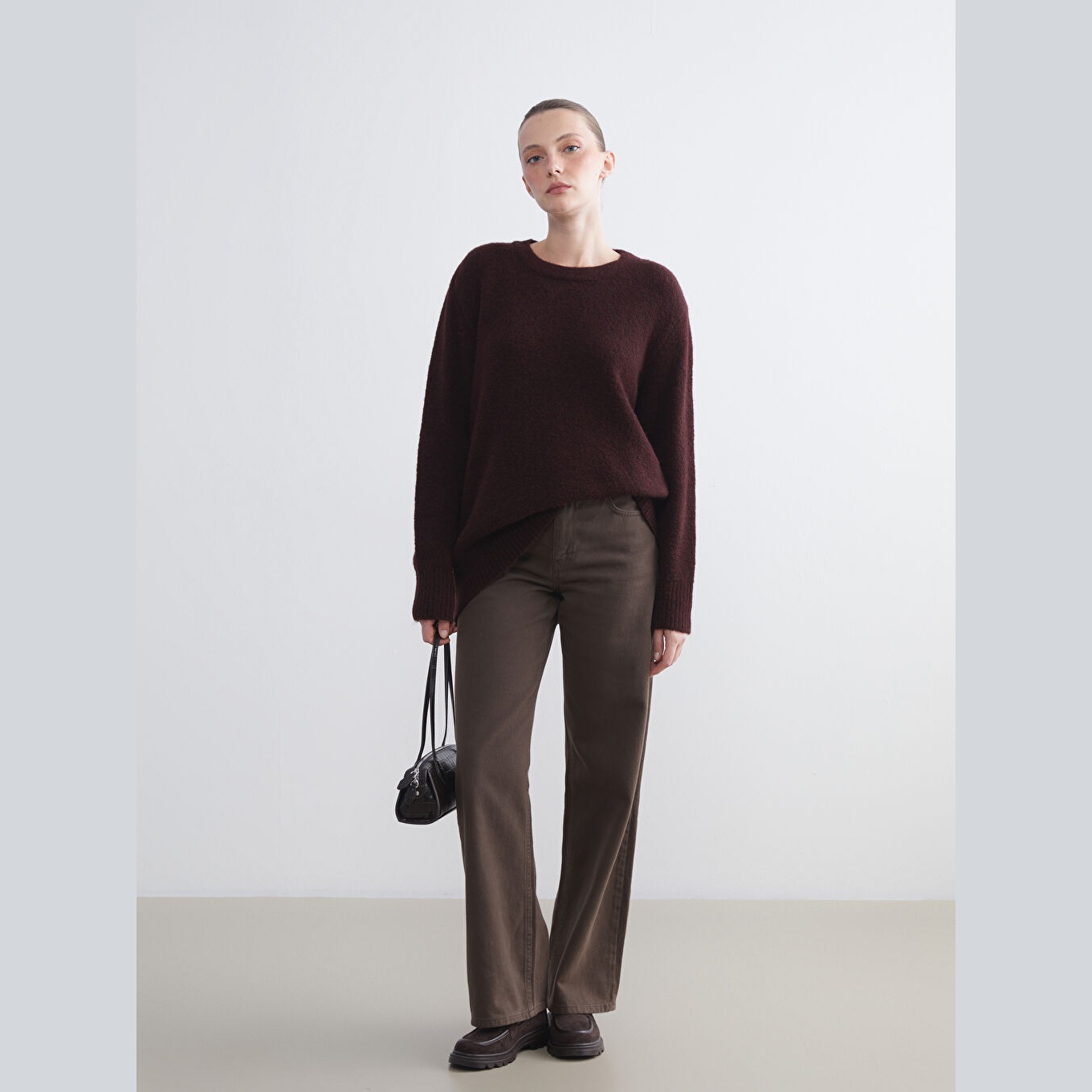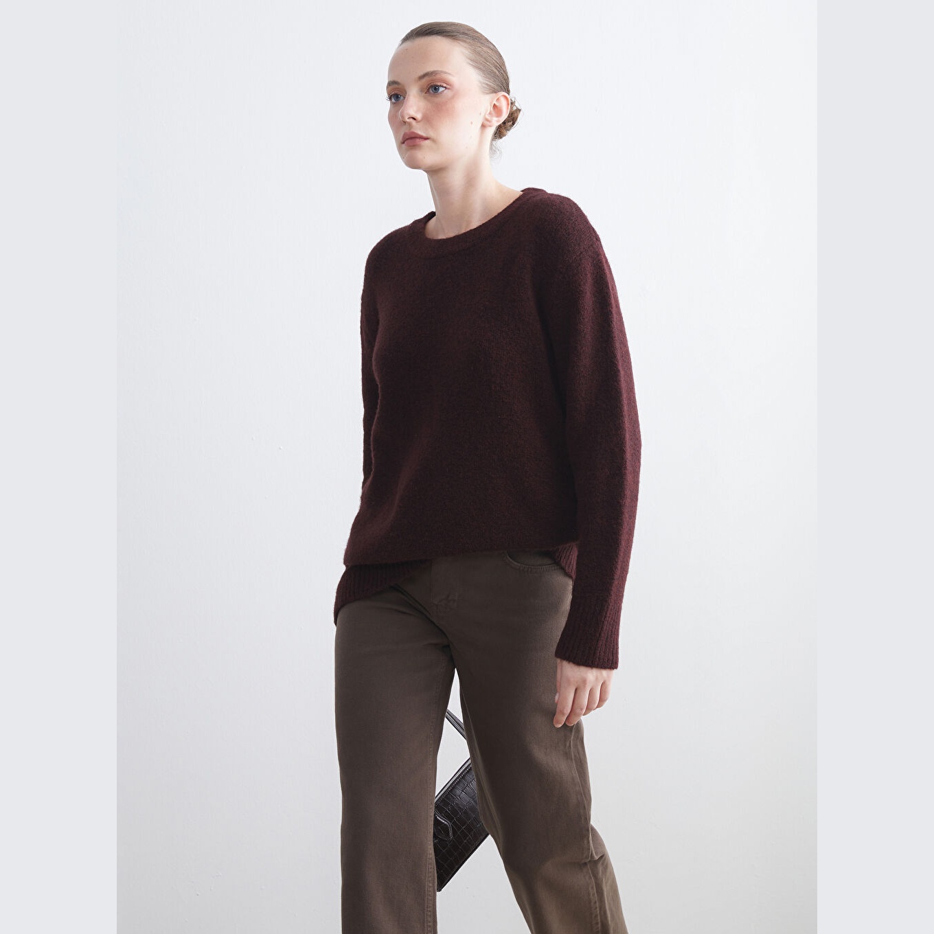 كنزة نسائية بياقة دائرية من LCW Classic – بوردو (قصة واسعة، تصميم سادة، خامة تحتوي على صوف بنسبة 9%)