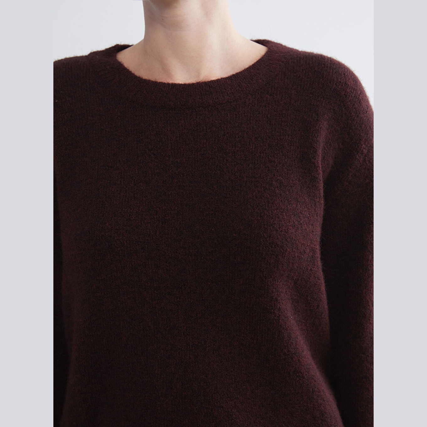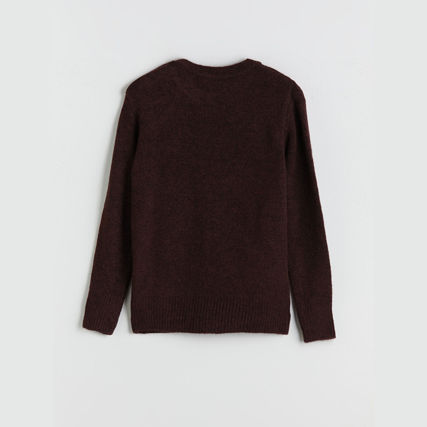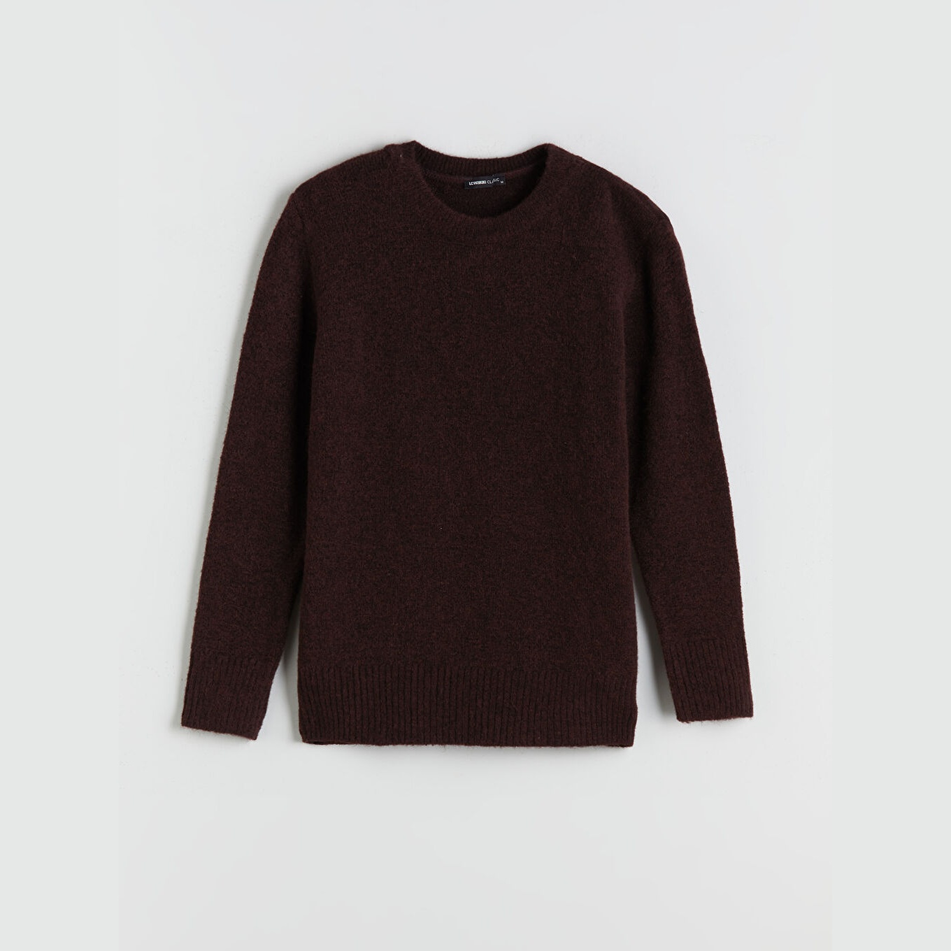 كنزة نسائية بياقة دائرية من LCW Classic – بوردو (قصة واسعة، تصميم سادة، خامة تحتوي على صوف بنسبة 9%)