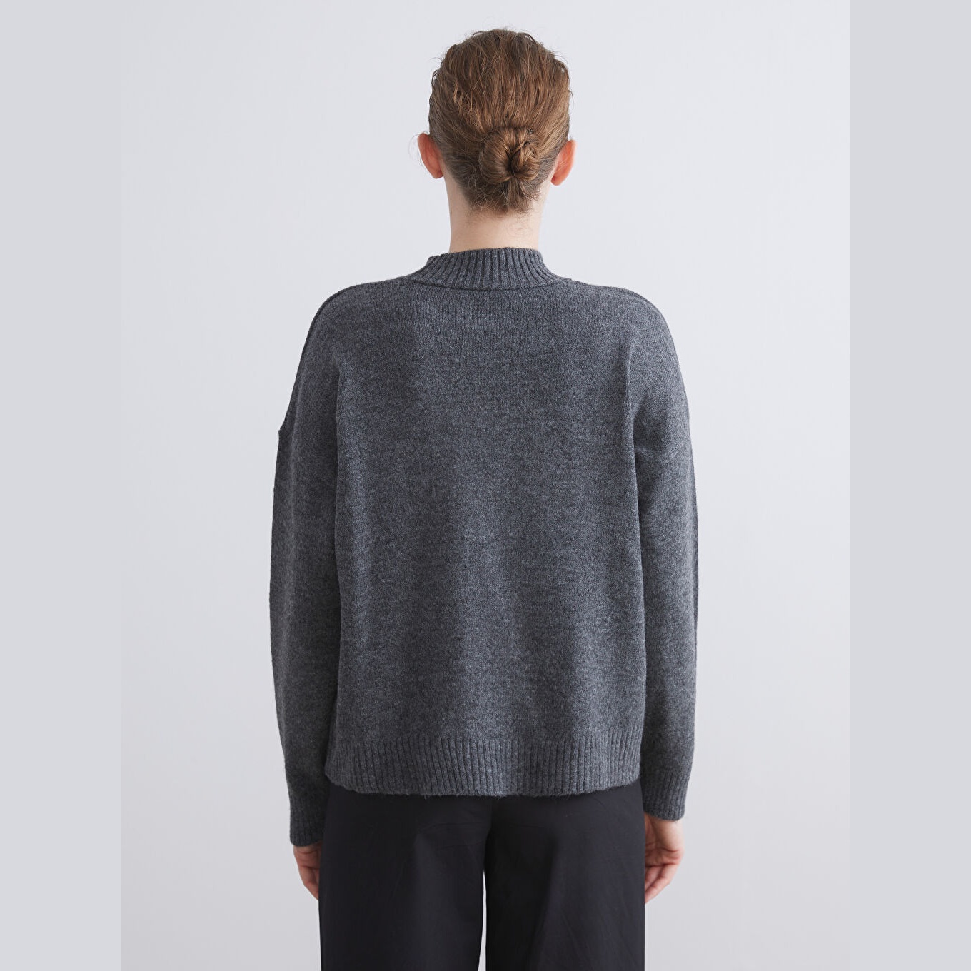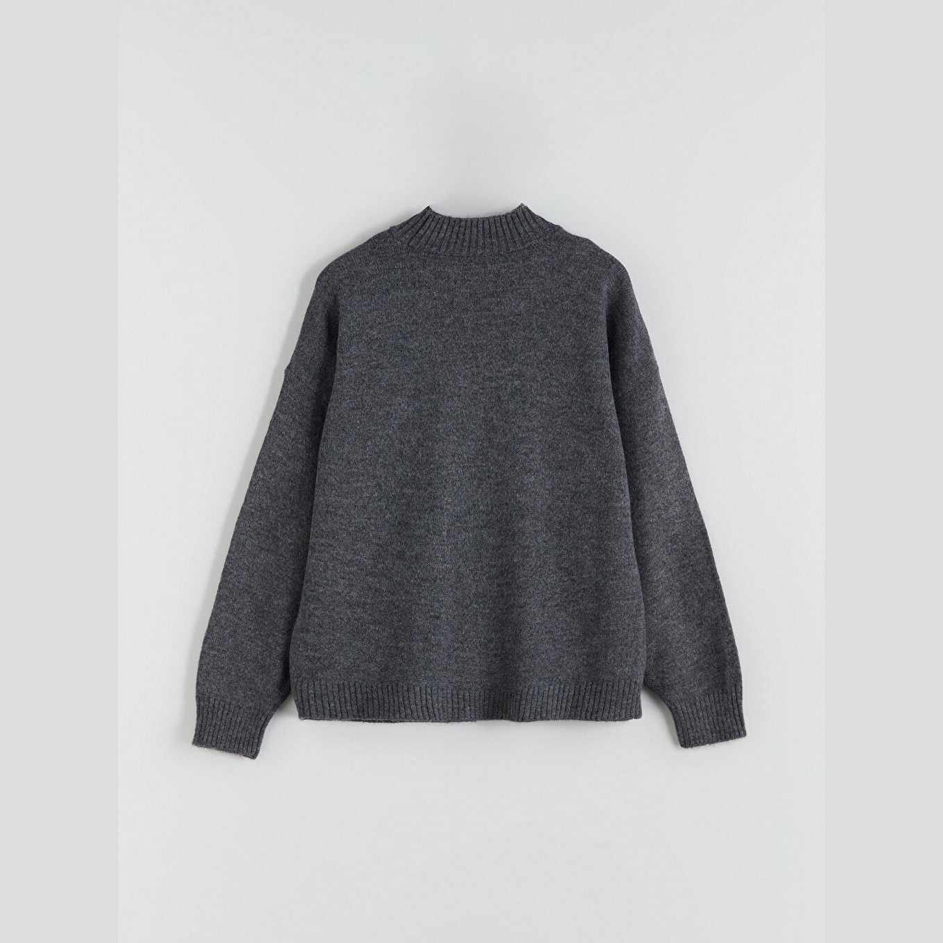 كنزة عملية من LCW Comfort بلون أنثراسيت داكن، مصممة بياقة دائرية (Bisiklet Yaka)، أكمام طويلة، قصة Loose Fit واسعة تمنحك راحة مثالية خلال فترة الحمل وما بعدها، مزينة بأحجار لامعة تضيف لمسة أنثوية ناعمة، خامة تريكو بسمك متوسط وملمس ناعم، مصنوعة من مزيج الأكريليك والبوليستر بنسبة 72% – 28%، بطول يُقاس من الكتف، مثالية للتنسيق مع بنطال مطاطي أو تنورة مريحة لإطلالة يومية أنيقة وعملية.