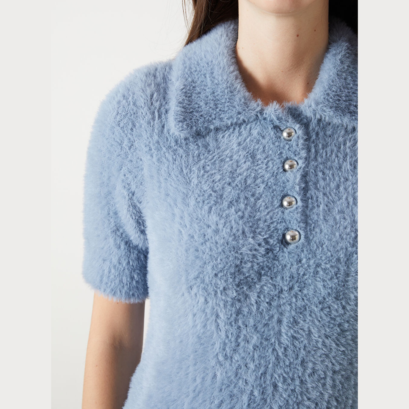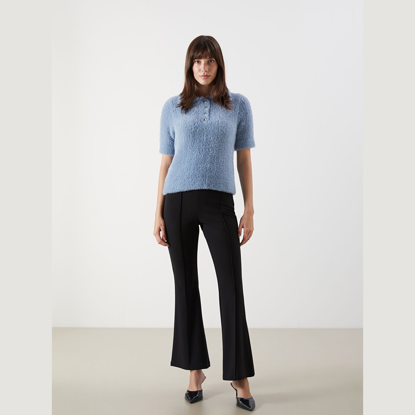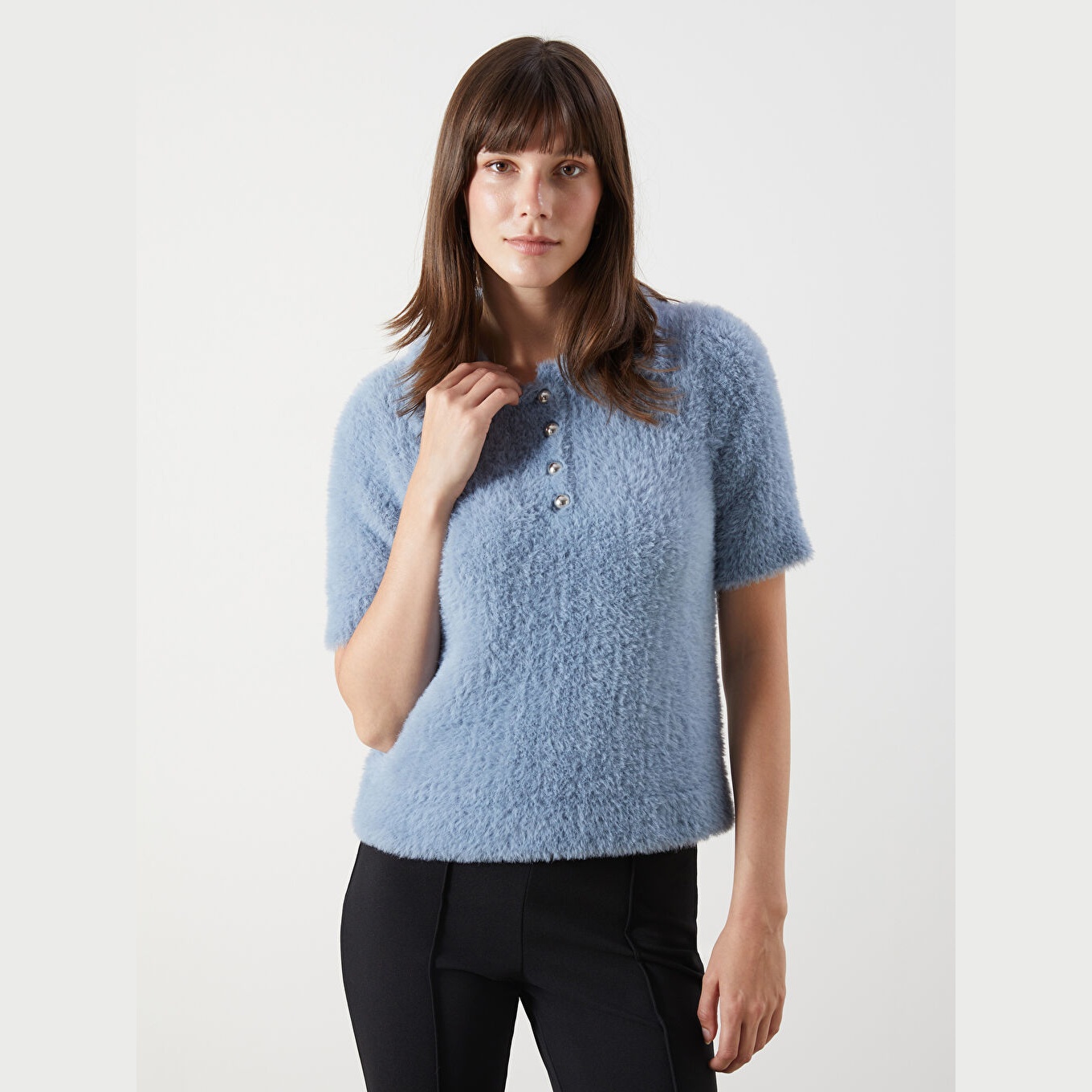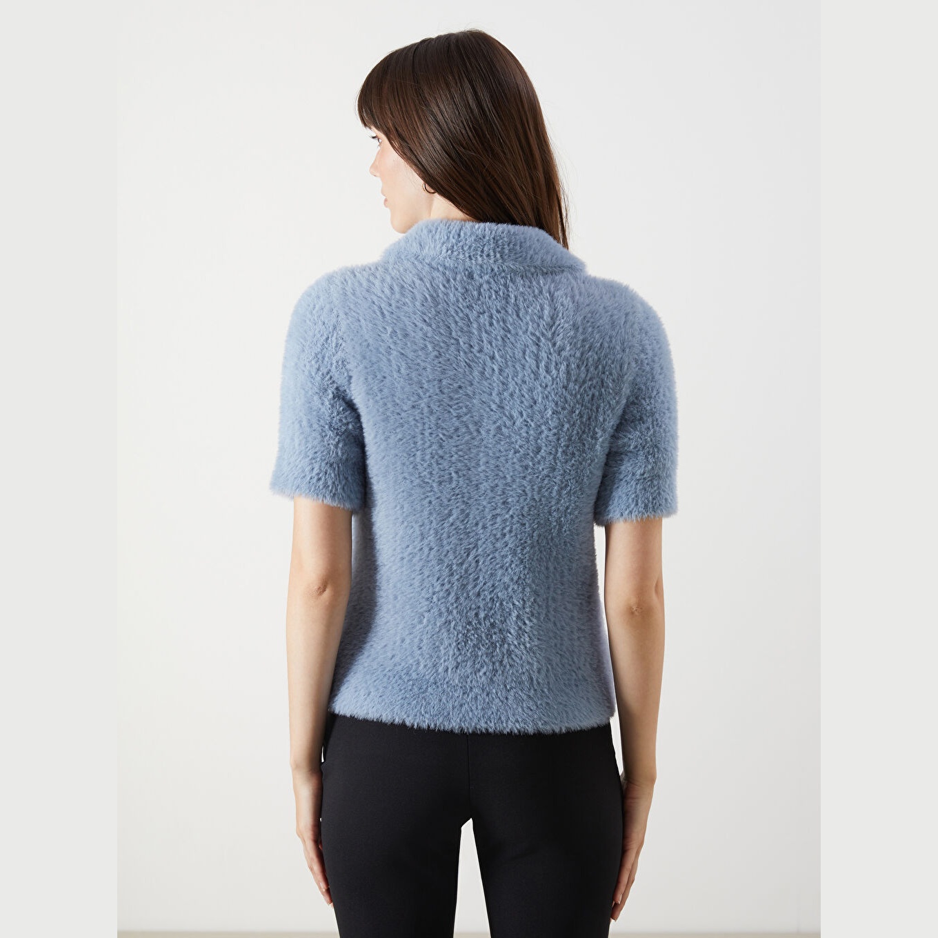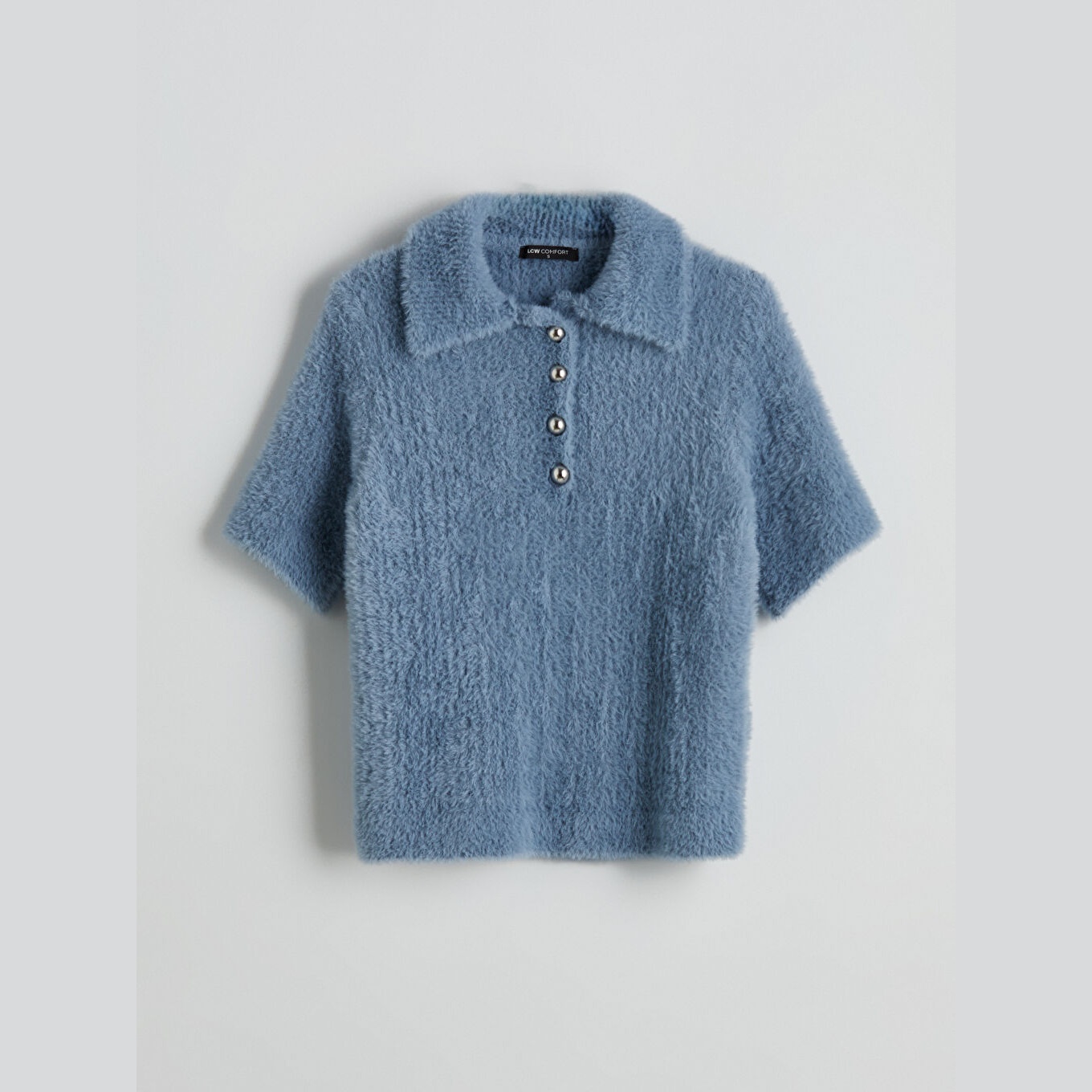 كنزة عملية من LCW Comfort بلون أزرق هادئ، مصممة بياقة بولو أنيقة، أكمام قصيرة، قصة Regular Fit قياسية تمنحك راحة مثالية خلال فترة الحمل وما بعدها، تصميم سادة بدون نقشة يتيح تنسيقًا مرنًا مع مختلف الإطلالات، خامة تريكو سميكة مصنوعة بالكامل من بوليستر، تمنحك دفئًا ومتانة، بطول يُقاس من الكتف، مثالية للتنسيق مع بنطال مطاطي أو تنورة مريحة لإطلالة يومية أنيقة وعملية.