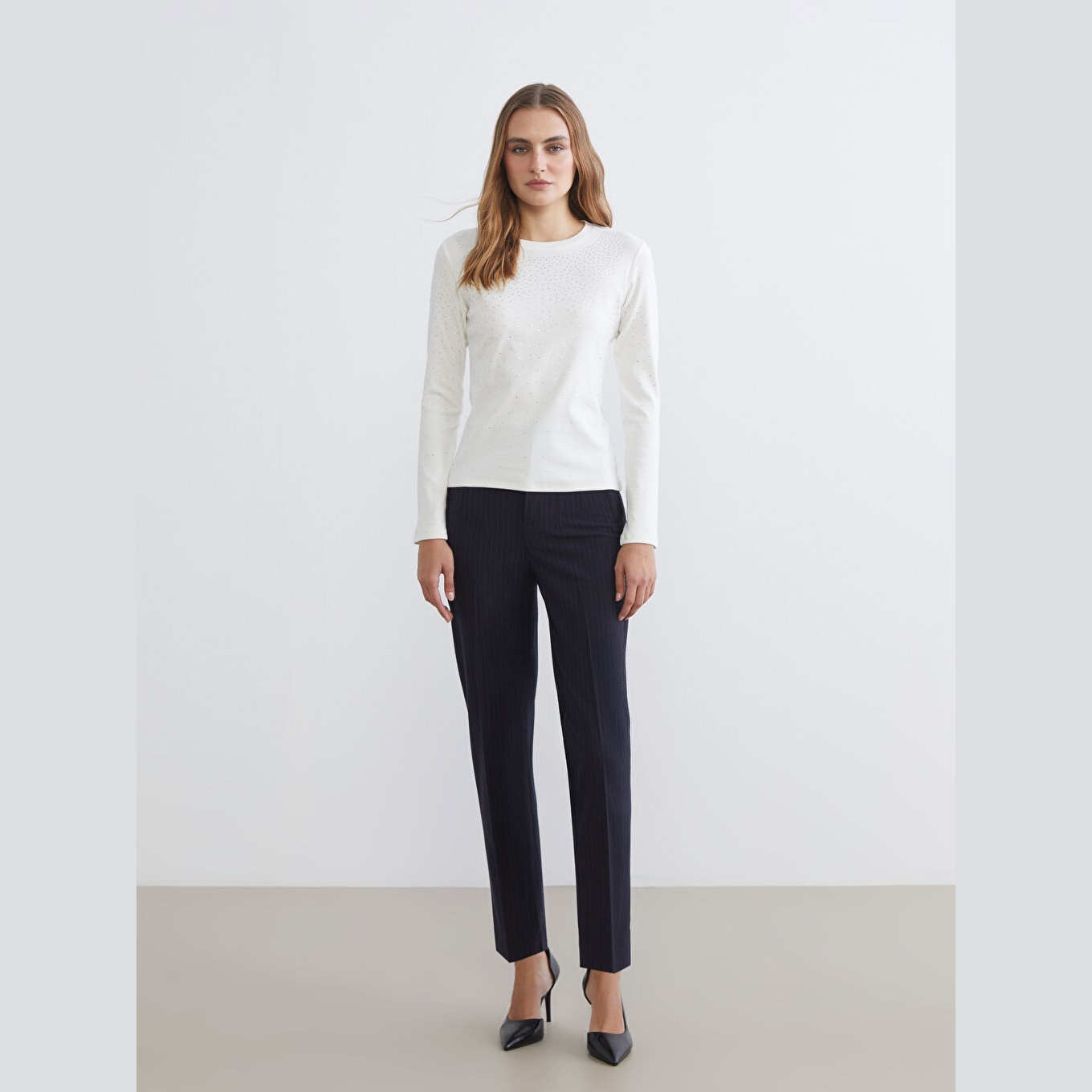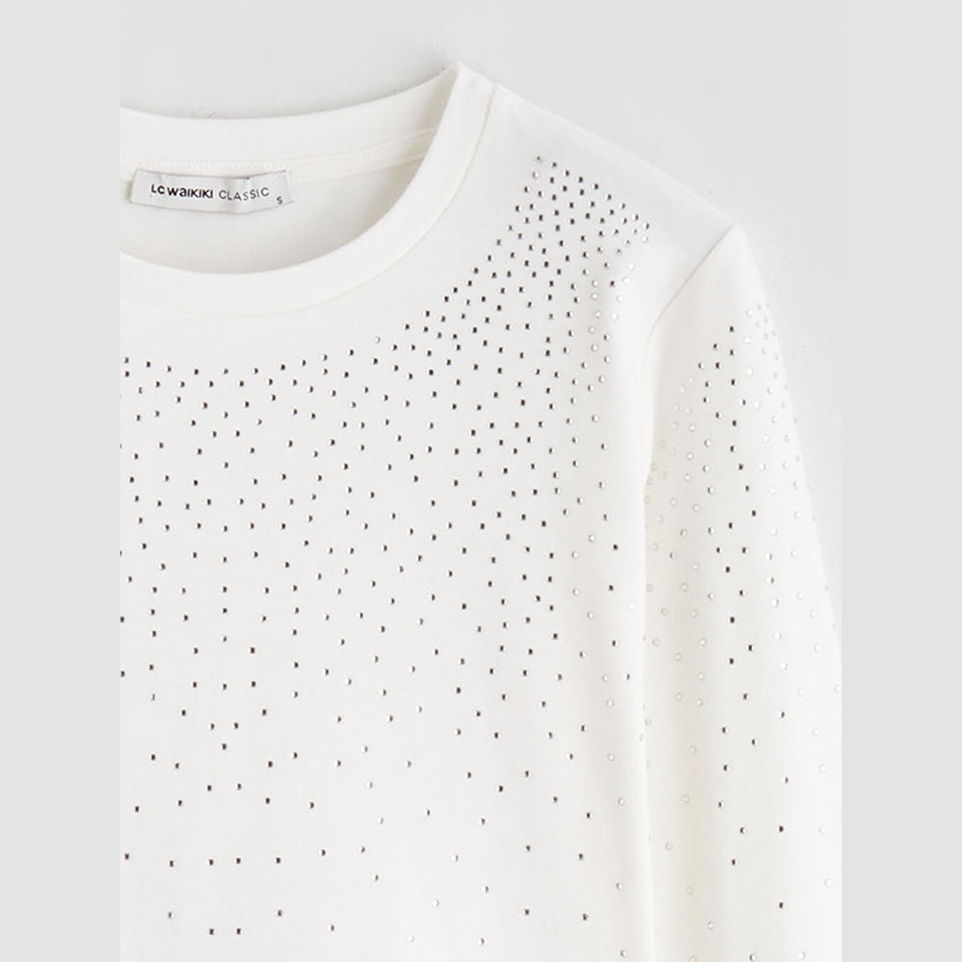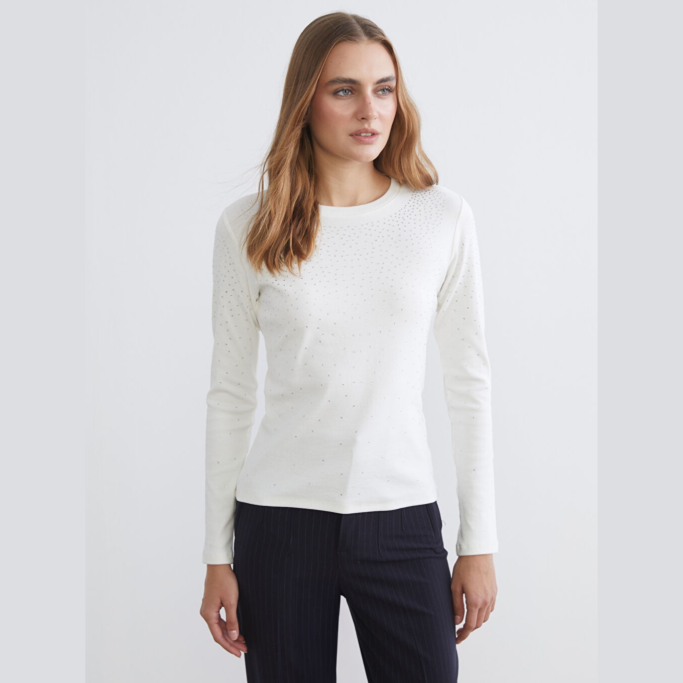 تيشيرت نسائي بياقة دائرية من LCW Basic – إكرو (قصة ضيقة، خامة ريبانا بتركيبة عالية القطن، تصميم سادة، أكمام طويلة)