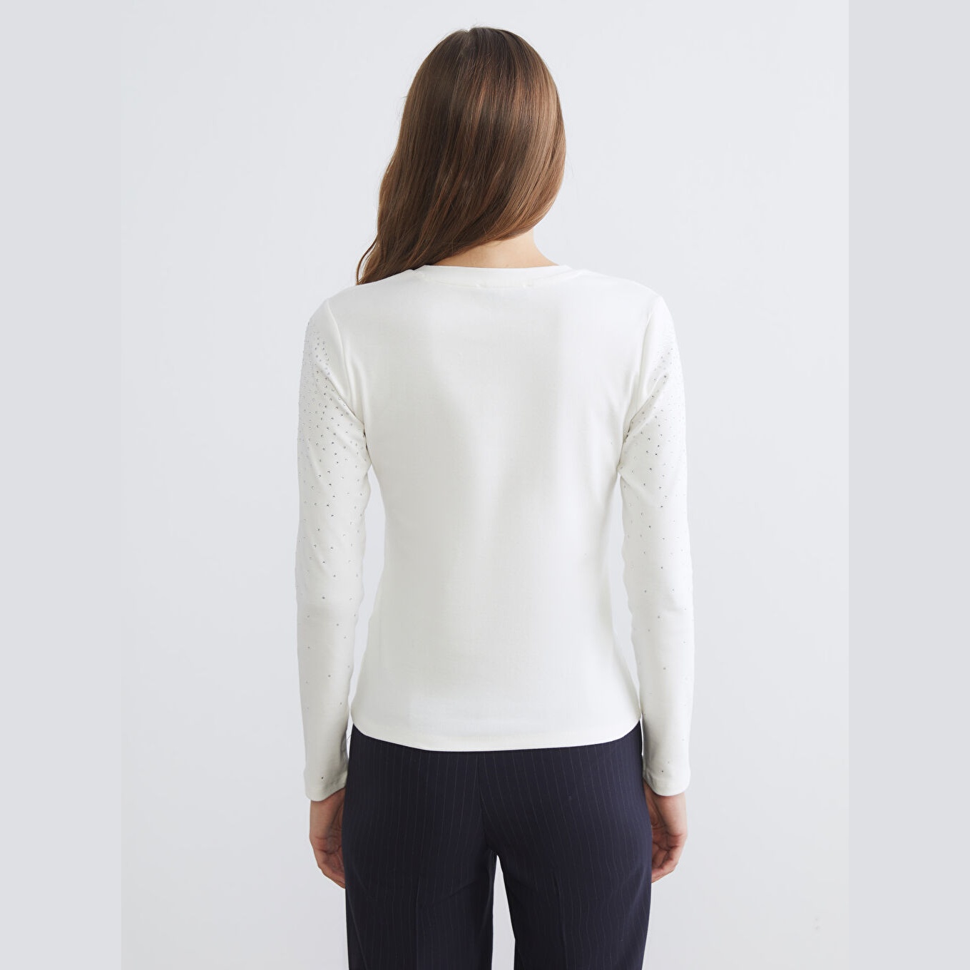 تيشيرت عملي من LCW Basic بلون إكرو ناعم، مصمم بياقة دائرية (Bisiklet Yaka)، أكمام طويلة، قصة Slim Fit ضيقة تمنحك مظهرًا محددًا وانسيابيًا، مصنوع من خامة ريبانا متوسطة السماكة بتركيبة عالية القطن (95%) مع نسبة خفيفة من الإيلاستان للمرونة، تصميم سادة بدون نقشة يتيح تنسيقًا مرنًا مع مختلف الإطلالات، بطول يُقاس من الكتف، مثالي للتنسيق مع بنطال جينز أو تنورة قطنية لإطلالة يومية أنيقة ومريحة.
