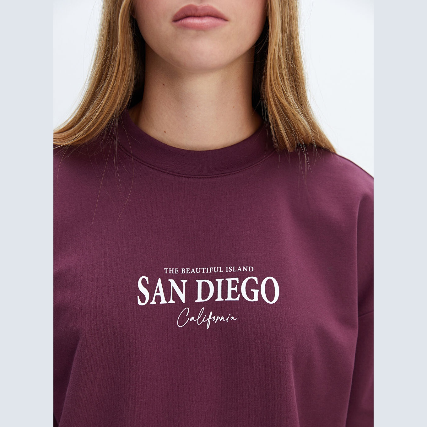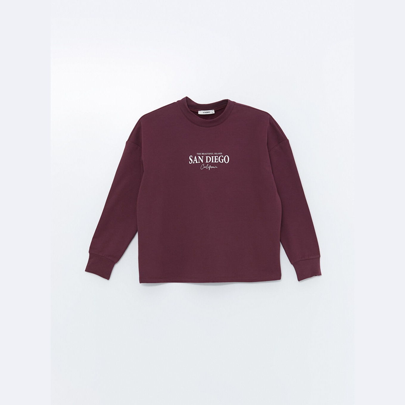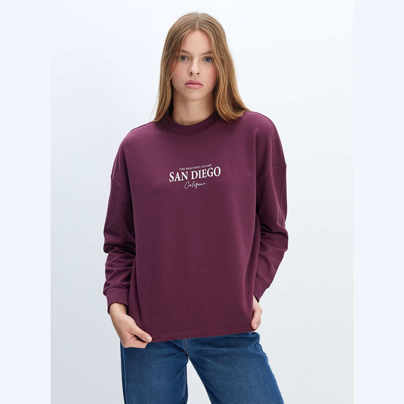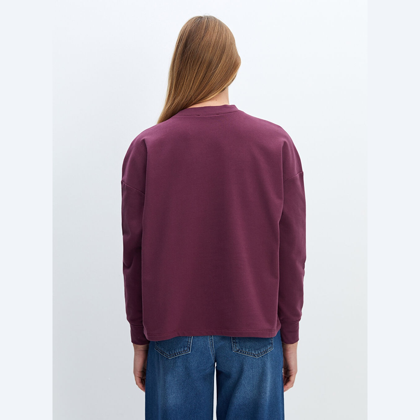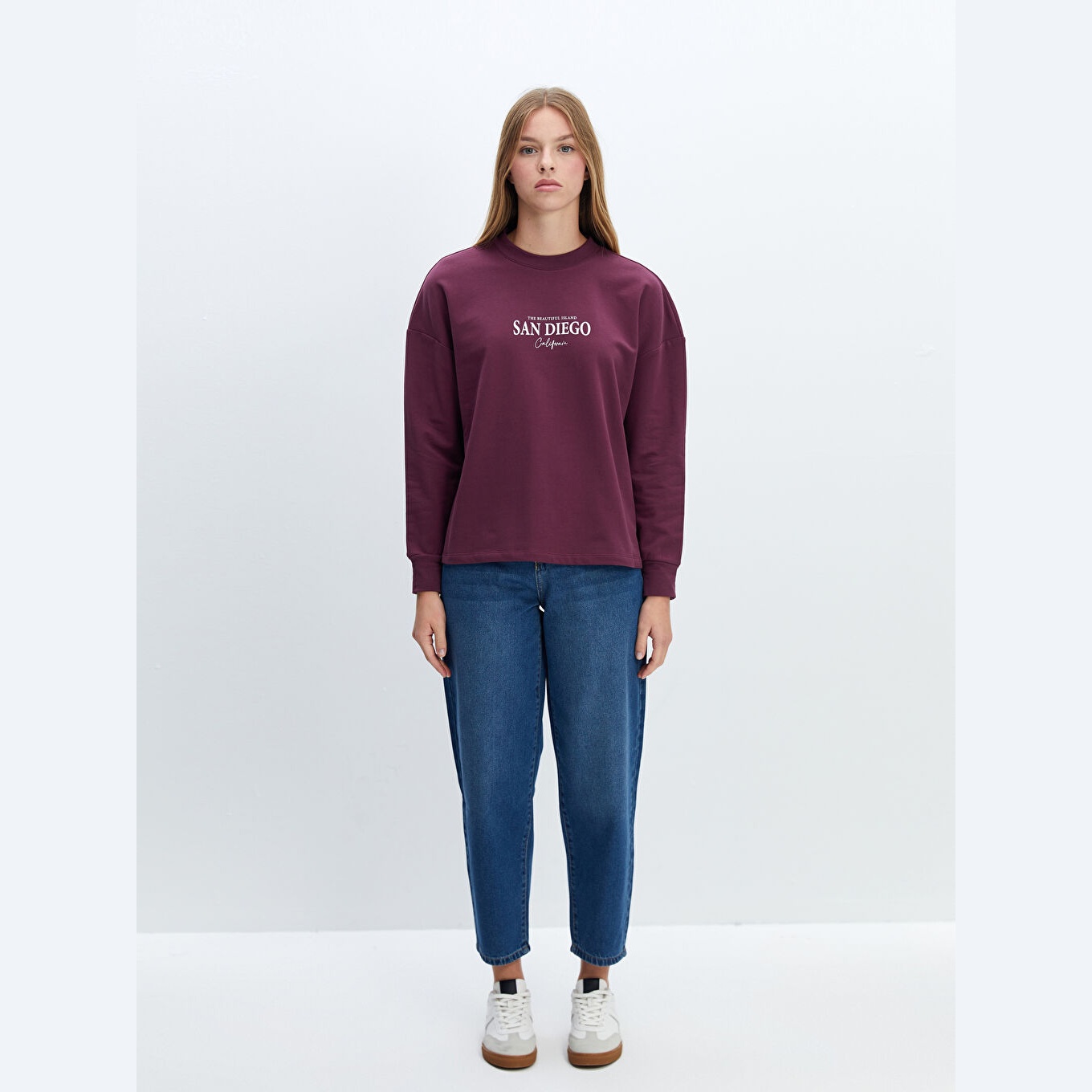 سويت شيرت نسائي بياقة دائرية من LC Waikiki – موردم (قصة واسعة، خامة شاردونلو بتركيبة عالية القطن، تصميم مطبوع، أكمام طويلة)