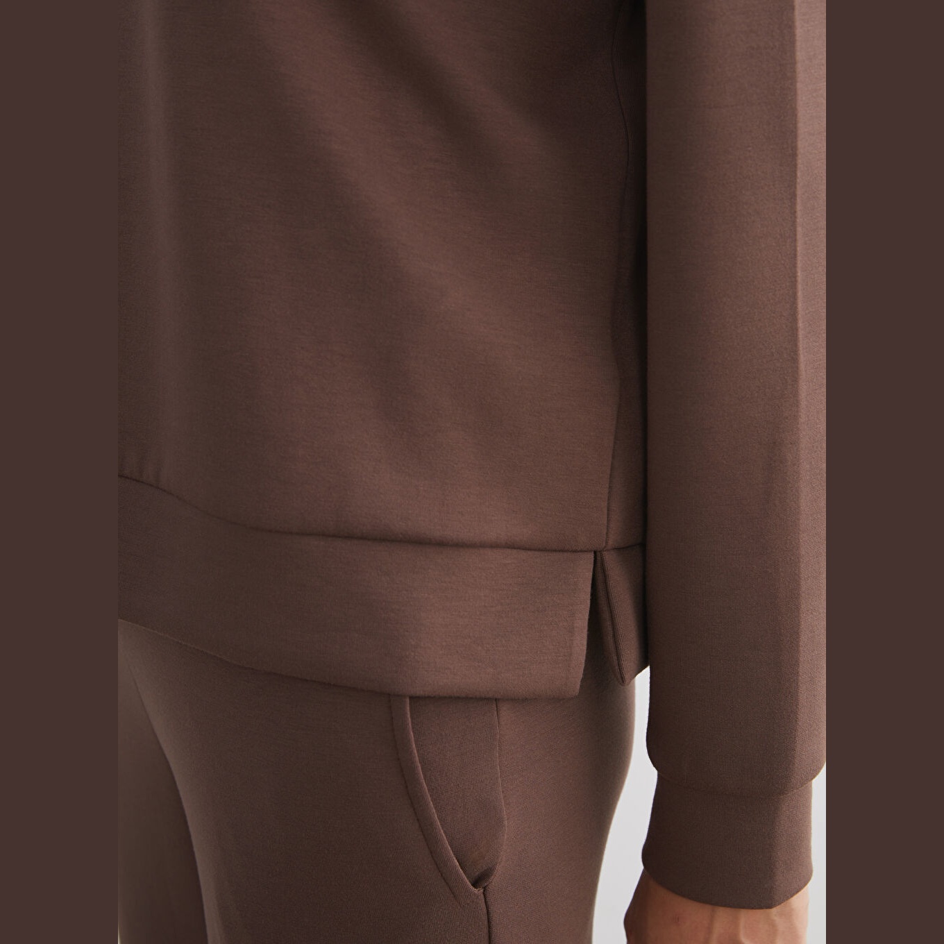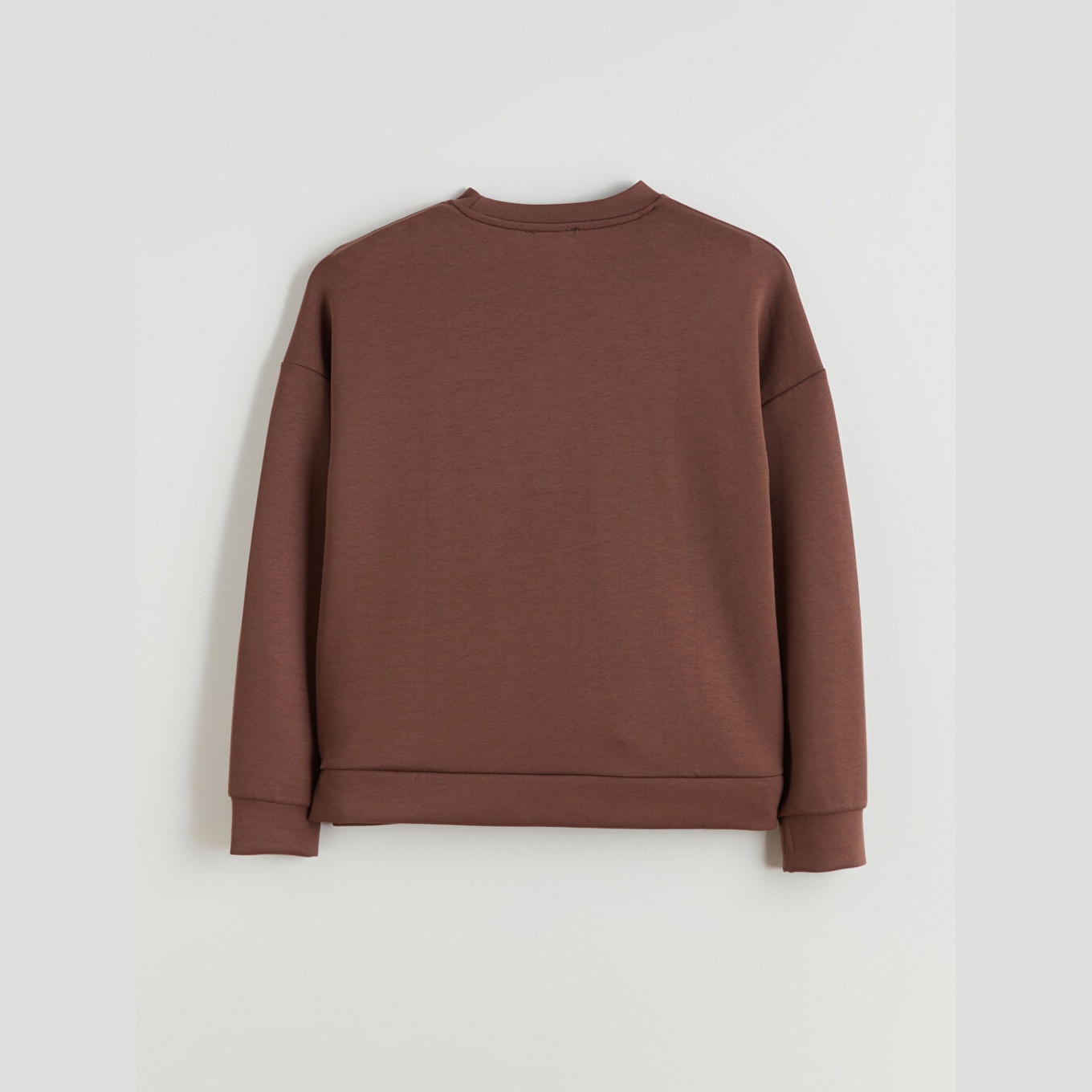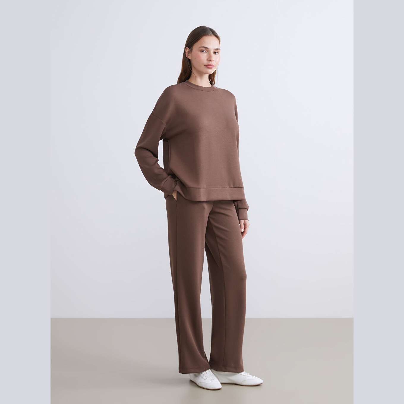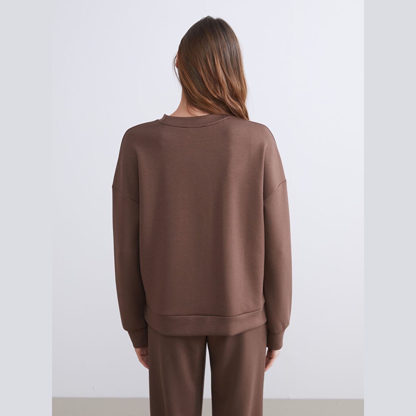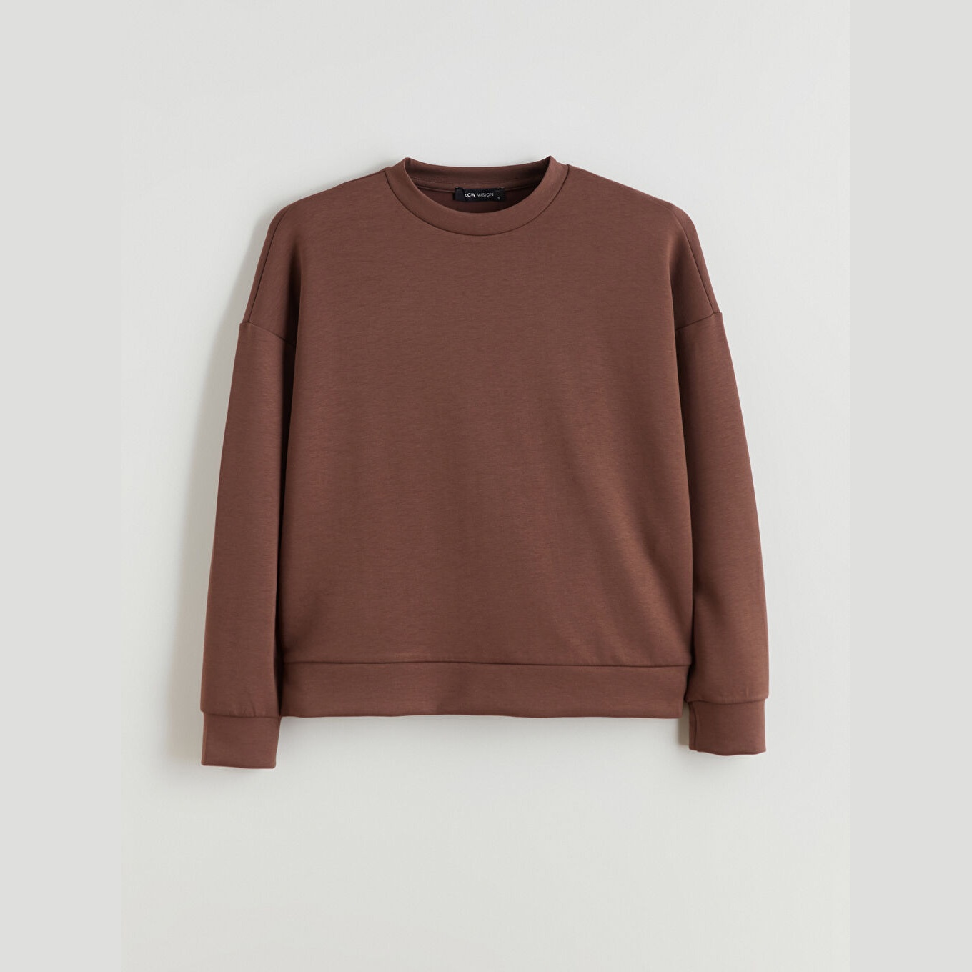 سويت شيرت نسائي بياقة دائرية من LC Waikiki – بني (قصة واسعة، خامة خفيفة بتركيبة مرنة، تصميم سادة، أكمام طويلة)