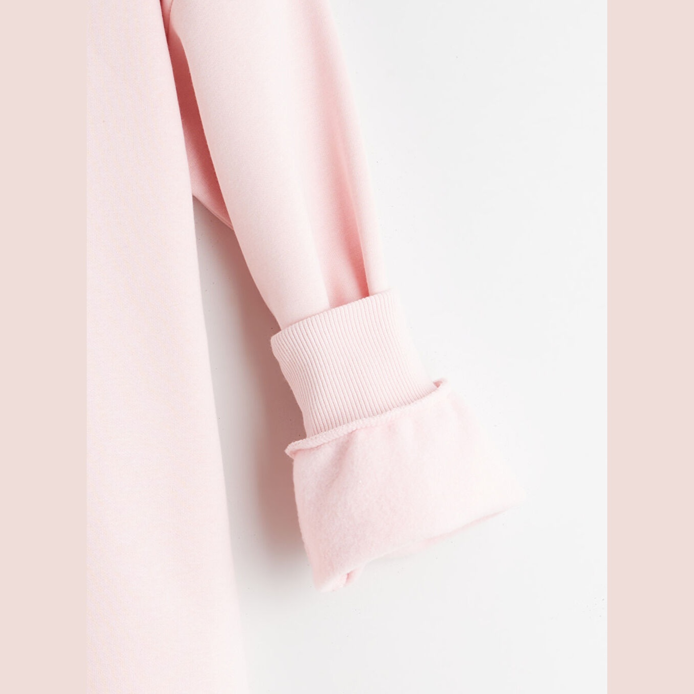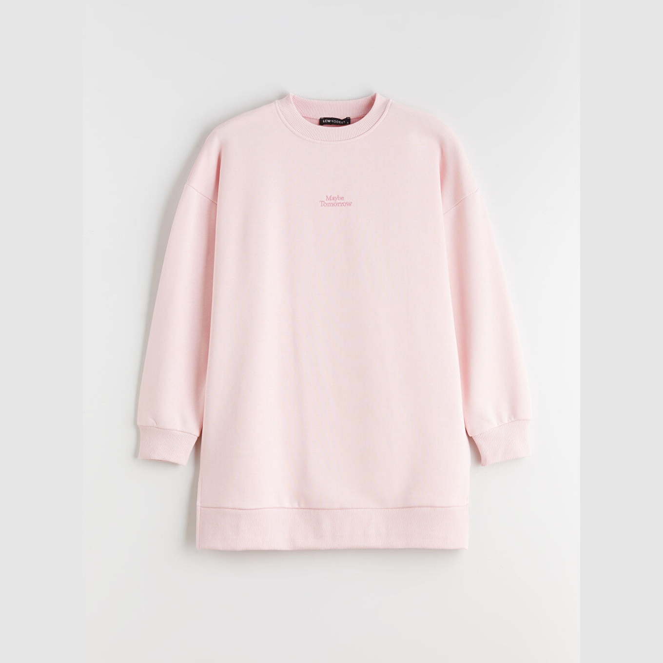 سويت شيرت تونيك نسائي مطرز بياقة دائرية من LC Waikiki – وردي (قصة واسعة، خامة شاردونلو سميكة، تصميم مطرز، أكمام طويلة، طول يغطي الأرداف)