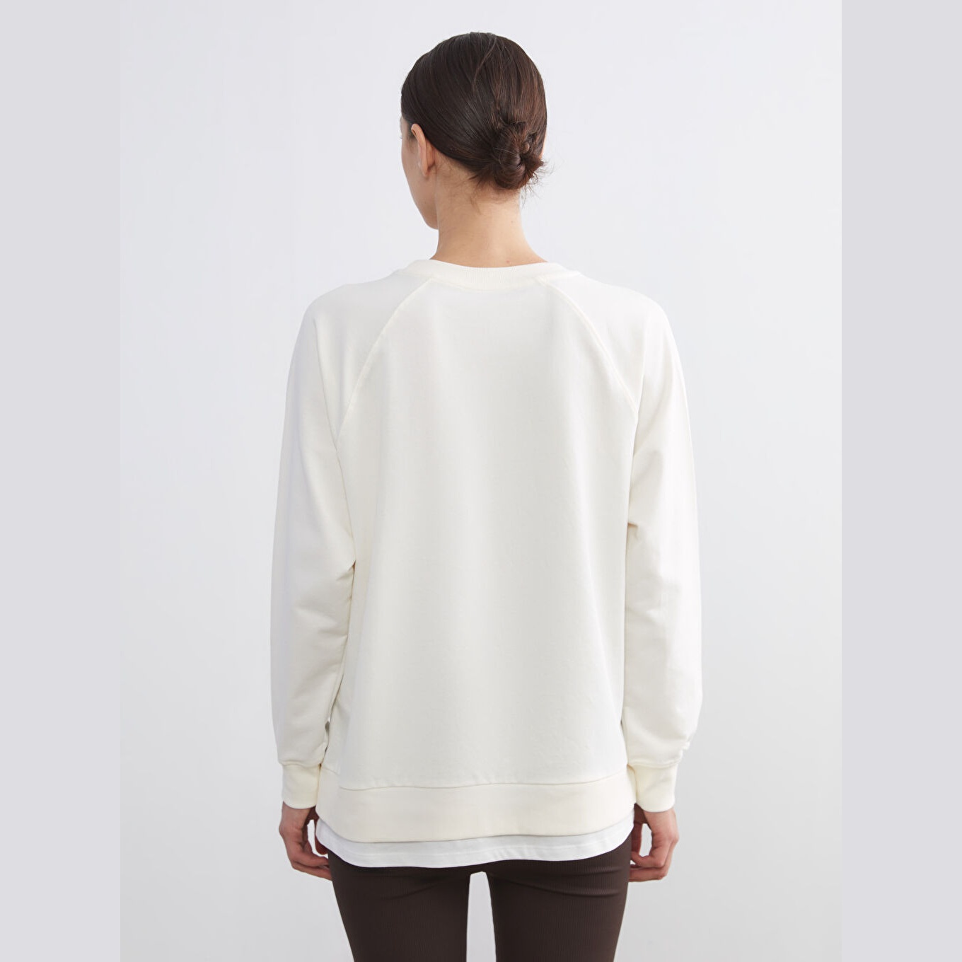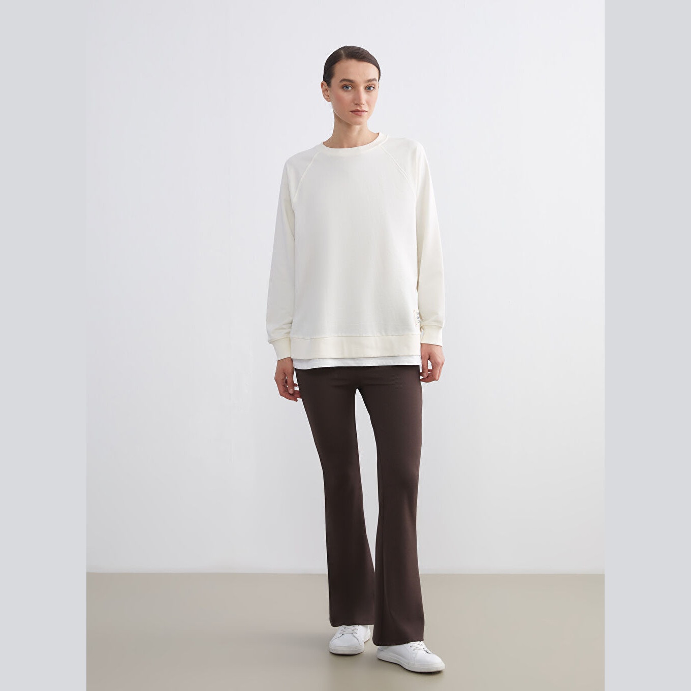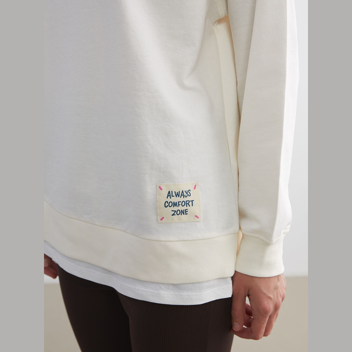 سويت شيرت نسائي بياقة دائرية من LCW Comfort – بيج (قصة واسعة، خامة خفيفة بتركيبة مزدوجة، تصميم سادة، مناسب لفترة الحمل وما بعدها)