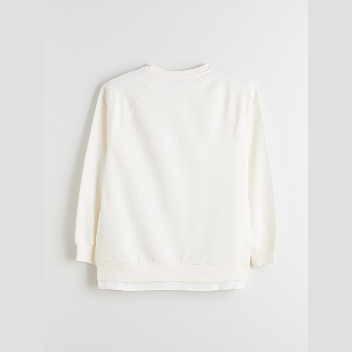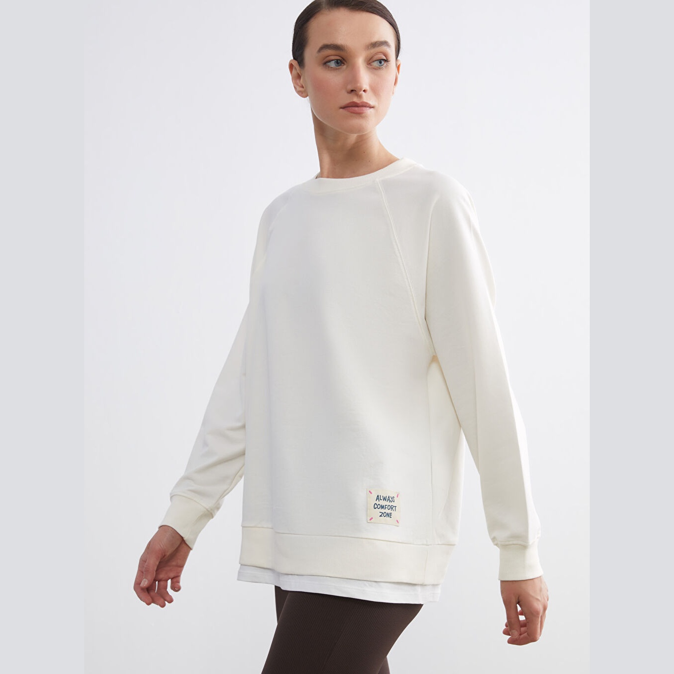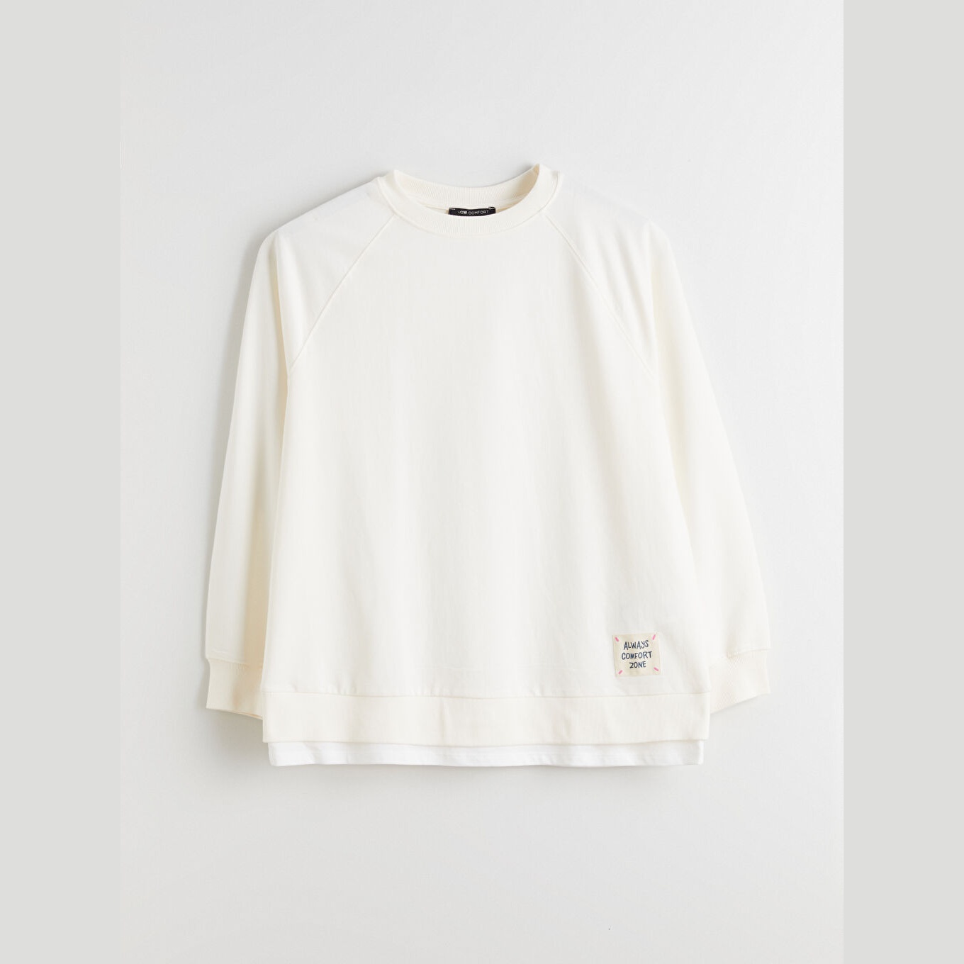 سويت شيرت نسائي بياقة دائرية من LCW Comfort – بيج (قصة واسعة، خامة خفيفة بتركيبة مزدوجة، تصميم سادة، مناسب لفترة الحمل وما بعدها)