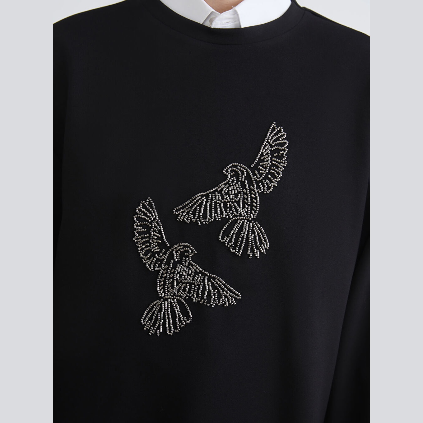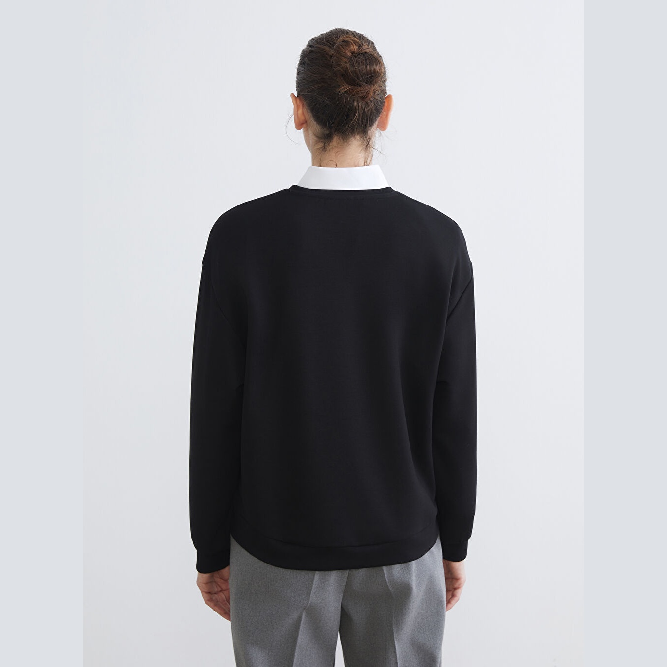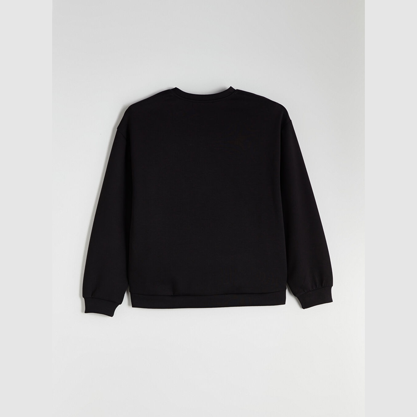 سويت شيرت نسائي مزين بأحجار بياقة دائرية من LCWAIKIKI Basic – أسود (قصة واسعة، خامة خفيفة بتركيبة مرنة، تصميم مزخرف، أكمام طويلة)