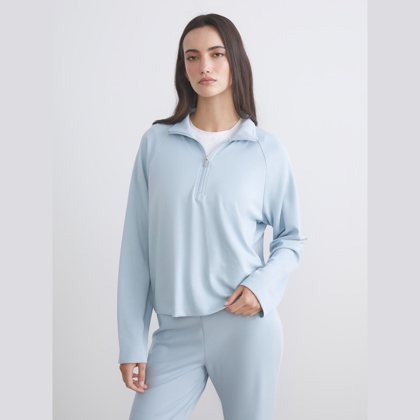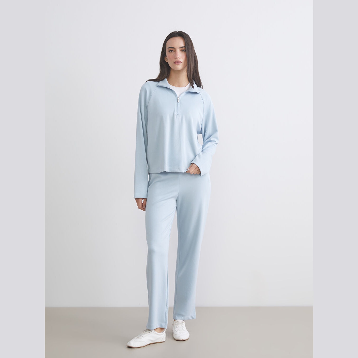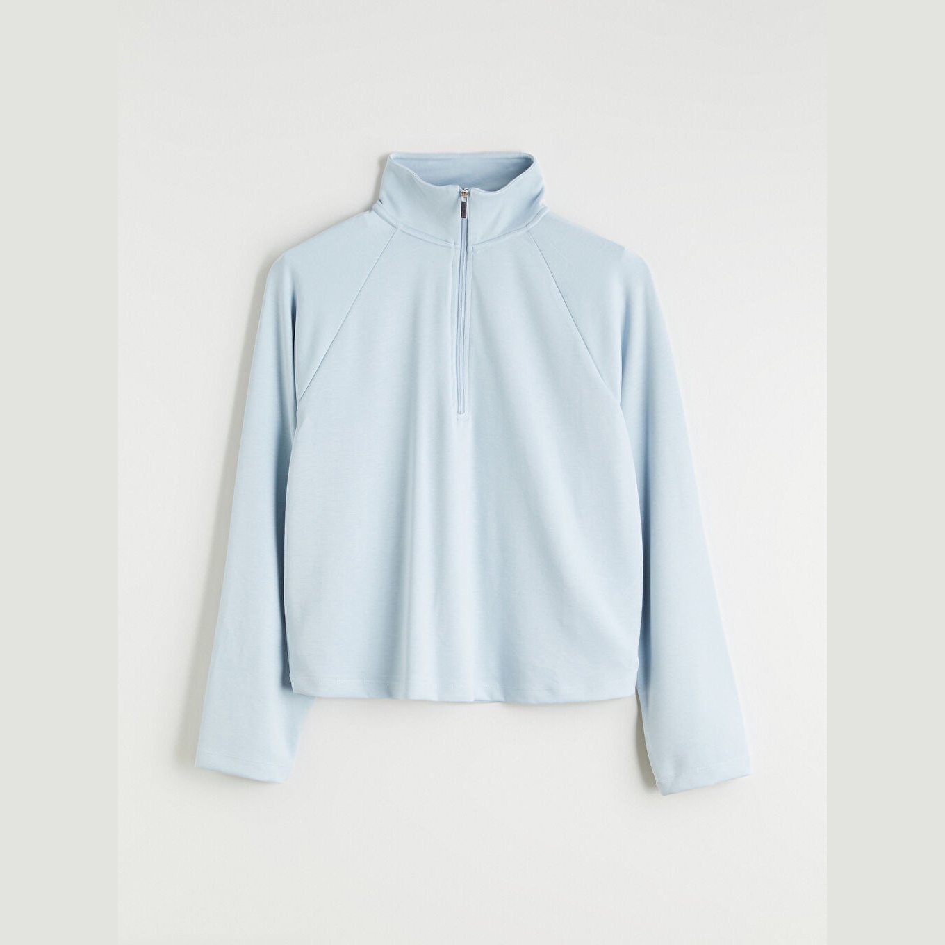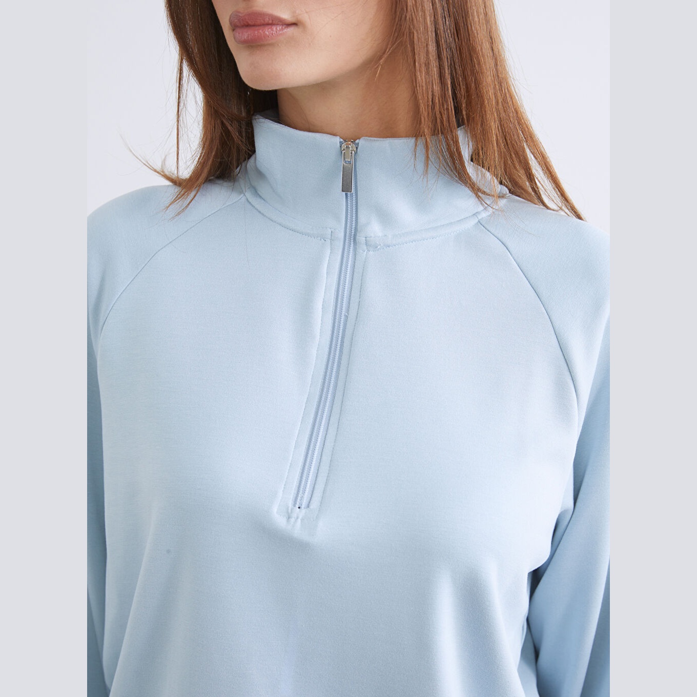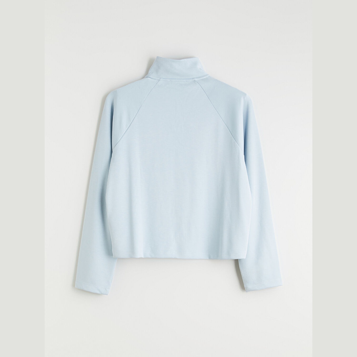 سويت شيرت نسائي بياقة مرتفعة وسحاب أمامي من LCW Vision – أزرق (قصة واسعة، خامة خفيفة بتركيبة مرنة، تصميم سادة، أكمام طويلة، سحاب نصف أمامي)