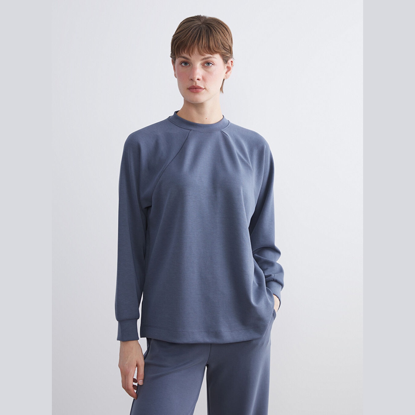 سويت شيرت نسائي بخامة مودال من LCWAIKIKI Basic – أنثراسايت (قصة واسعة، خامة دالغيتش متوسطة السماكة، تصميم سادة، أكمام طويلة، فتحة جانبية، أكتاف مائلة)
