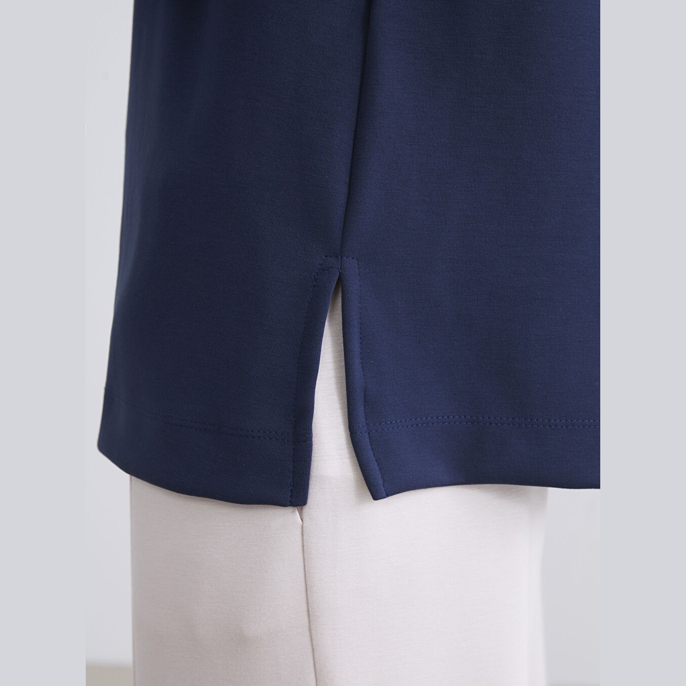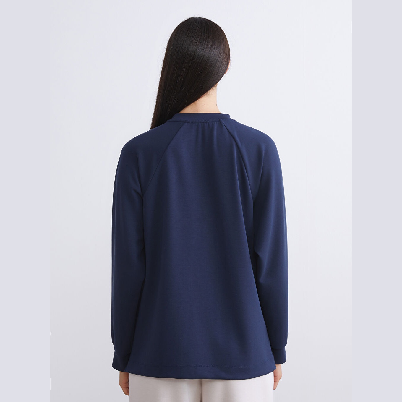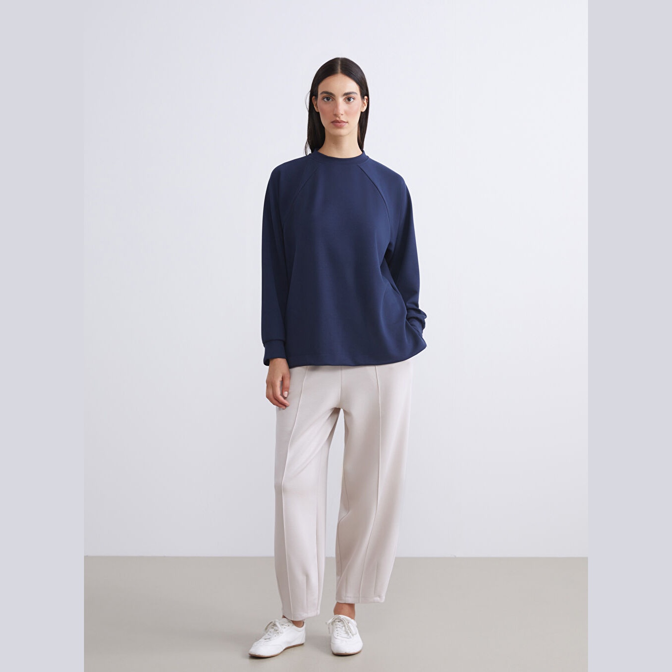 سويت شيرت نسائي بخامة مودال من LCWAIKIKI Basic – كحلي (قصة واسعة، خامة دالغيتش متوسطة السماكة، تصميم سادة، أكمام طويلة، فتحة جانبية، أكتاف مائلة)
