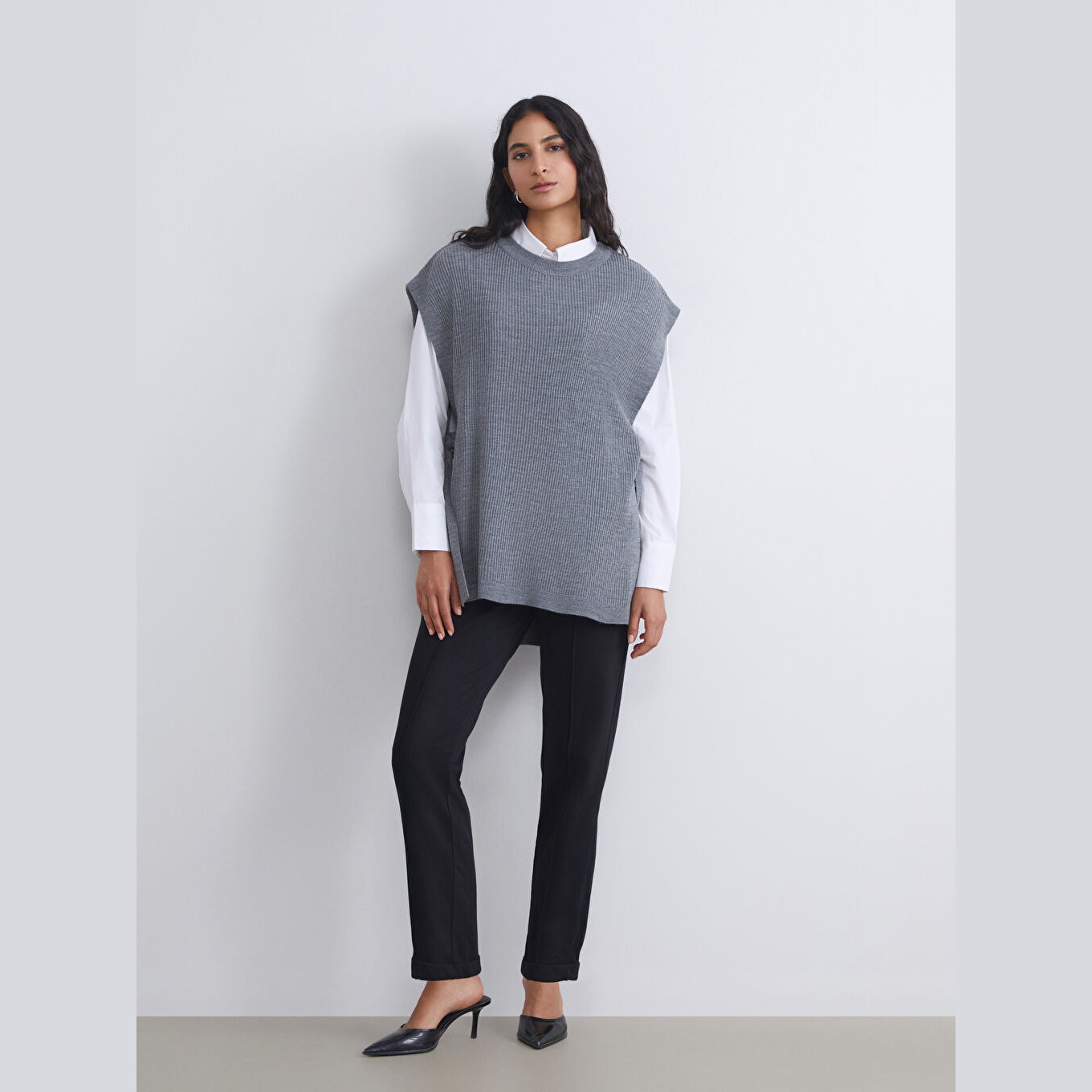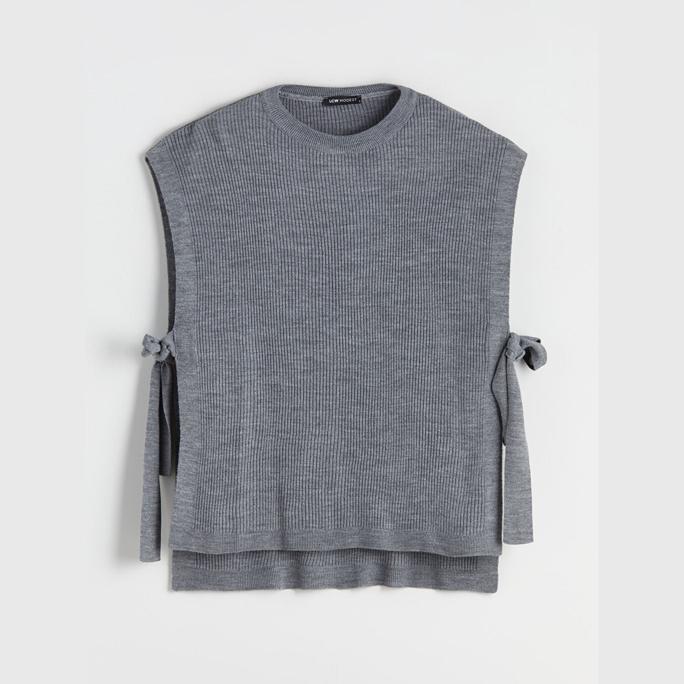 سويتر نسائي بياقة دائرية من LCW Modest – رمادي (قصة فضفاضة، خامة تريكو خفيفة، تصميم سادة، بدون أكمام، من مجموعة "تسوقي محتشم")