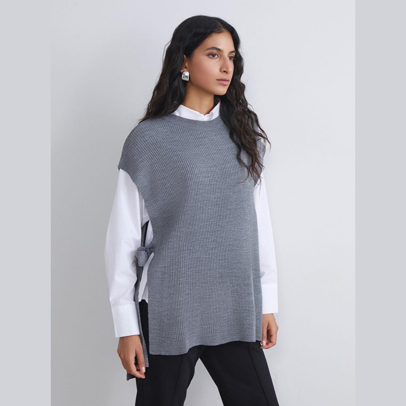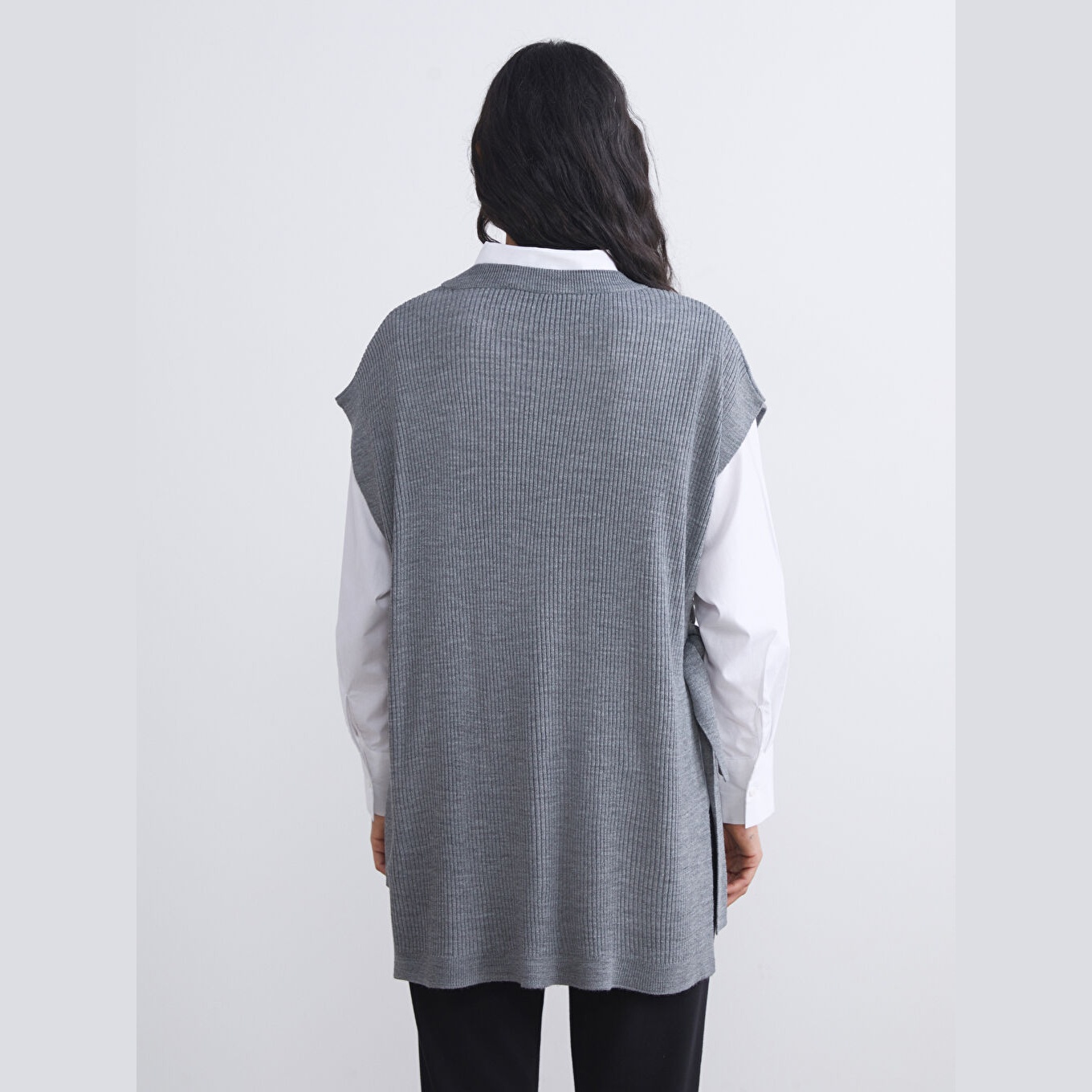 سويتر تريكو أنيق من LCW Modest بلون رمادي حيادي، مصمم بياقة دائرية (Bisiklet Yaka)، بدون أكمام، قصة Loose & Bol فضفاضة تمنحك مظهرًا مريحًا وانسيابيًا، تصميم سادة بدون نقوش، مصنوع من خامة Triko خفيفة بنسبة 100% أكرليك، بطول يُقاس من الكتف، مثالي للارتداء فوق قميص أبيض أو بلوزة بياقة عالية لإطلالة محتشمة أنيقة وعملية.