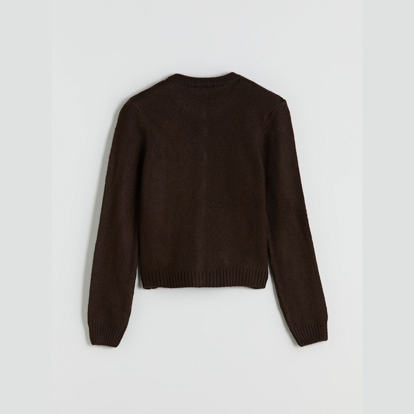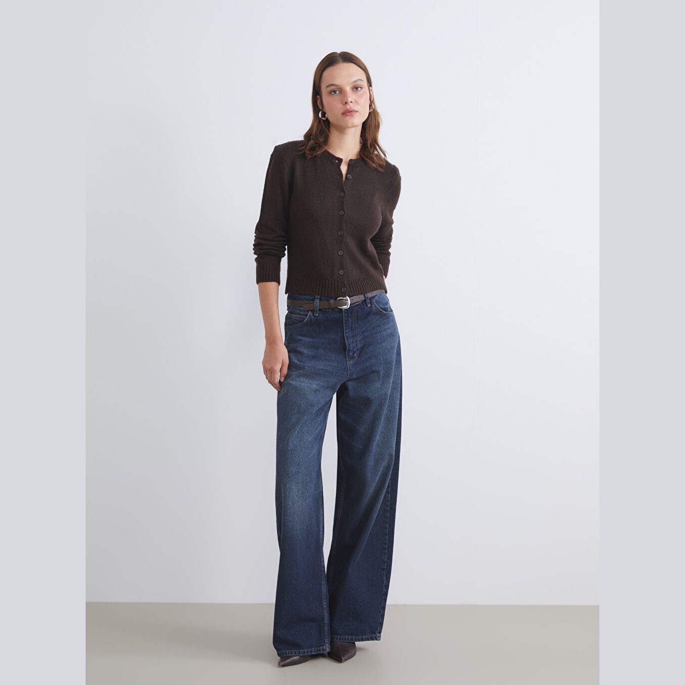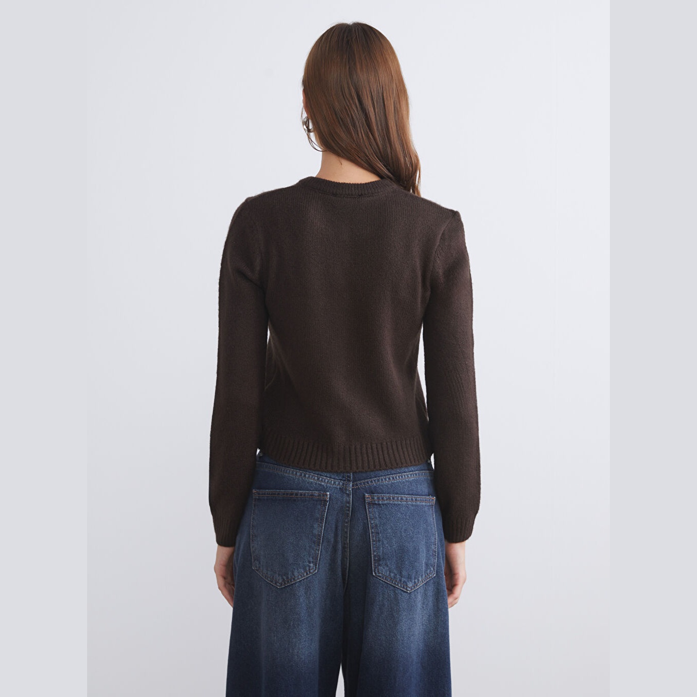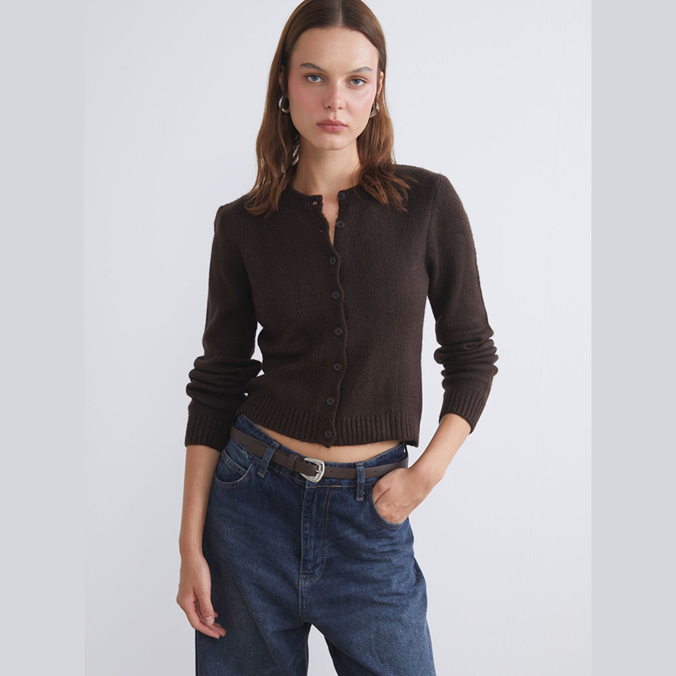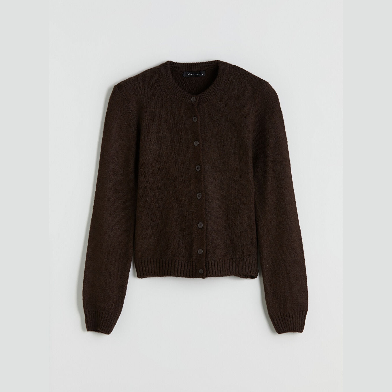 كارديغان نسائي بياقة دائرية من LCW Vision – بني (قصة ضيقة جدًا، خامة تريكو متوسطة السماكة، تصميم سادة، أكمام طويلة، مظهر Bodycon)