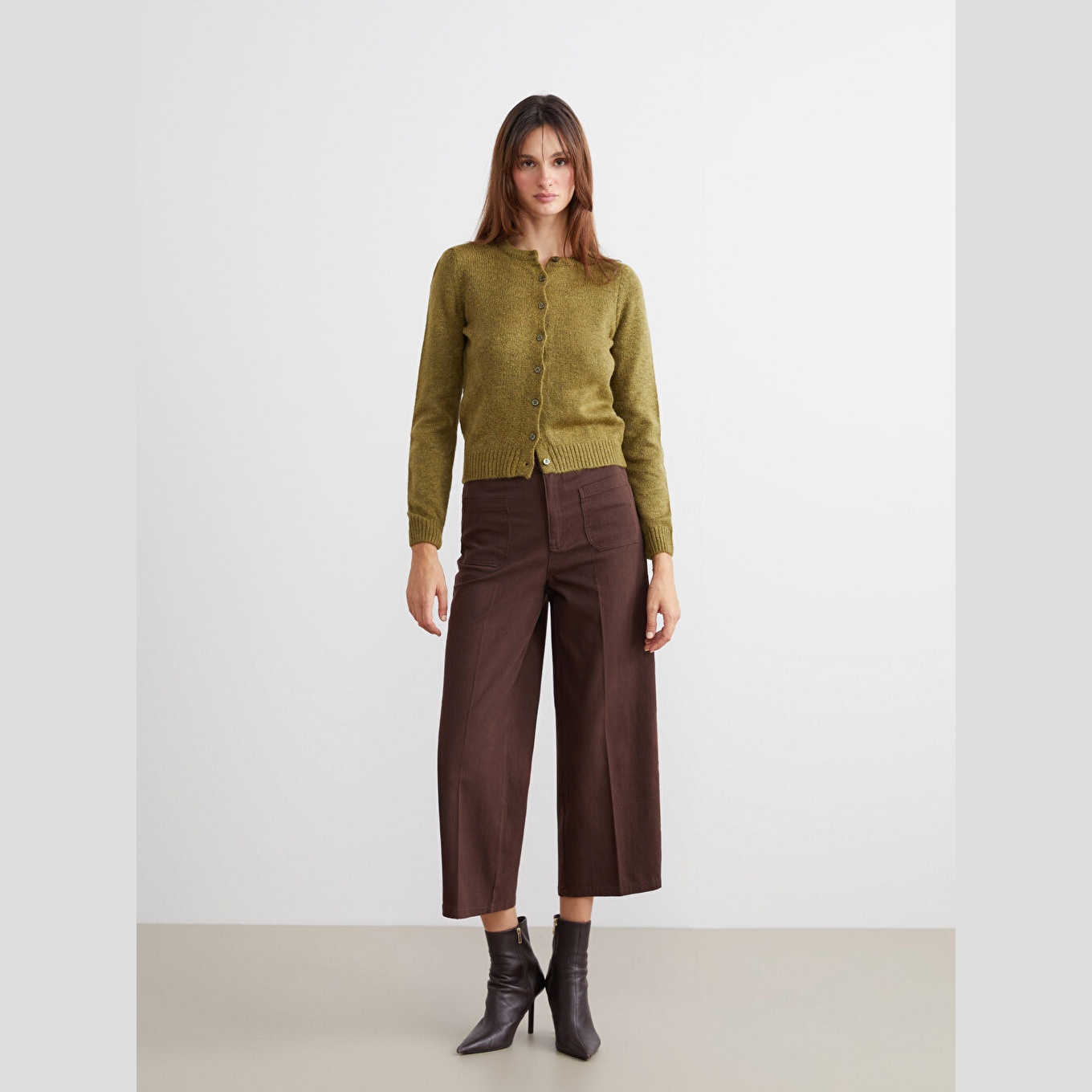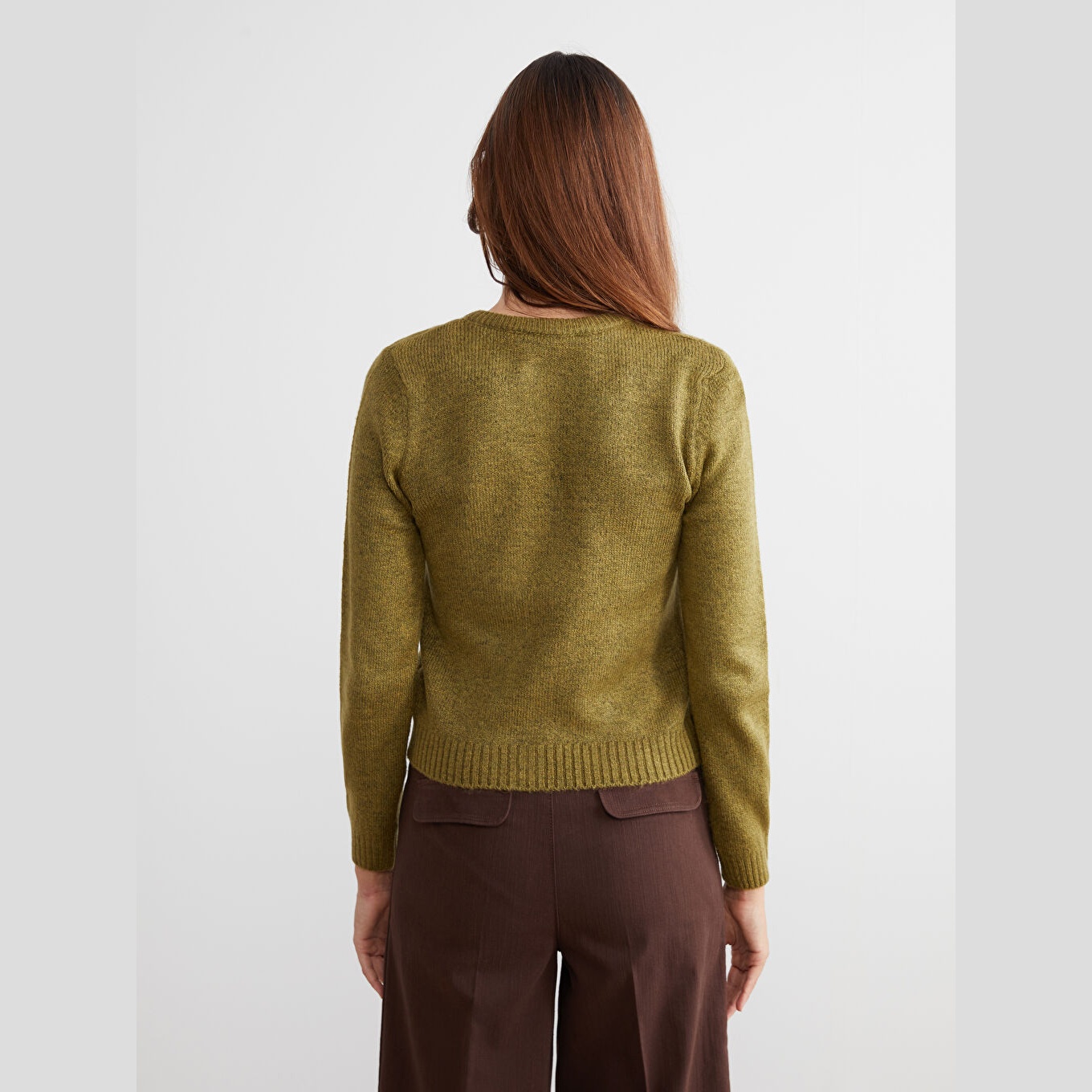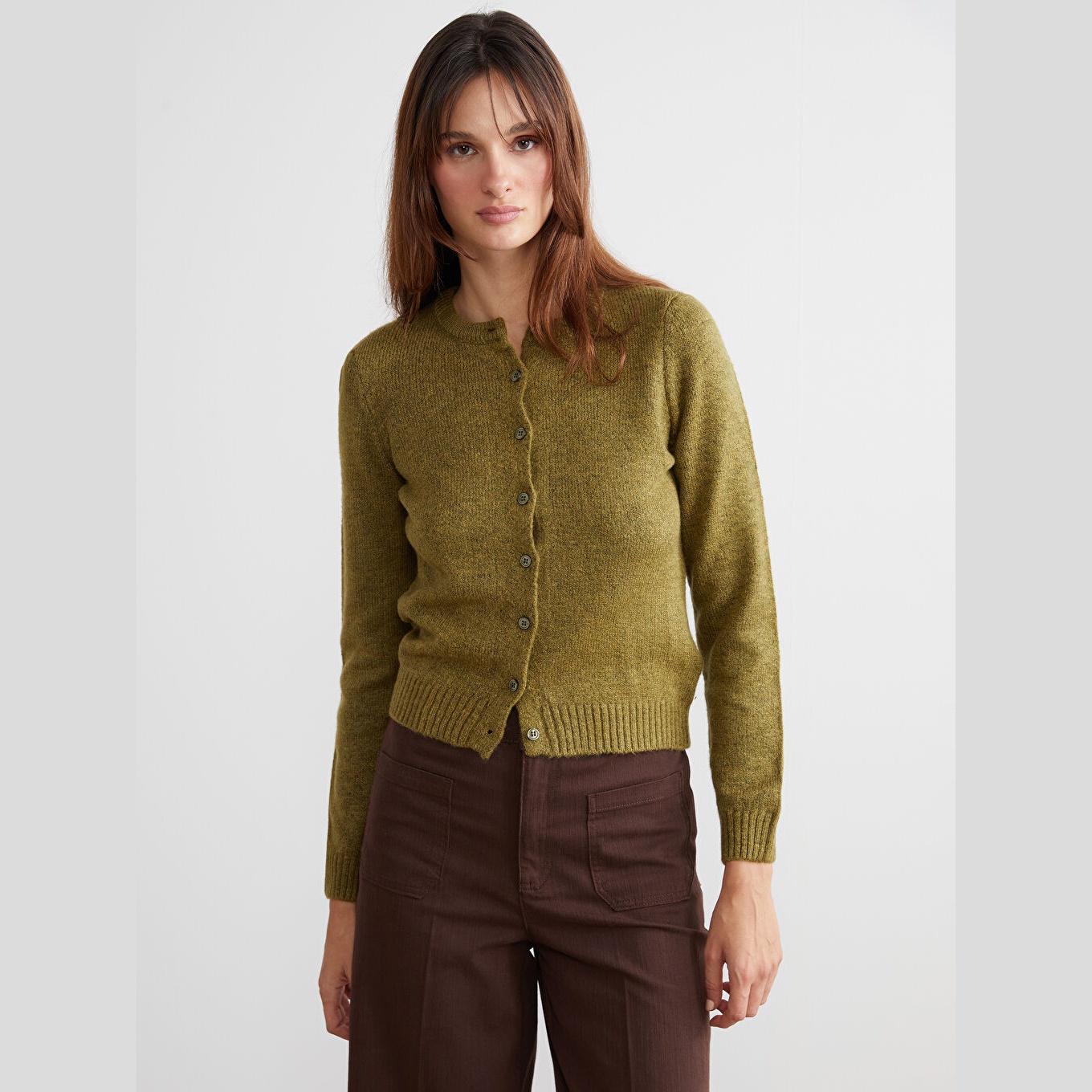 كارديغان نسائي بياقة دائرية من LCW Vision – أخضر (قصة ضيقة جدًا، خامة تريكو متوسطة السماكة، تصميم سادة، أكمام طويلة، مظهر Bodycon)