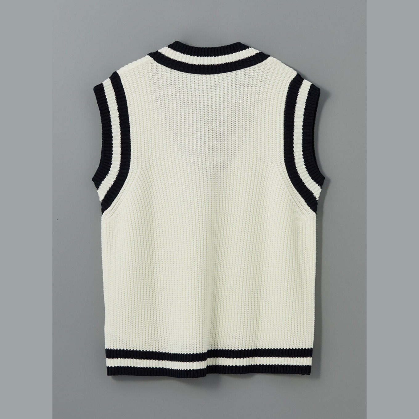 سويتر تريكو أنيق من LCW Modest بلون إكرو ناعم، مصمم بياقة V أنثوية، بدون أكمام، قصة Loose & Bol فضفاضة تمنحك مظهرًا مريحًا وانسيابيًا، تصميم سادة بدون نقوش، مصنوع من خامة Triko متوسطة السماكة بتركيبة 100% أكرليك، بطول يُقاس من الكتف، مثالي للتنسيق مع قمصان بياقة عالية أو بلوزات ناعمة لإطلالة محتشمة وعصرية.