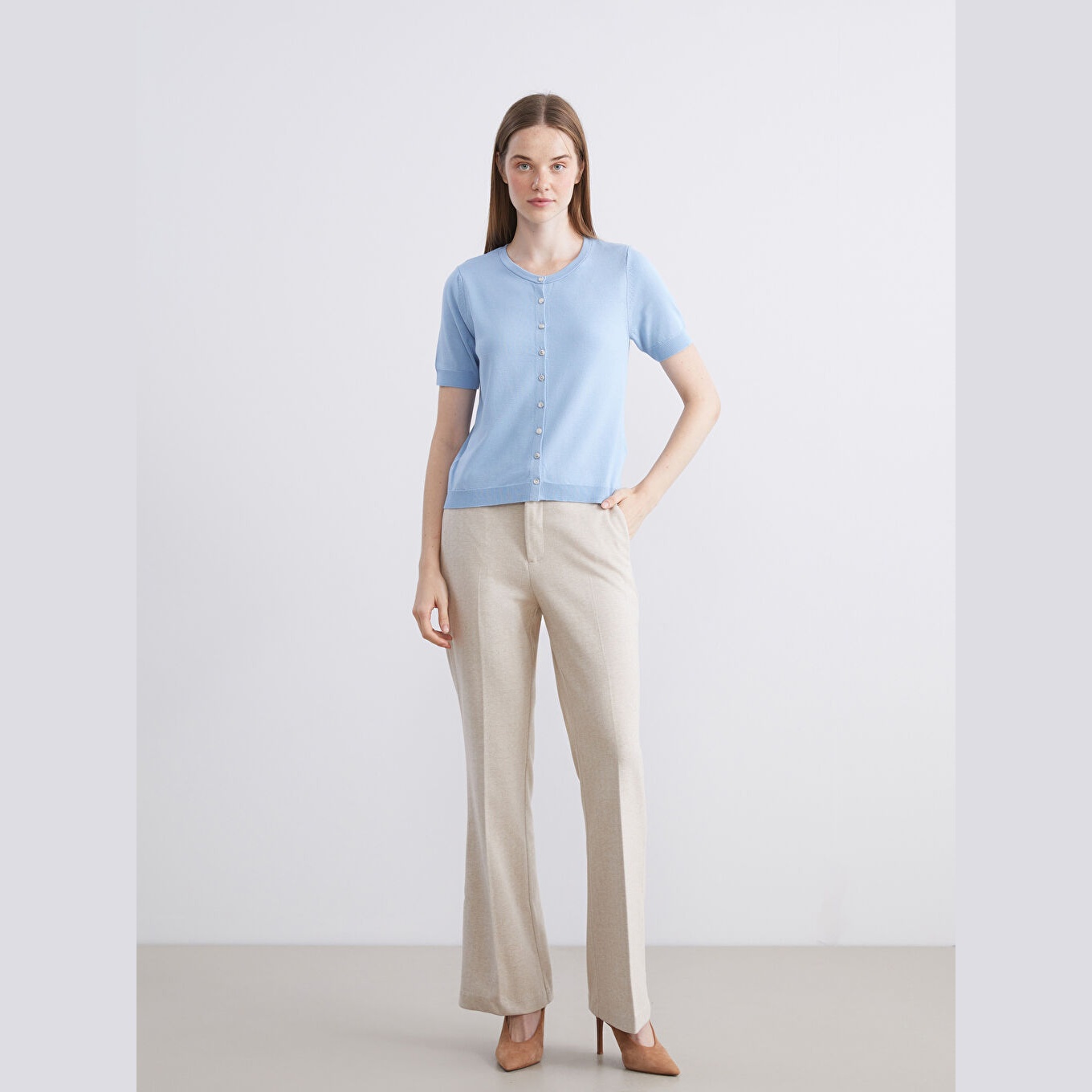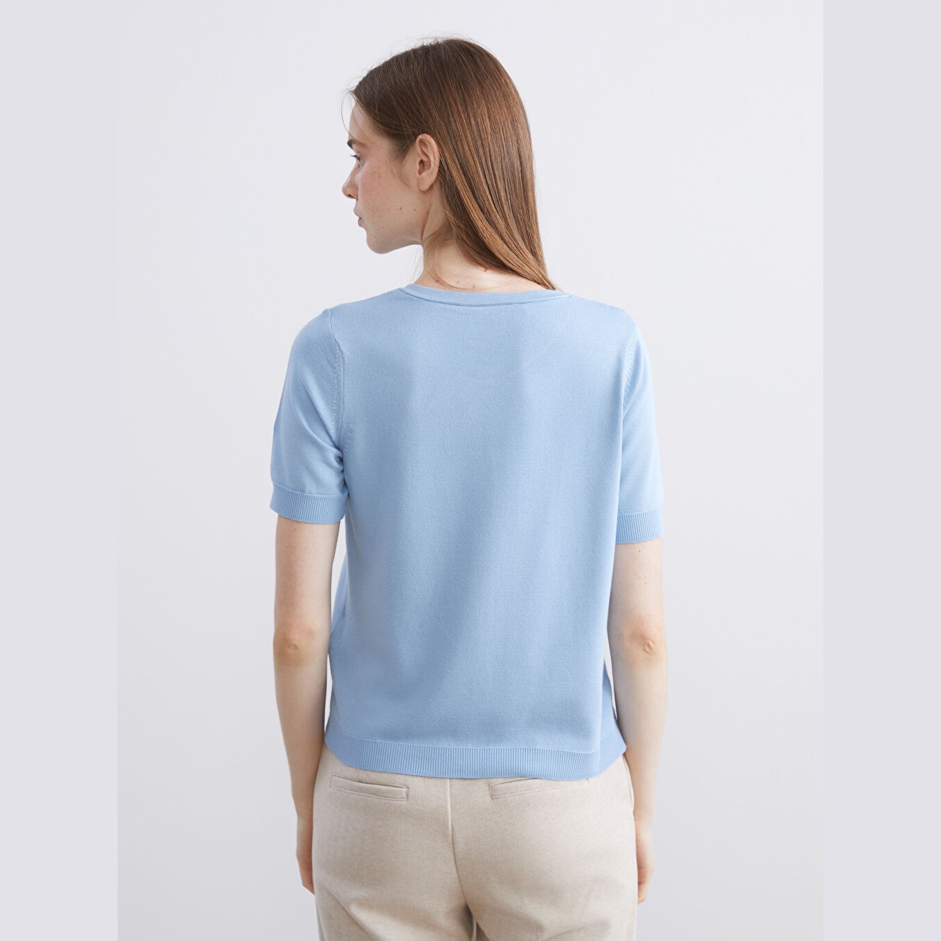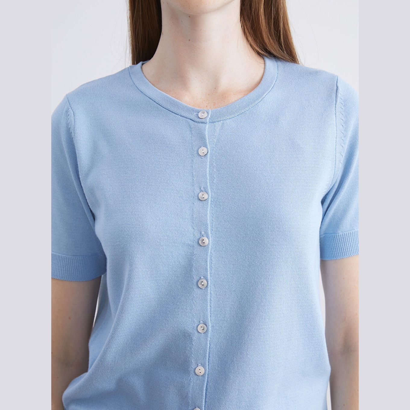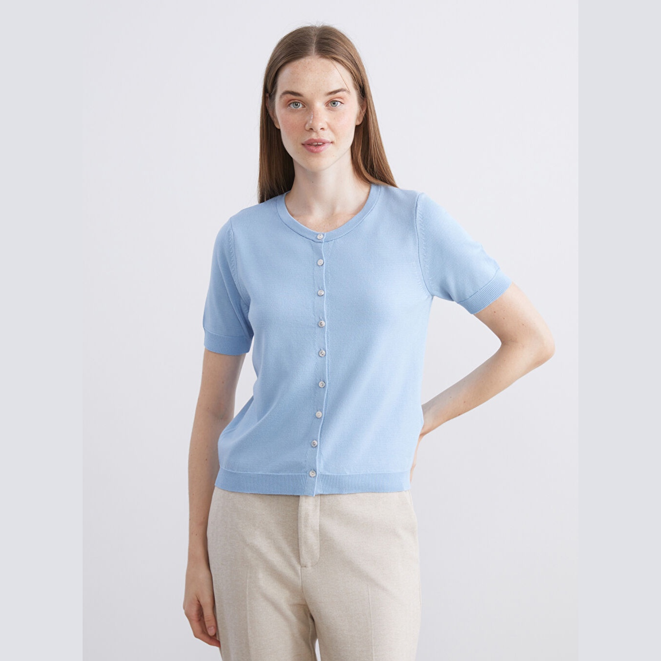 كارديغان نسائي بياقة دائرية من LCW Vision – أزرق (قصة ضيقة، خامة تريكو خفيفة، تصميم سادة، أكمام قصيرة، مظهر أنيق وناعم)
