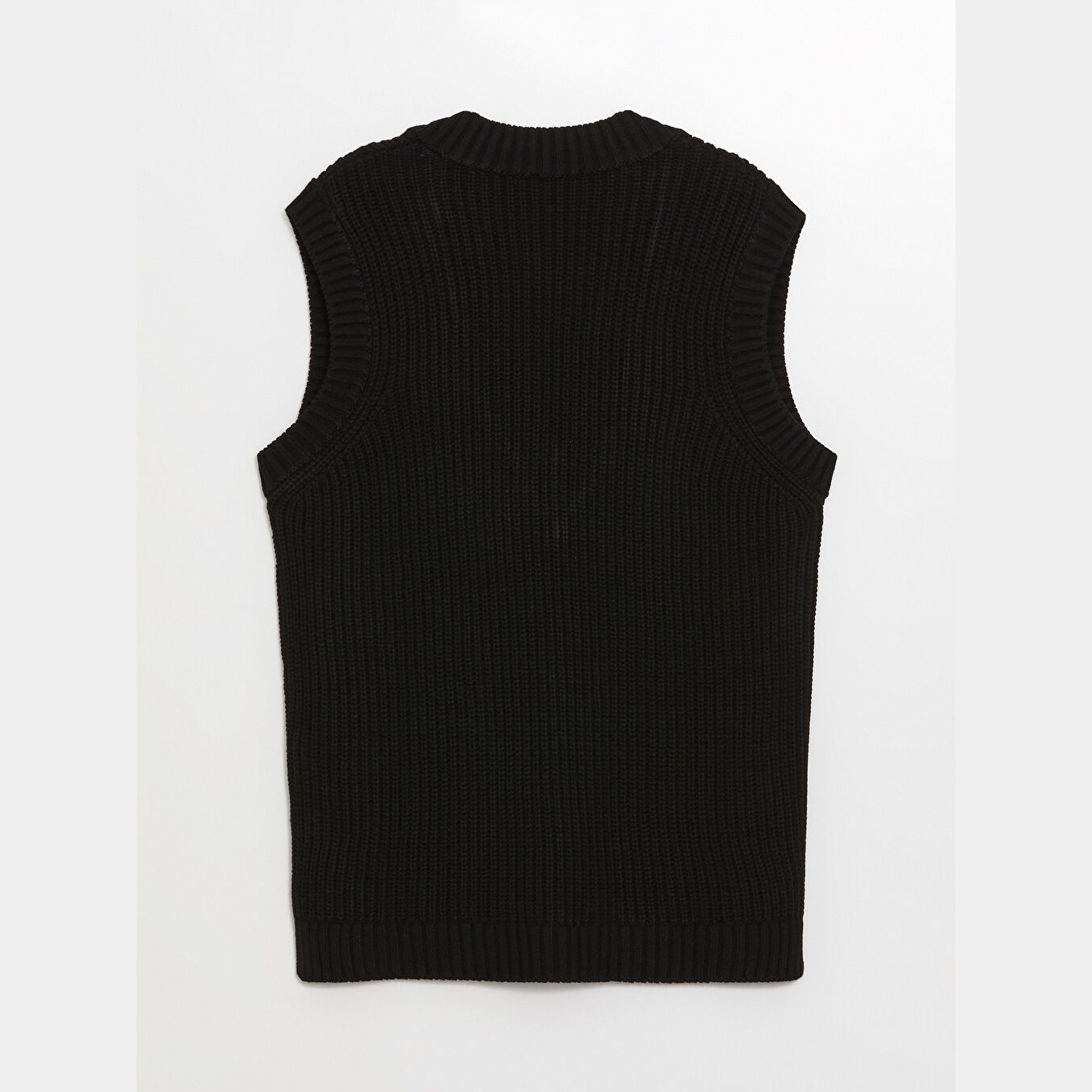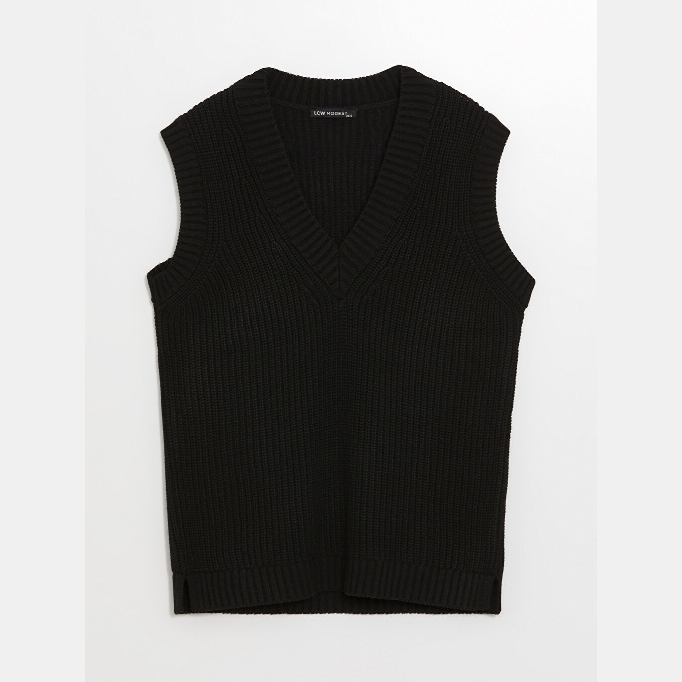 سويتر نسائي بياقة V من LCW Modest – أسود (قصة واسعة، خامة تريكو متوسطة السماكة، تصميم سادة، بدون أكمام، من مجموعة Tesettür Giyim)