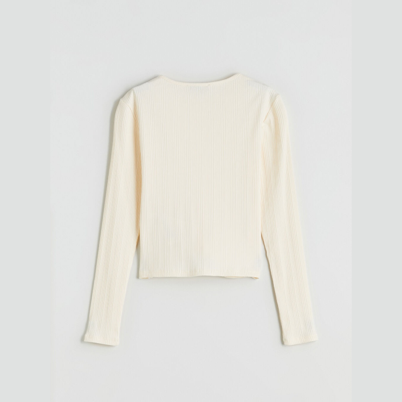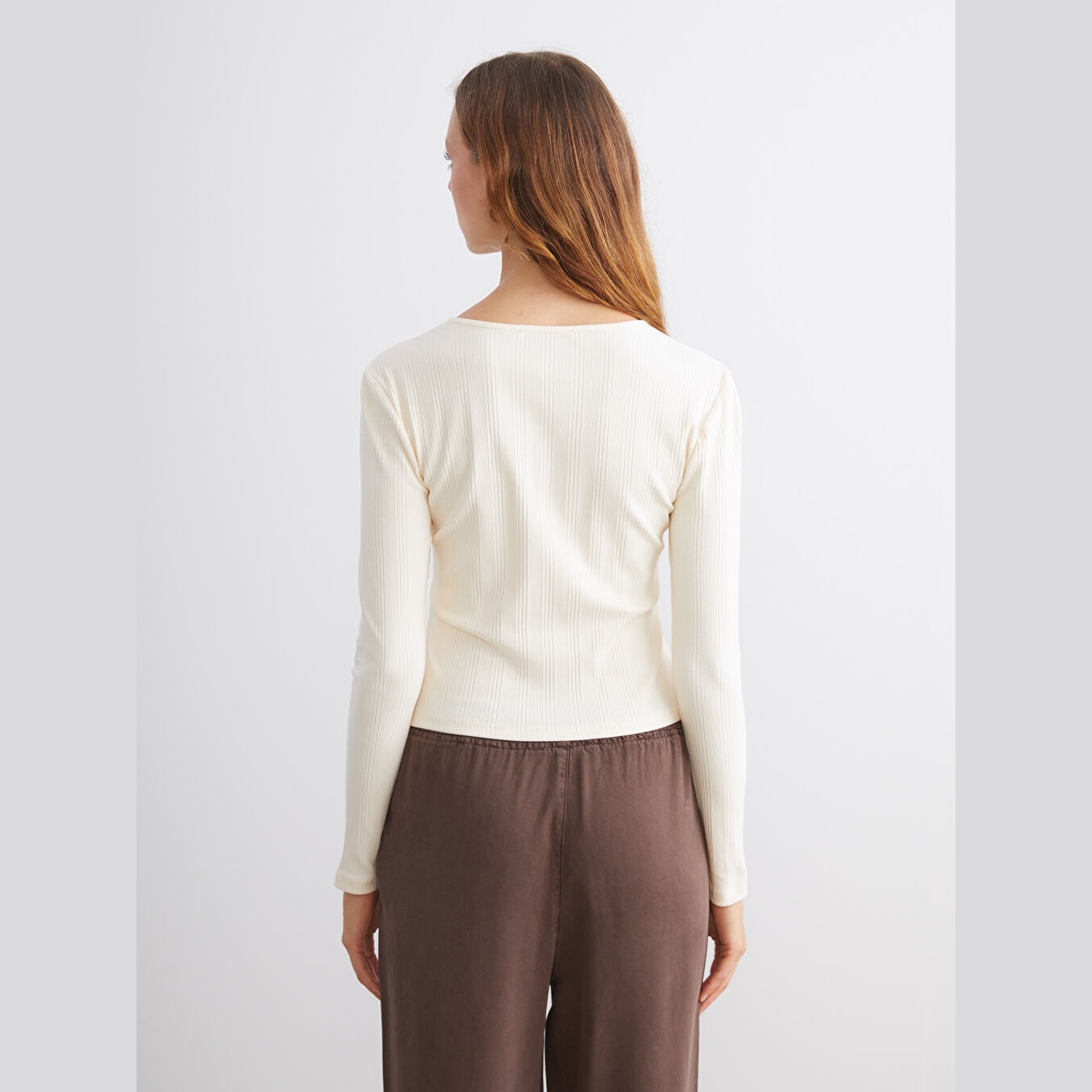 كارديغان عملي من LCW Vision بلون إكرو ناعم، مصمم بياقة دائرية (Bisiklet Yaka)، أكمام طويلة، قصة Super Skinny & Ekstra Dar تمنحك مظهرًا أنثويًا محددًا، تصميم سادة بدون نقوش، مصنوع من خامة Ribana مرنة بتركيبة تحتوي على 94% قطن و6% إيلاستان، بطول يُقاس من الكتف، مزود بأزرار أمامية أنيقة، مثالي للتنسيق مع بناطيل عالية الخصر أو تنانير ضيقة لإطلالة ناعمة ومريحة.