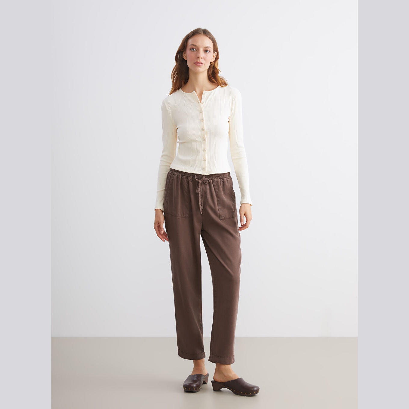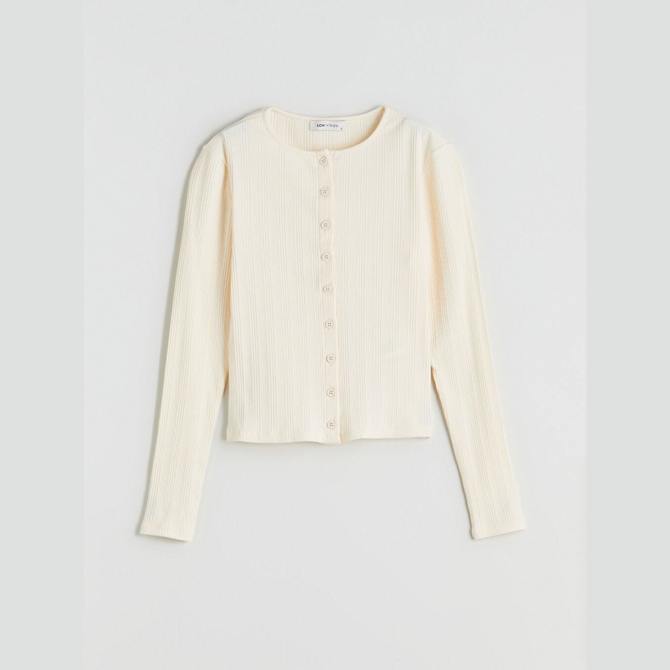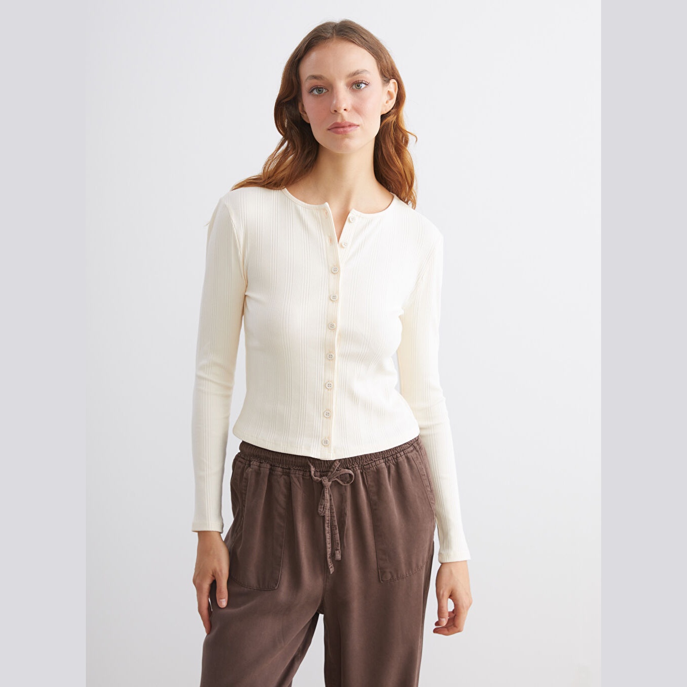 كارديغان نسائي بياقة دائرية من LCW Vision – إكرو (قصة ضيقة جدًا، خامة Ribana مرنة، تصميم سادة، أكمام طويلة، نسبة عالية من القطن، بأزرار أمامية)