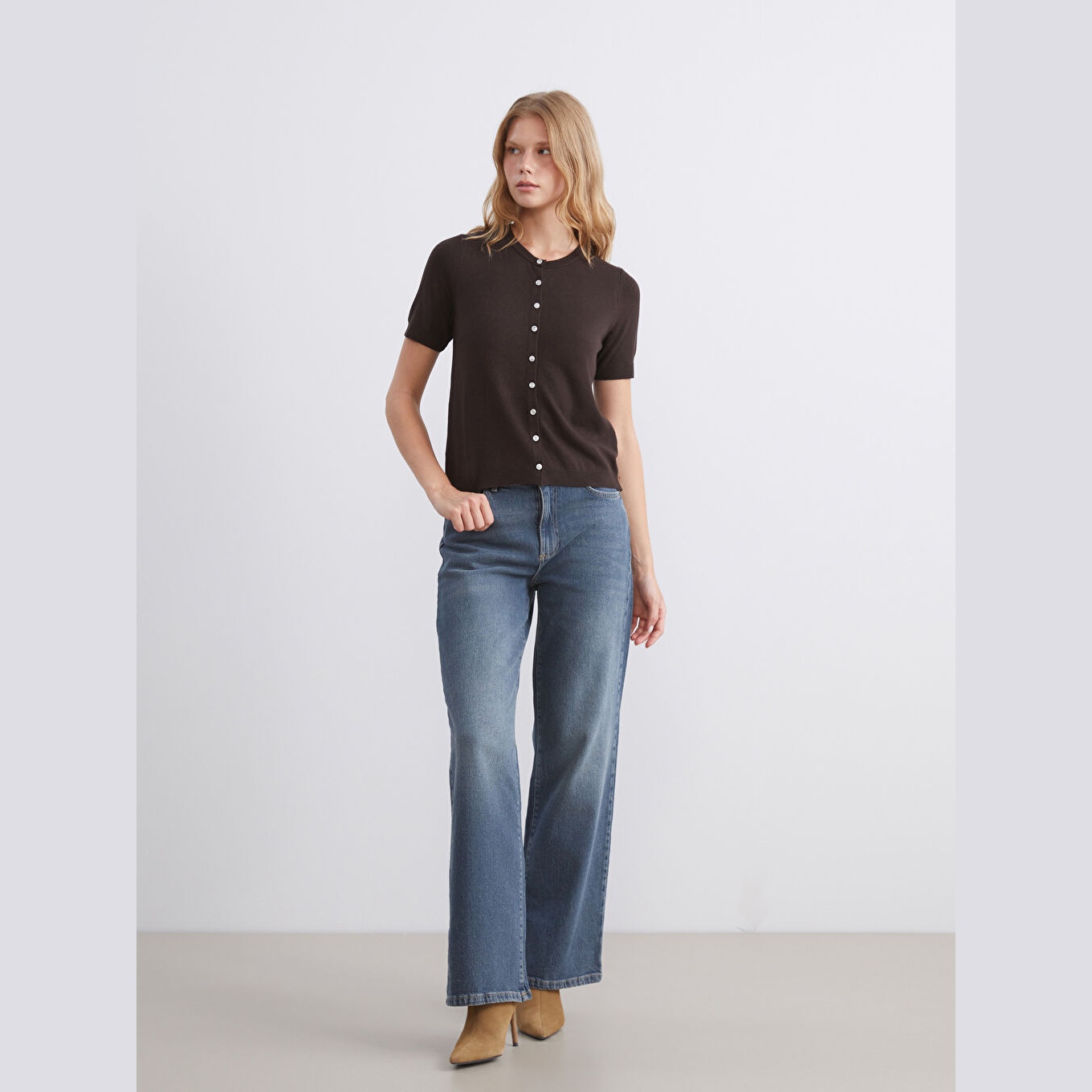 كارديغان تريكو أنيق من LCW Vision بلون أخضر هادئ، مصمم بياقة دائرية (Bisiklet Yaka)، أكمام قصيرة، قصة Dar & Slim تمنحك مظهرًا أنثويًا مرتبًا، تصميم سادة بدون نقوش، مصنوع من خامة Triko خفيفة بتركيبة تحتوي على 73% فيسكوز و27% بوليستر، بطول يُقاس من الكتف، مزود بأزرار أمامية أنيقة، مثالي للتنسيق مع بناطيل عالية الخصر أو تنانير ضيقة لإطلالة عملية وعصرية في الأجواء المعتدلة.