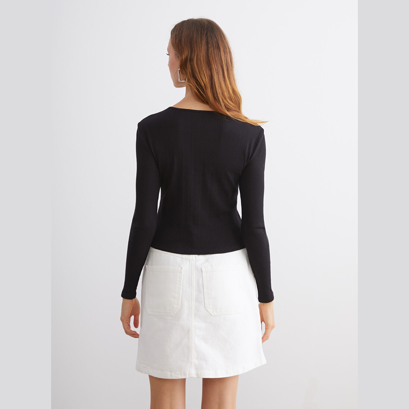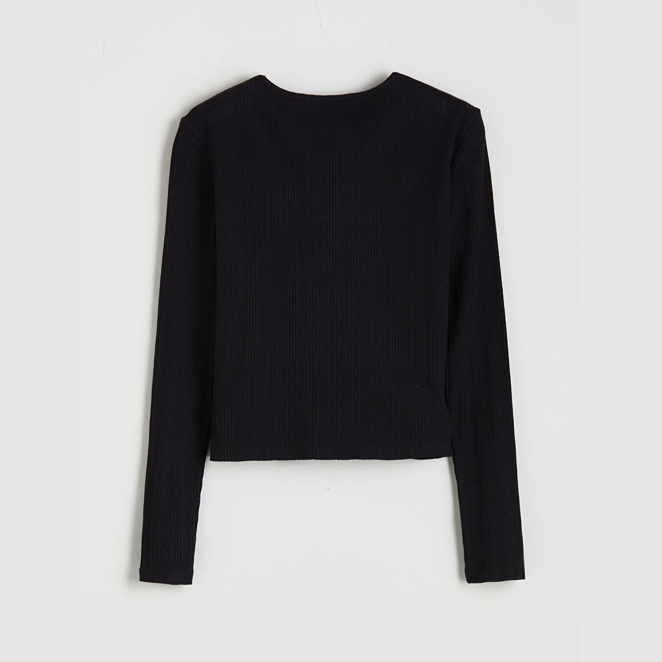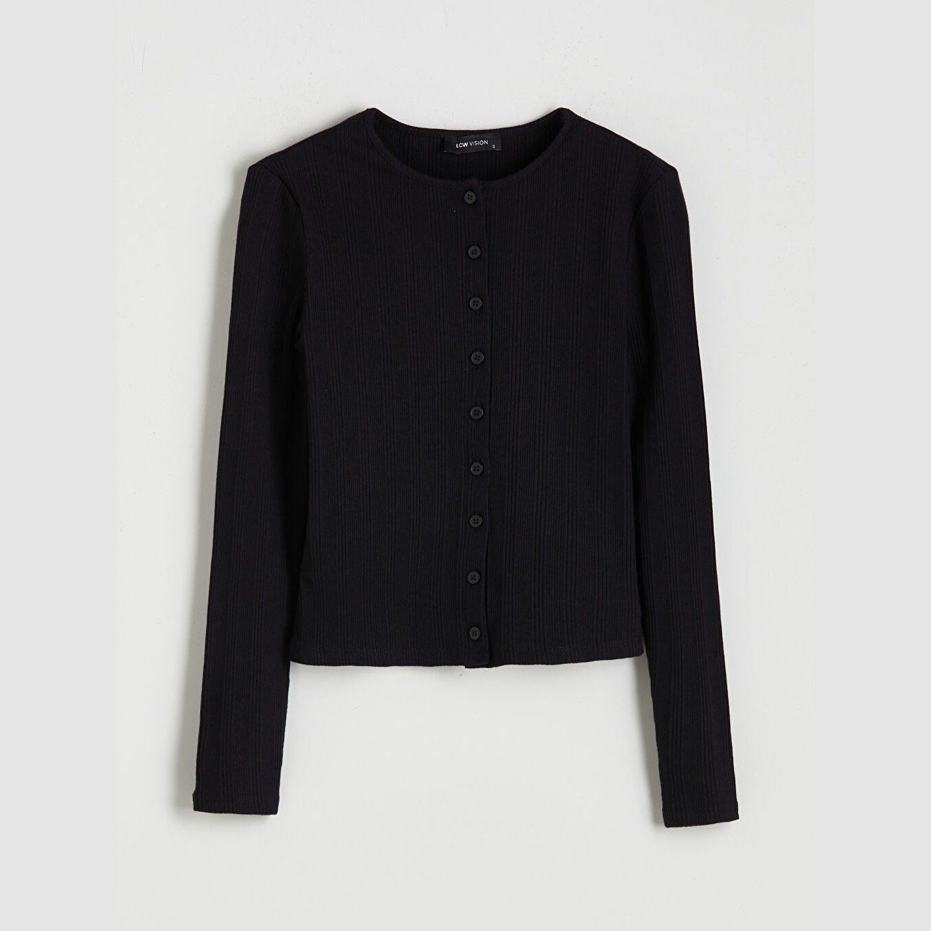 كارديغان نسائي بياقة دائرية من LCW Vision – أسود (قصة ضيقة جدًا، خامة Ribana مرنة، تصميم سادة، أكمام طويلة، نسبة عالية من القطن، بأزرار أمامية)
