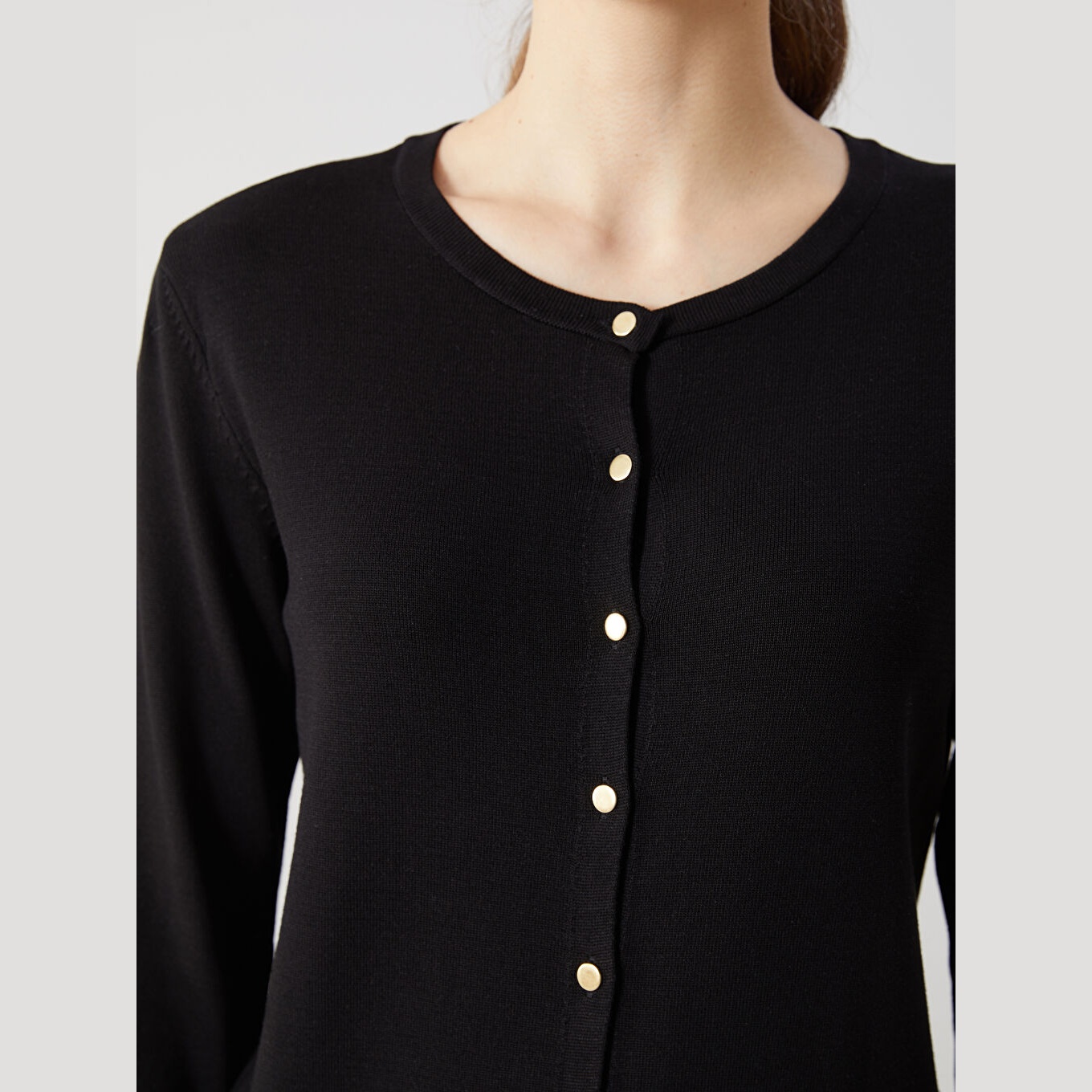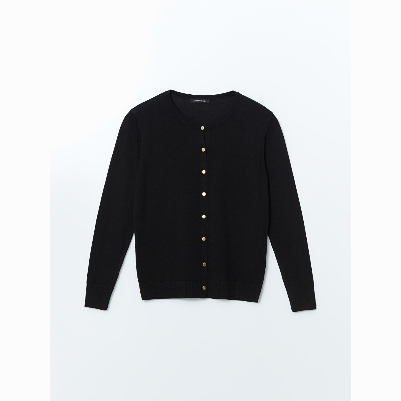 كارديغان نسائي بياقة دائرية من LCWAIKIKI Classic – أسود (قصة ضيقة، خامة تريكو خفيفة، تصميم سادة، أكمام طويلة، من مجموعة Büyük Beden)