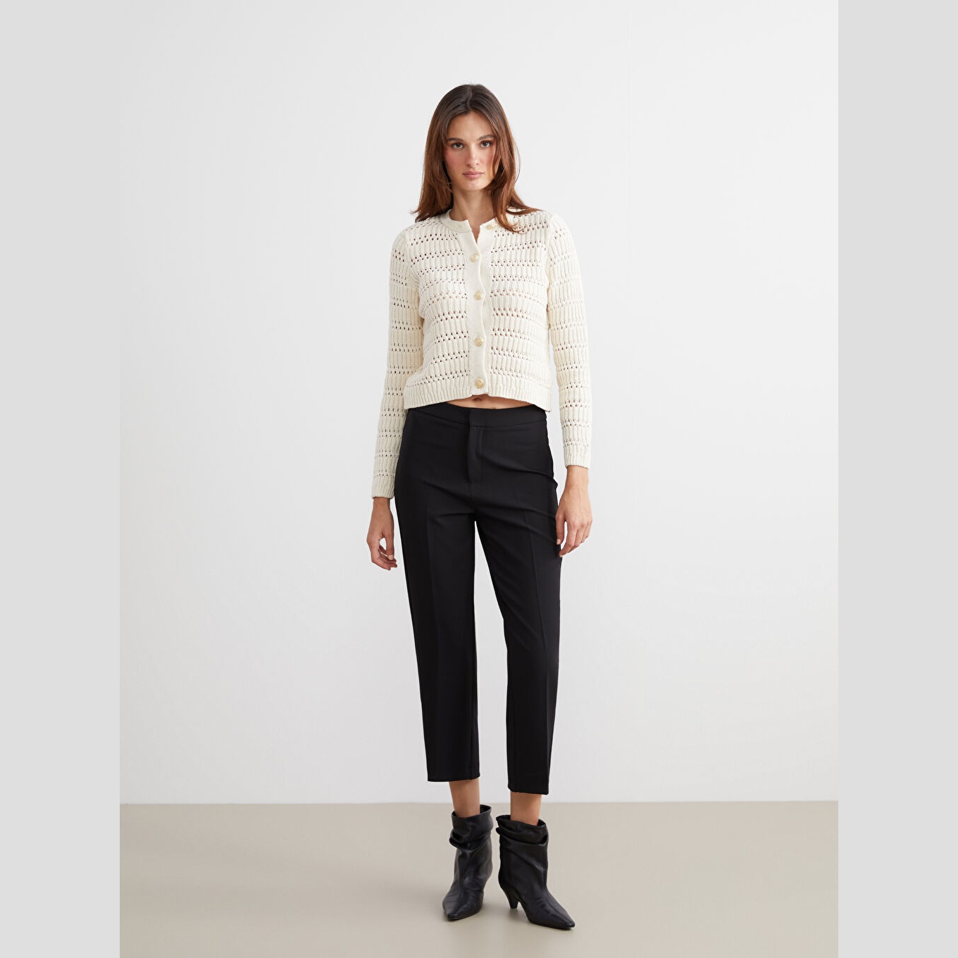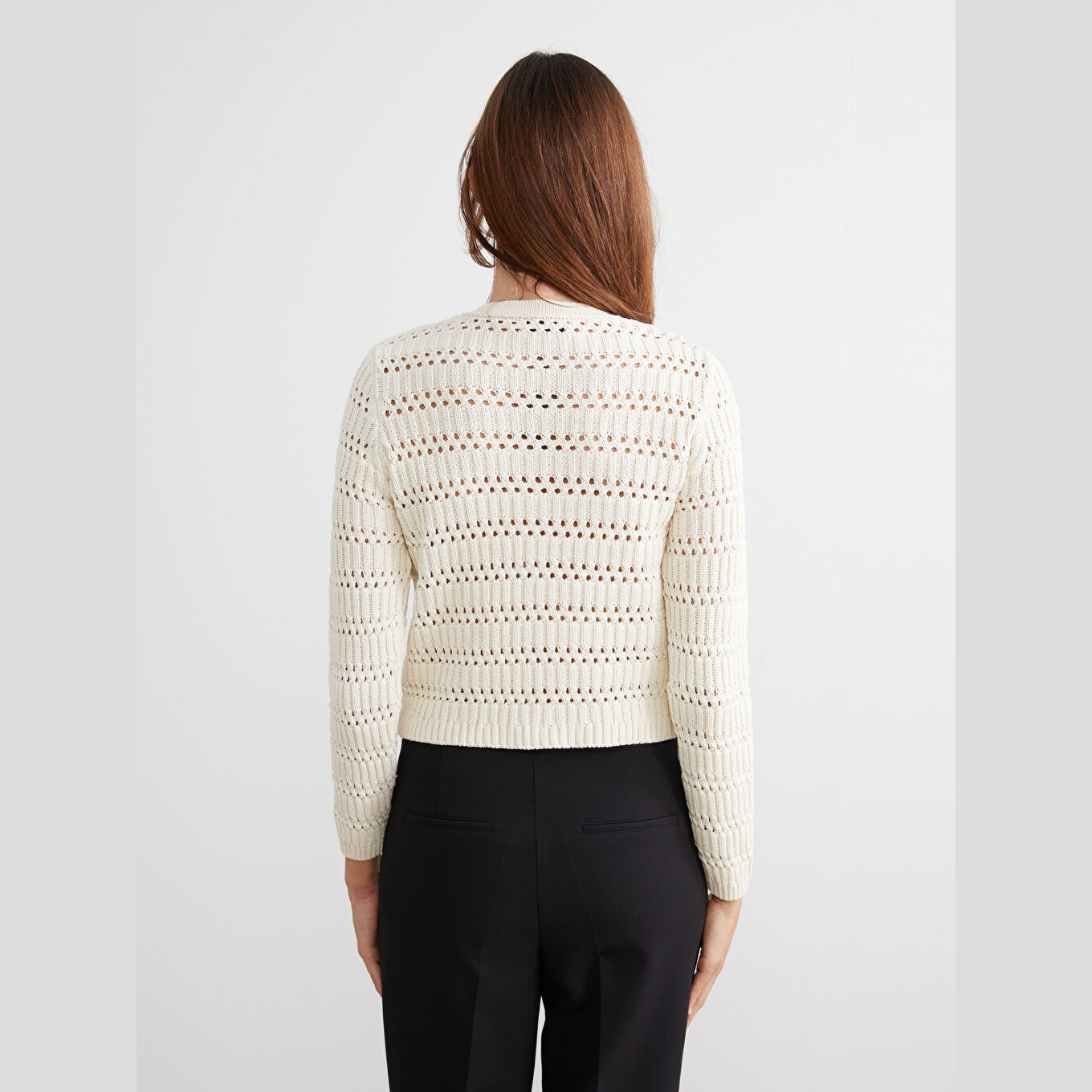 كارديغان نسائي بياقة دائرية من LCW Vision – بيج (قصة ضيقة، خامة تريكو متوسطة السماكة، تصميم Ajurlu مفرغ، أكمام طويلة، مزيج قطن وبوليستر وفيسكوز)