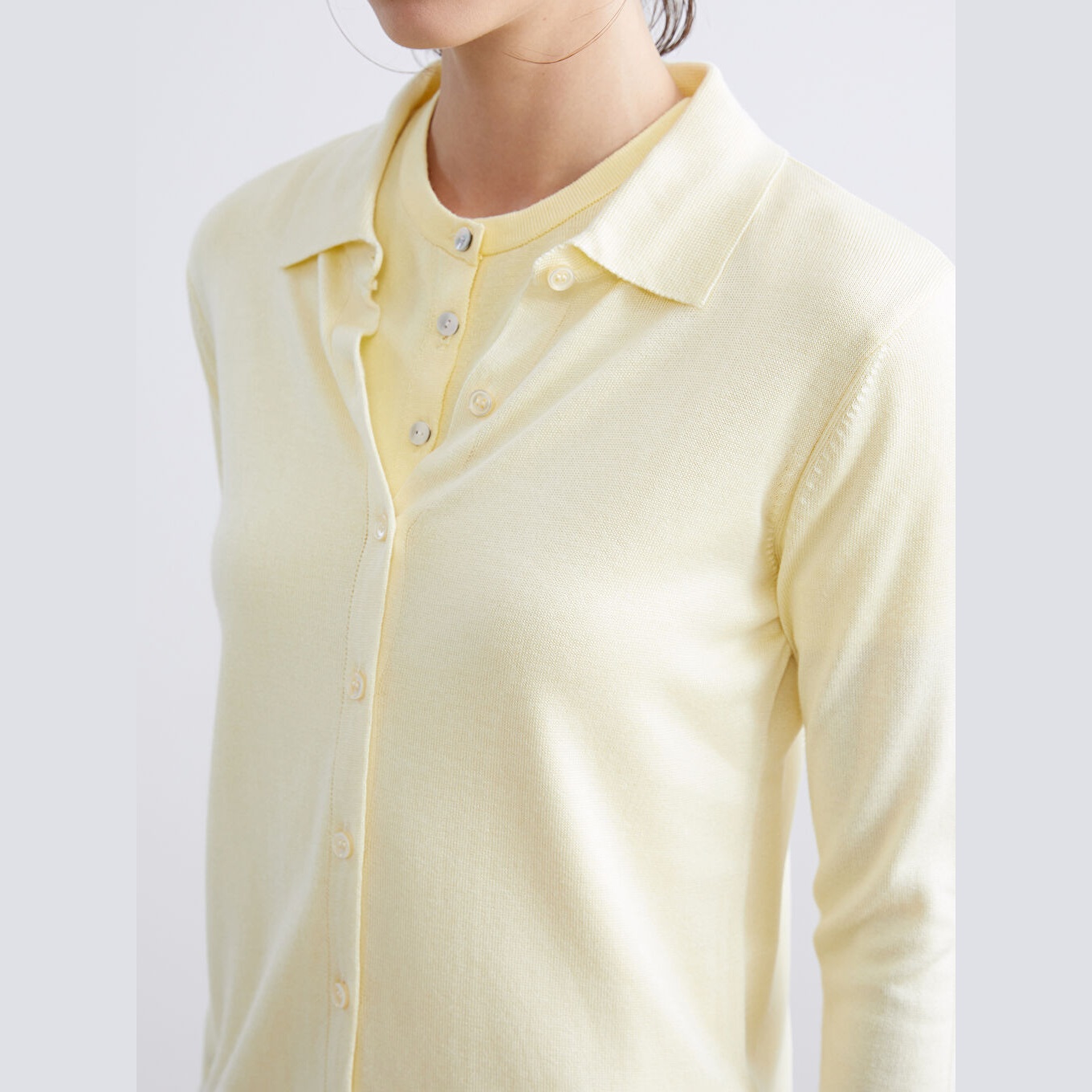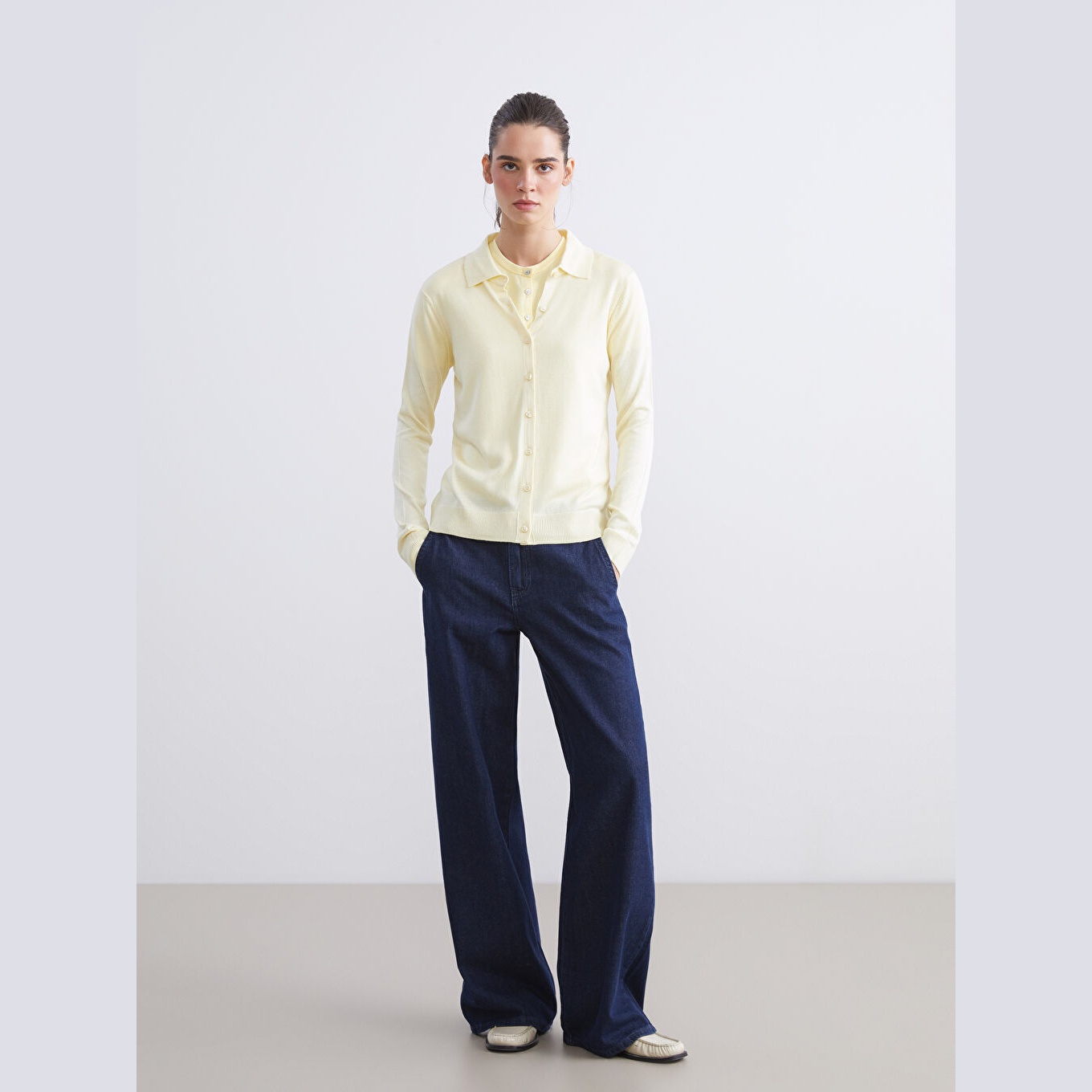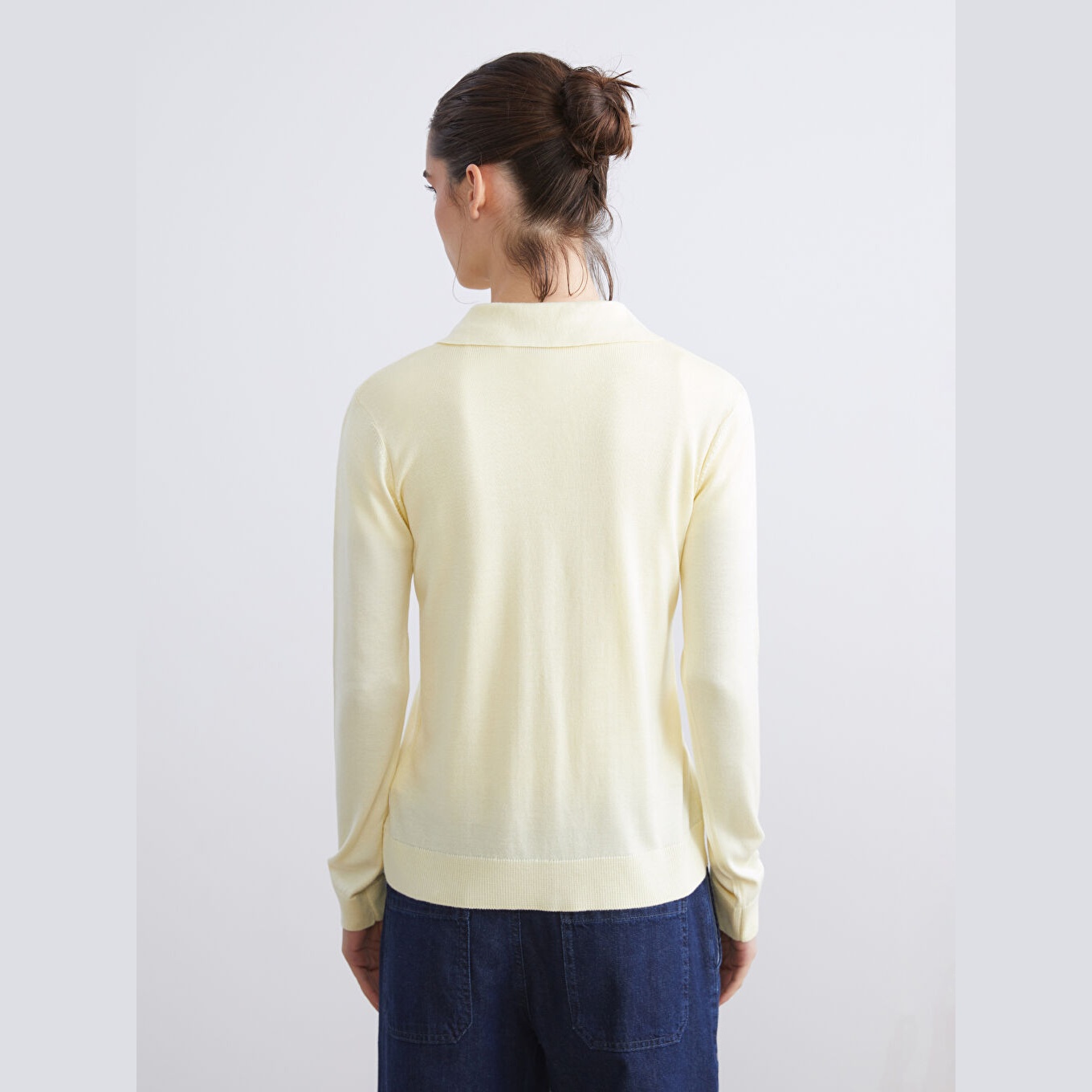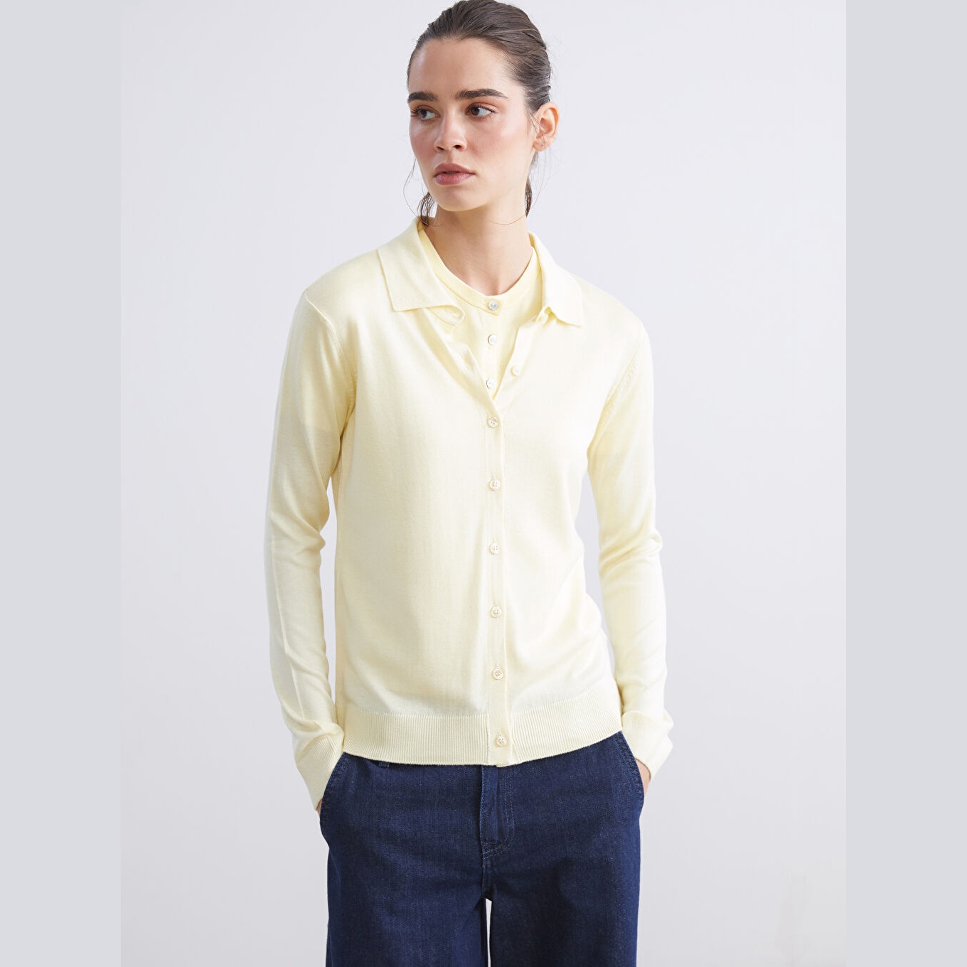كارديغان نسائي بياقة بولو من LCW Vision – أصفر (قصة ضيقة، خامة تريكو متوسطة السماكة، تصميم سادة، أكمام طويلة، مزيج أكريليك وفيسكوز)