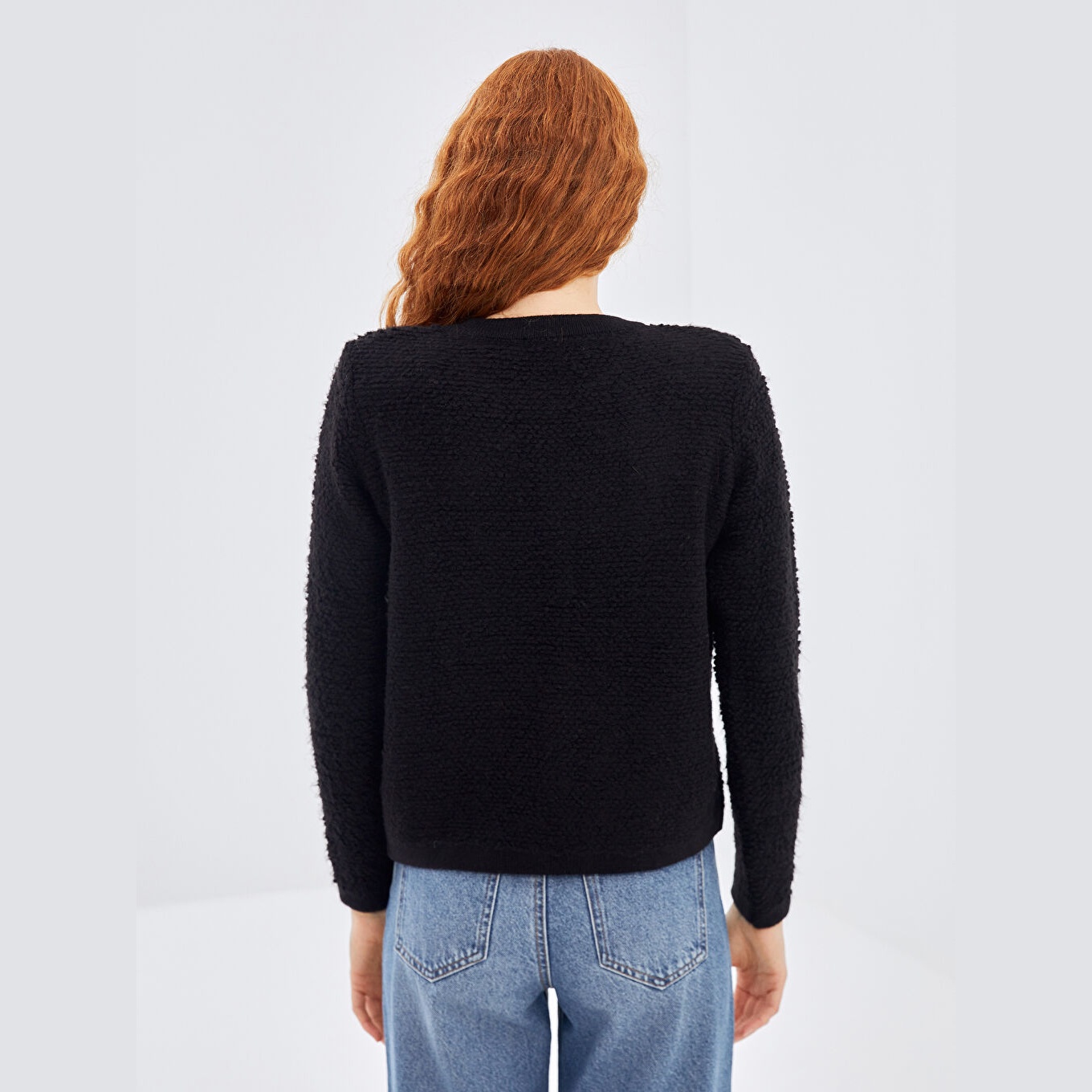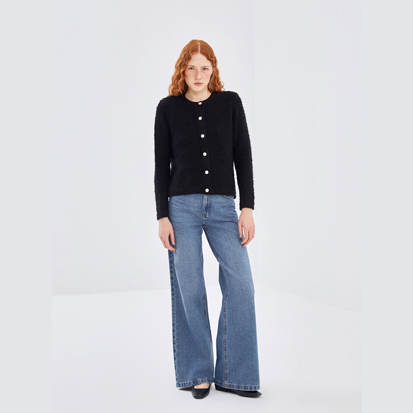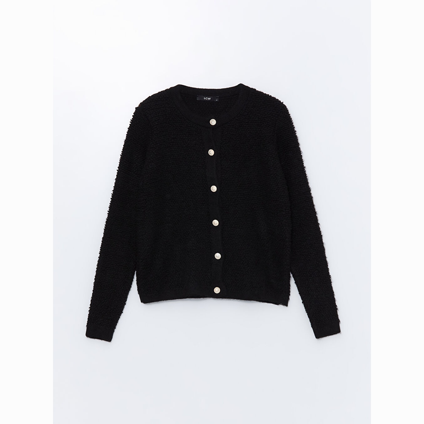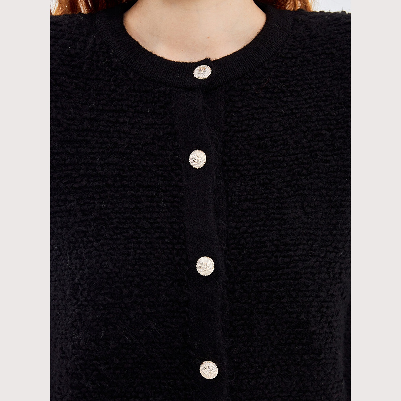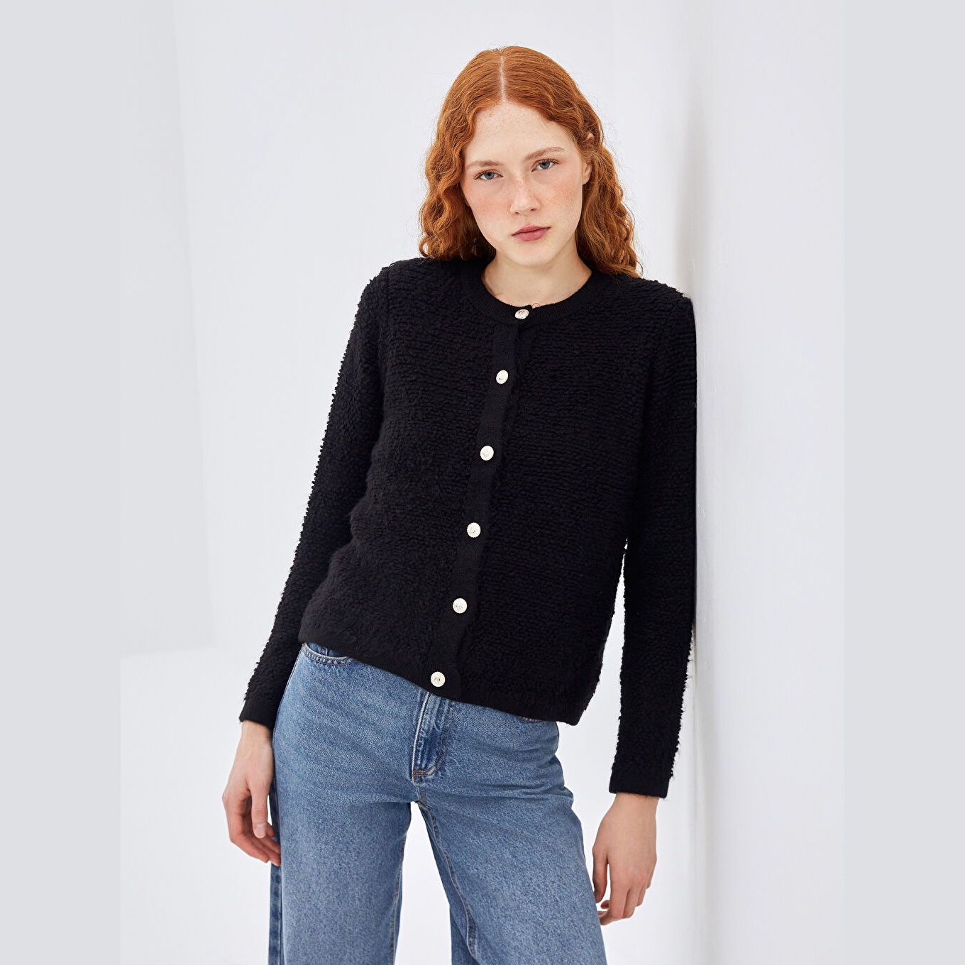 كارديغان نسائي بياقة دائرية من LCWAIKIKI Classic – أسود (قصة قياسية، خامة تريكو خفيفة، تصميم سادة، أكمام طويلة، مزيج أكريليك وبوليستر)