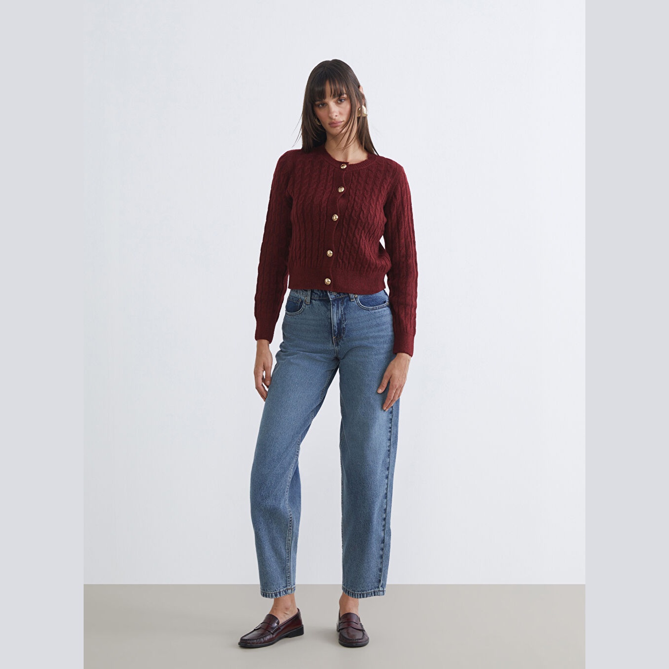 كارديغان تريكو أنيق من LCW Vision بلون بوردو دافئ، مصمم بياقة دائرية (Bisiklet Yaka)، أكمام طويلة، قصة Standart & Regular تمنحك مظهرًا مريحًا ومتوازنًا، تصميم Desenli بنقشة ذاتية تضيف لمسة فاخرة دون مبالغة، مصنوع من خامة Triko متوسطة السماكة بتركيبة تحتوي على 75% أكريليك و25% بوليستر، بزر أمامي للإغلاق، مثالي للتنسيق مع بناطيل قماش أو تنانير خفيفة لإطلالة خريفية أنيقة.