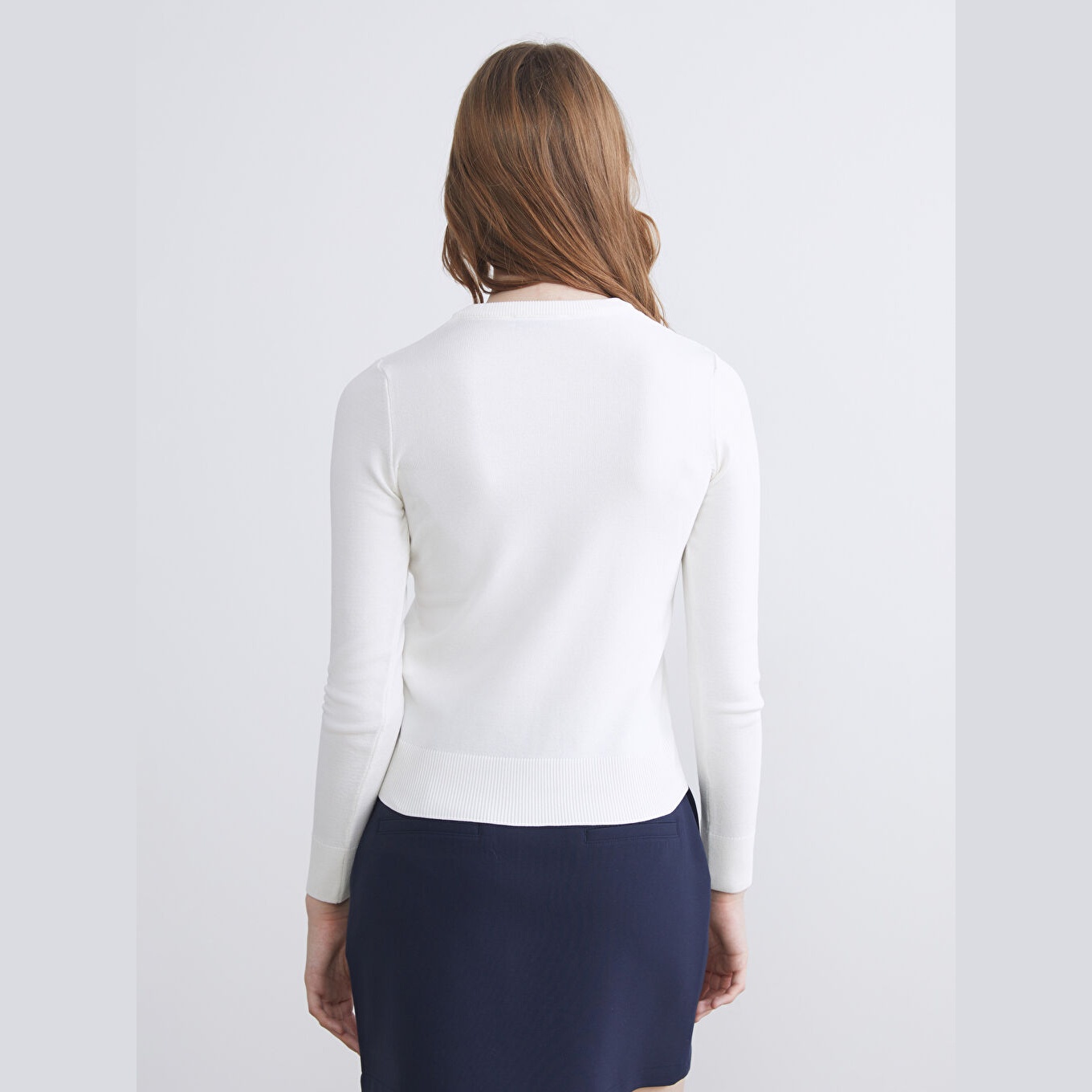 كارديغان نسائي بياقة دائرية من LCW Vision – إكرو (قصة ضيقة، خامة تريكو خفيفة، تصميم سادة، أكمام طويلة، مزيج فيسكوز وبوليستر، طول قصير)