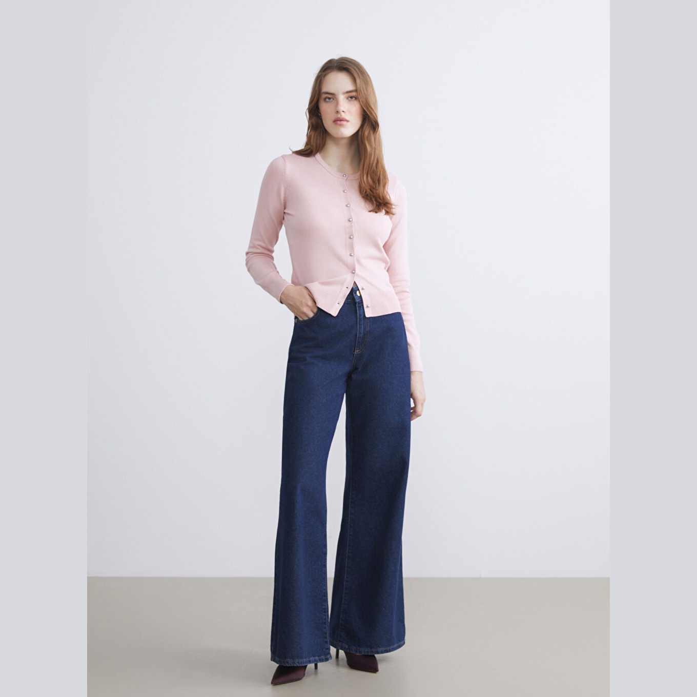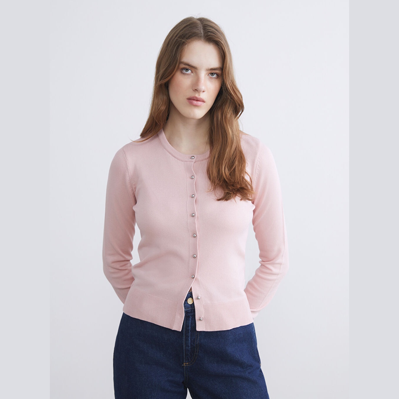 كارديغان نسائي بياقة دائرية من LCW Vision – وردي (قصة ضيقة، خامة تريكو خفيفة، تصميم سادة، أكمام طويلة، مزيج فيسكوز وبوليستر، طول قصير)