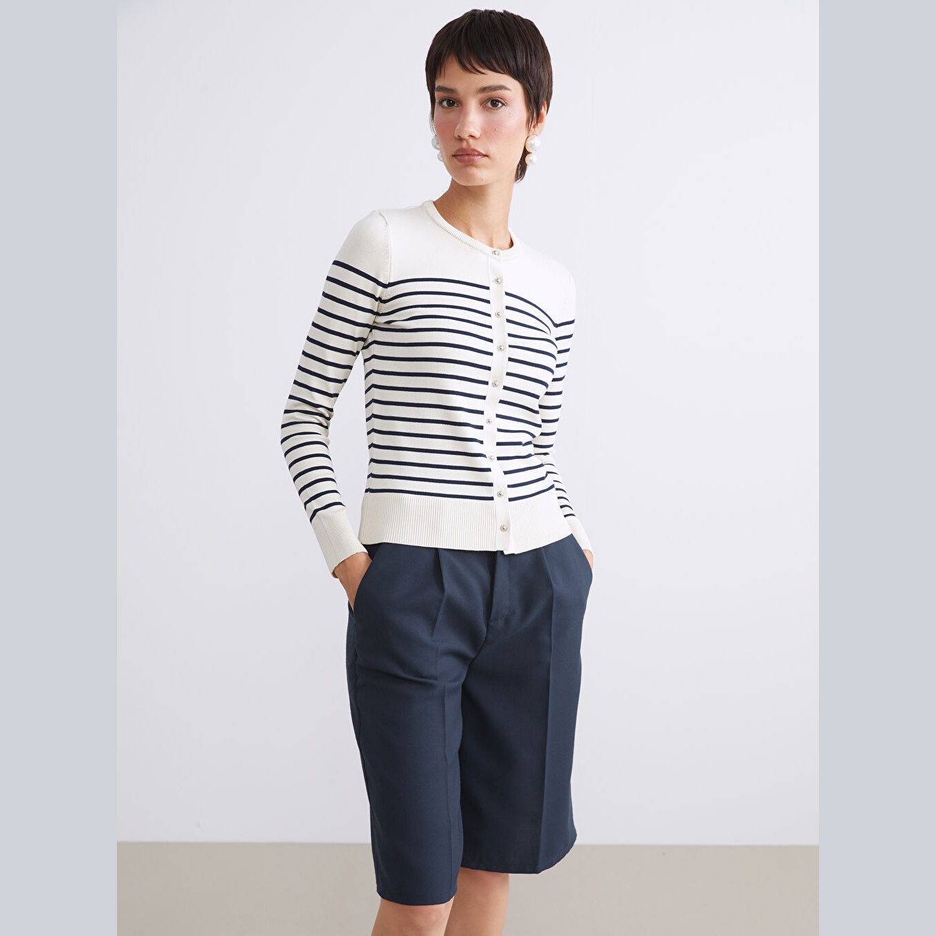كارديغان أنيق من LCW Vision بلون بيج هادئ مع خطوط ناعمة تضيف لمسة عصرية، مصمم بياقة دائرية (Bisiklet Yaka)، أكمام طويلة، قصة Dar & Slim تمنحك مظهرًا أنثويًا مرتبًا، تصميم Çizgili بخطوط أفقية، خامة Triko خفيفة بتركيبة تحتوي على 73% فيسكوز و27% بوليستر، بطول يُقاس من الكتف، مثالي للتنسيق مع بناطيل قماش أو جينز لإطلالة يومية أنيقة.