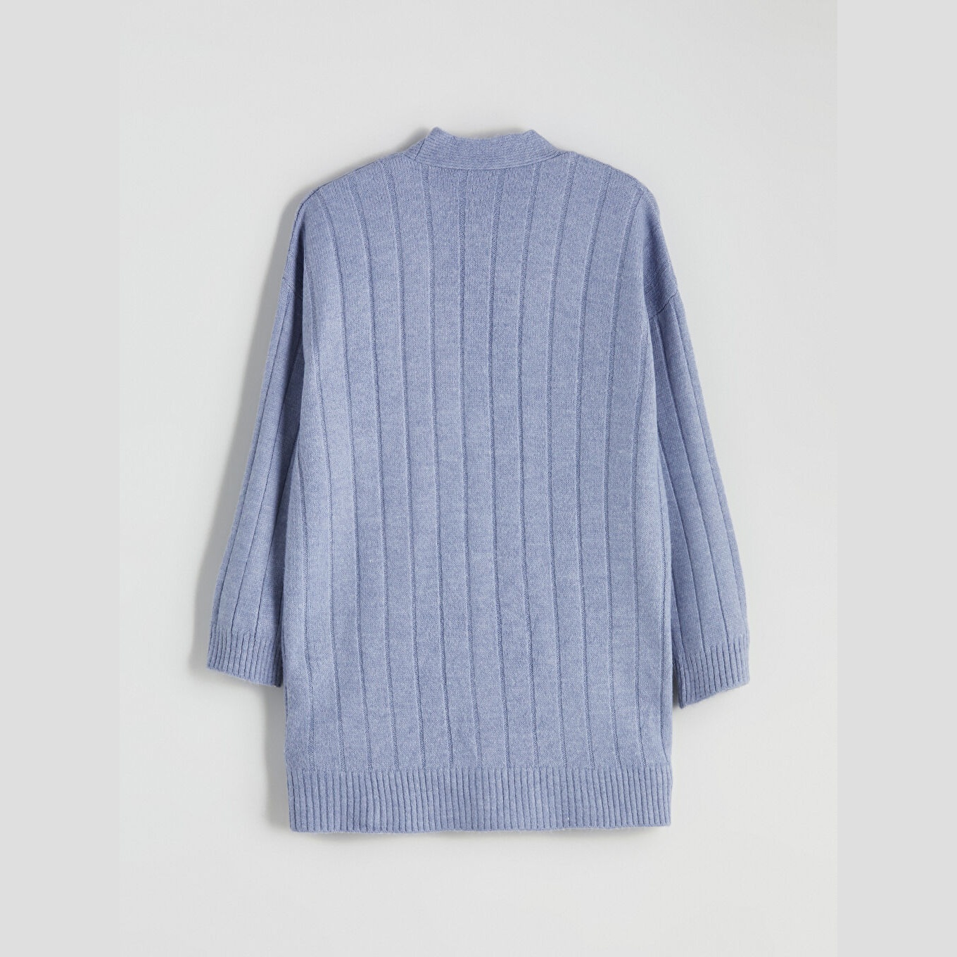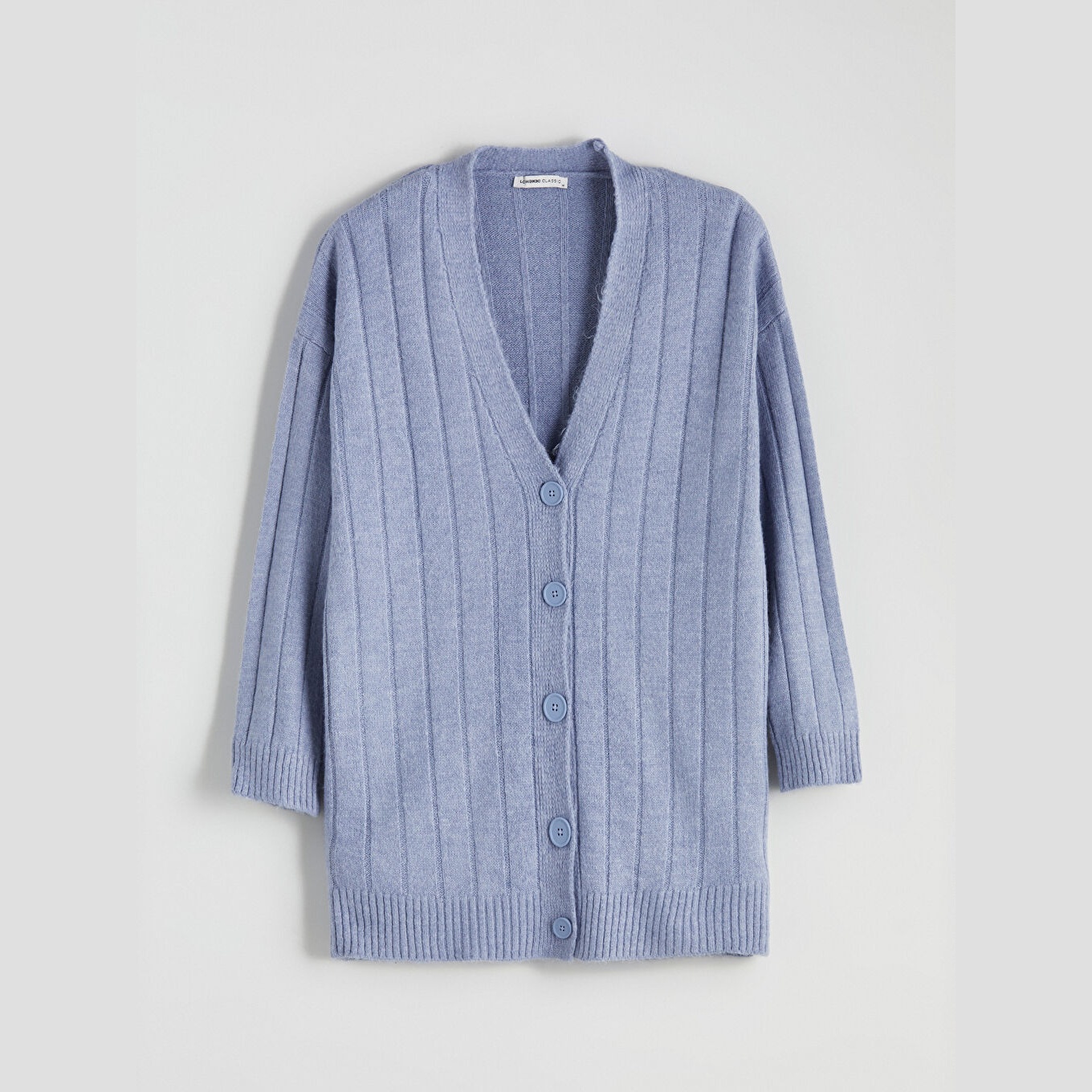 كارديغان نسائي بياقة V من LCWAIKIKI Classic – أزرق (قصة واسعة، خامة تريكو متوسطة السماكة، تصميم سادة، أكمام طويلة، طول ميدي، مزيج أكريليك وبوليستر، ضمن مجموعة المقاسات الكبيرة)