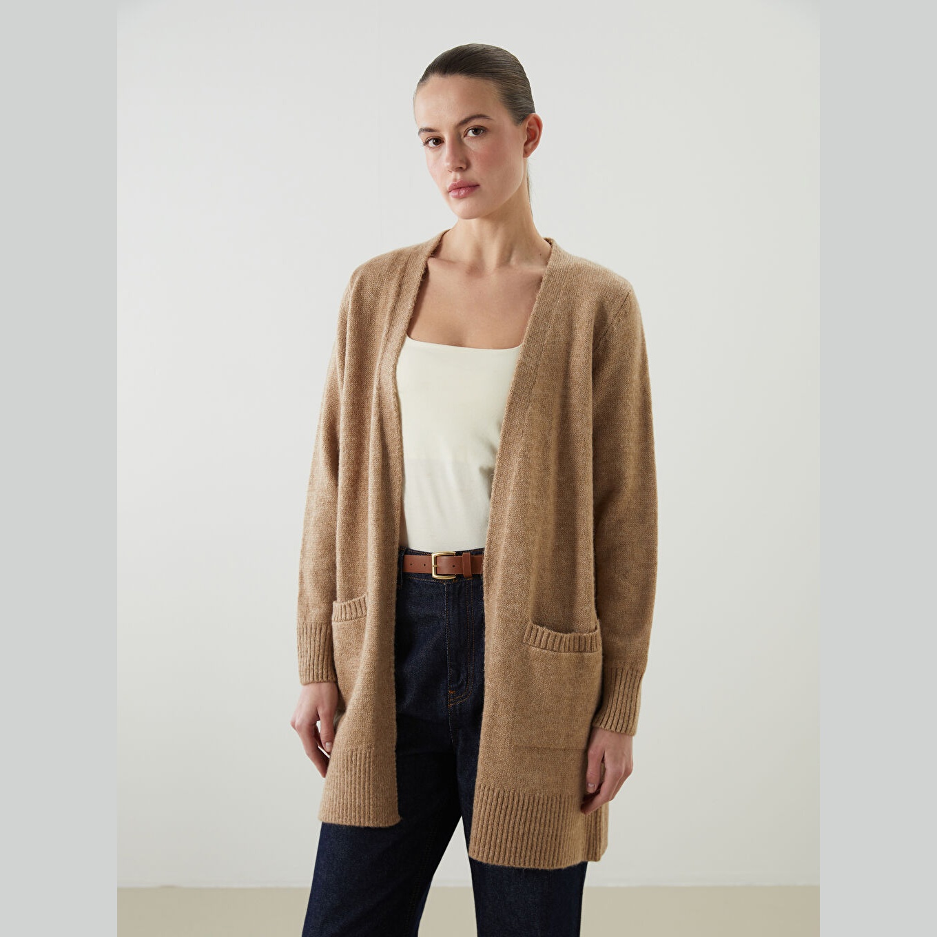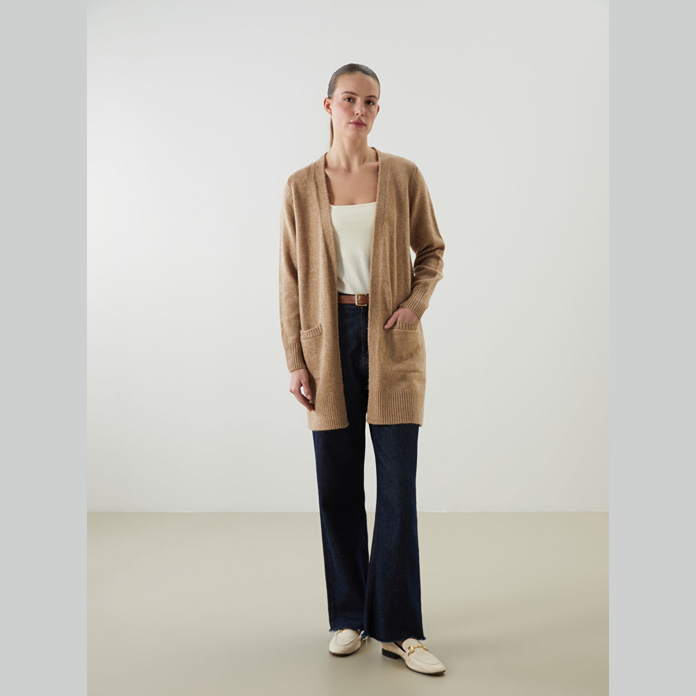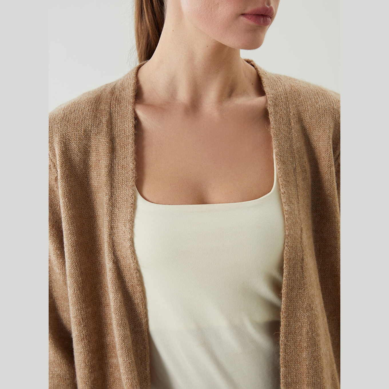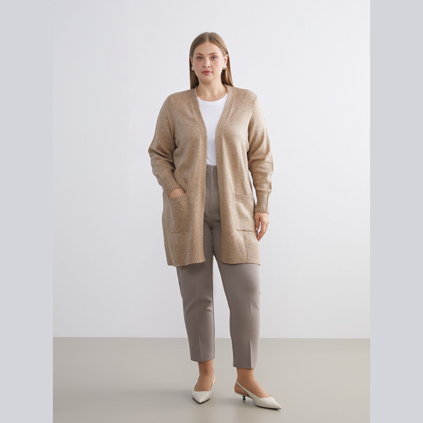 كارديغان دافئ من مجموعة LCWAIKIKI Classic بلون بني ترابي أنيق، مصمم بياقة شال (Şal Yaka) تضيف لمسة كلاسيكية وانسيابية، أكمام طويلة، قصة Loose & Bol تمنحك مظهرًا فضفاضًا وانسيابيًا، تصميم سادة بدون نقوش، خامة Triko سميكة بتركيبة تحتوي على 74% أكريليك و26% بوليستر، بطول يُقاس من الكتف، مخصص ضمن مجموعة Büyük Beden لتوفير ملاءمة مثالية للسيدات بمقاسات كبيرة، مثالي للتنسيق مع بناطيل قماش أو جينز لإطلالة شتوية أنيقة.
