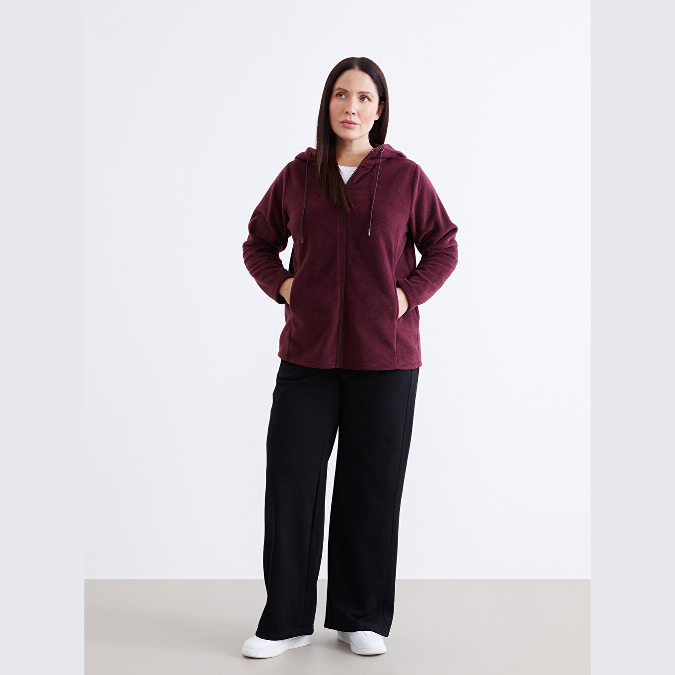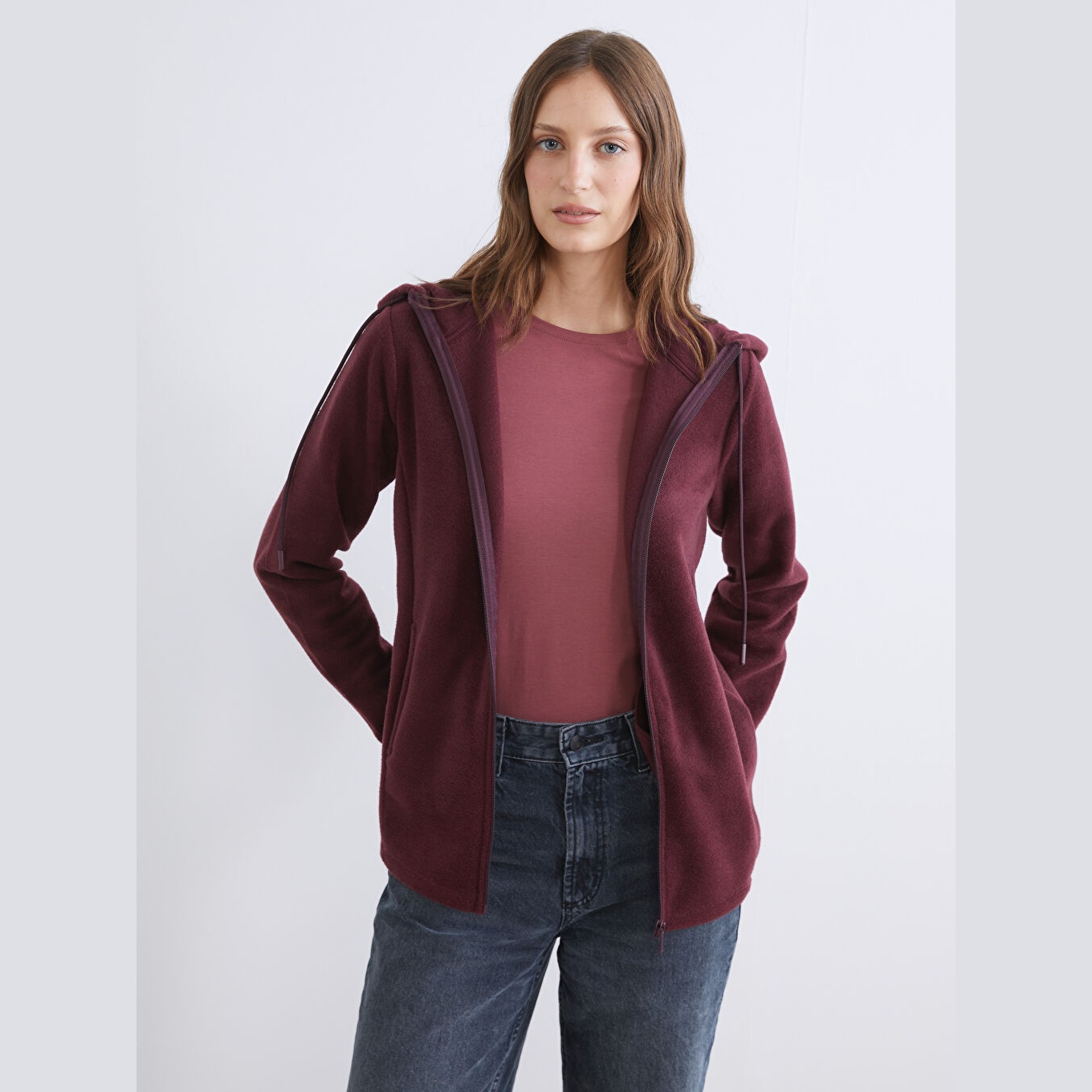 سويت شيرت نسائي بسحاب من LCWAIKIKI Basic – موردم (قصة قياسية، خامة بولار سميكة، تصميم سادة، أكمام طويلة، بقبعة، ضمن مجموعة المقاسات الكبيرة)