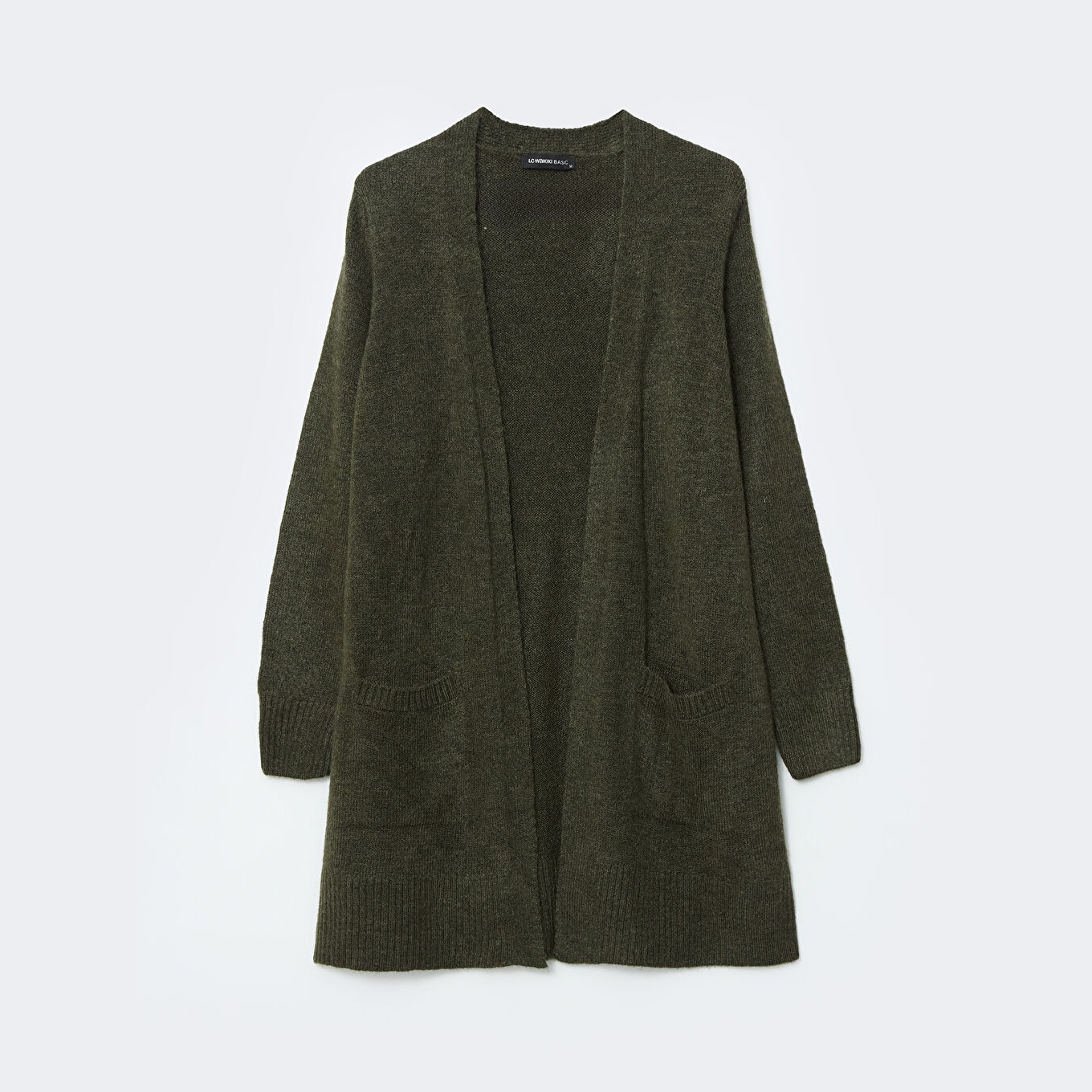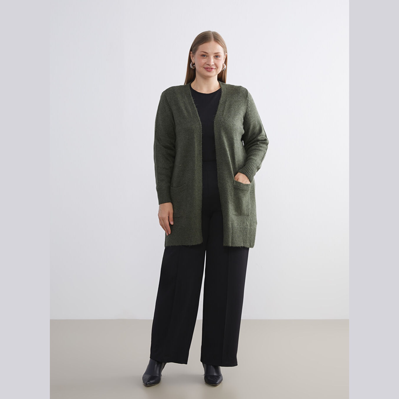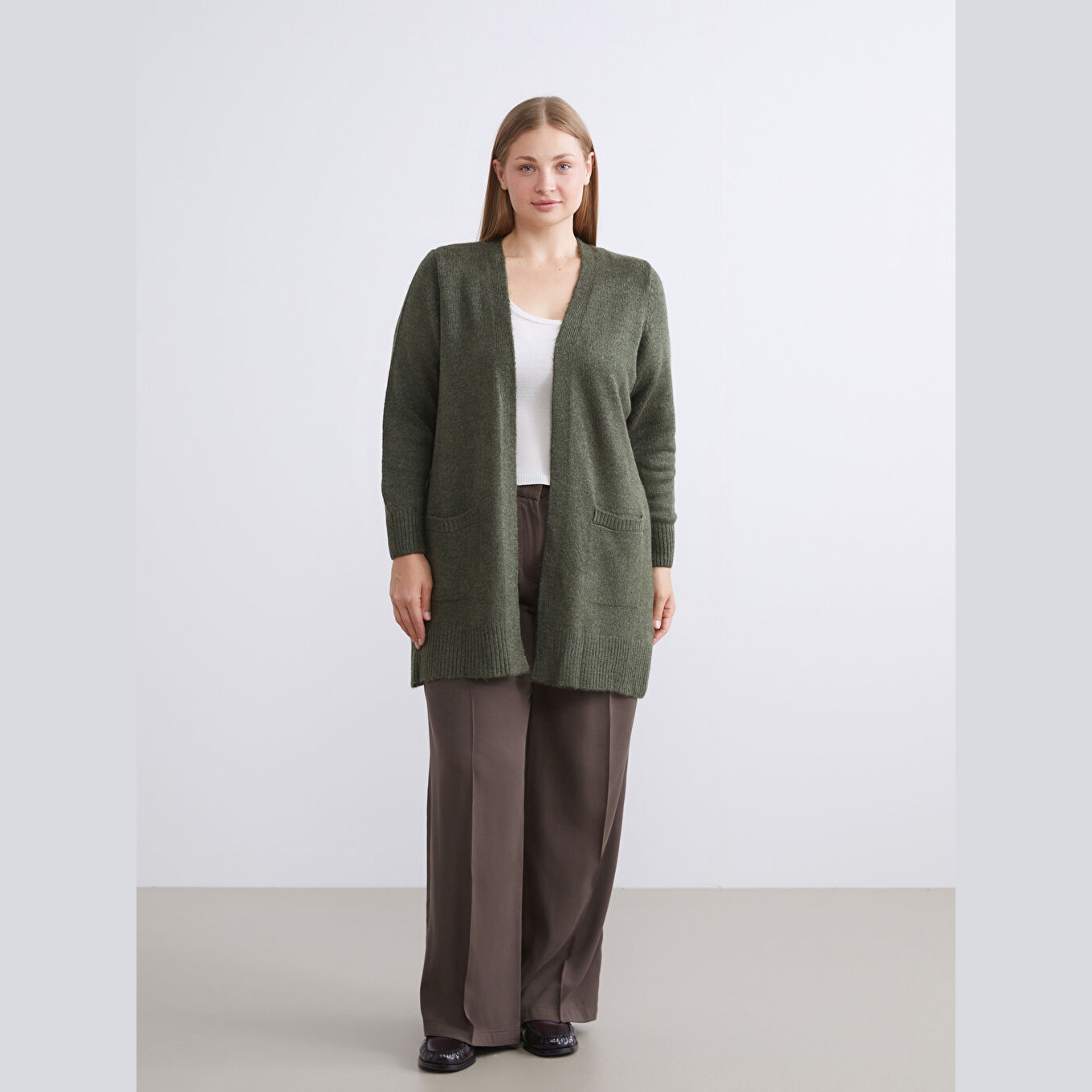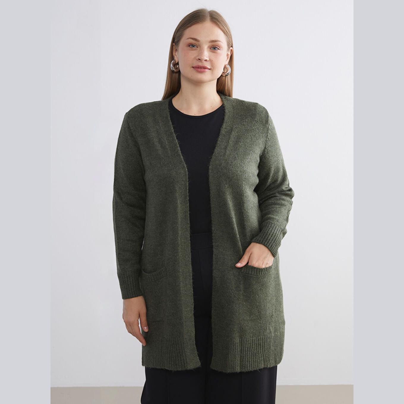 كارديغان نسائي بياقة شال من LCWAIKIKI Classic – زيتي (قصة واسعة، خامة تريكو سميكة، تصميم سادة، أكمام طويلة، مزيج أكريليك وبوليستر، ضمن مجموعة المقاسات الكبيرة)