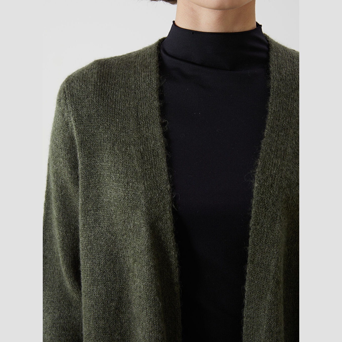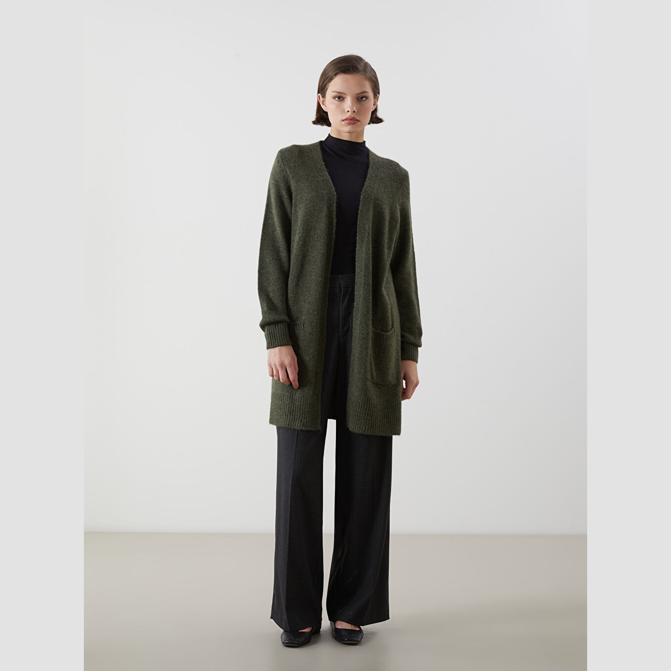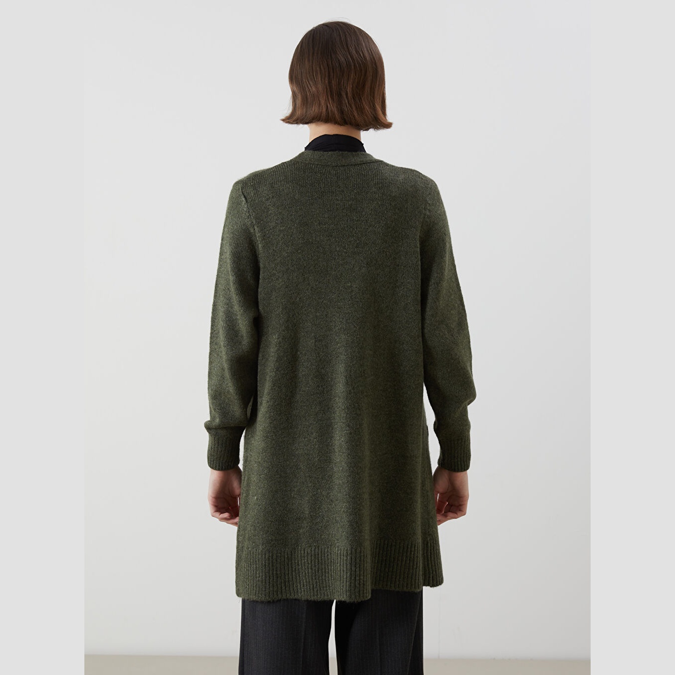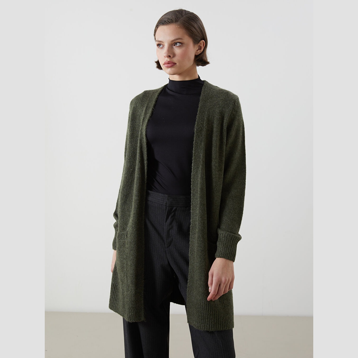 كارديغان نسائي بياقة شال من LCWAIKIKI Classic – زيتي (قصة واسعة، خامة تريكو سميكة، تصميم سادة، أكمام طويلة، مزيج أكريليك وبوليستر، ضمن مجموعة المقاسات الكبيرة)