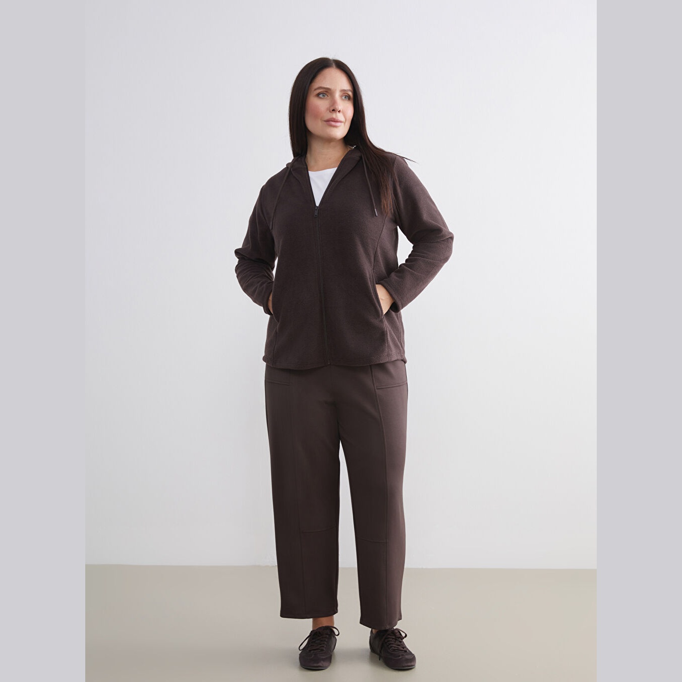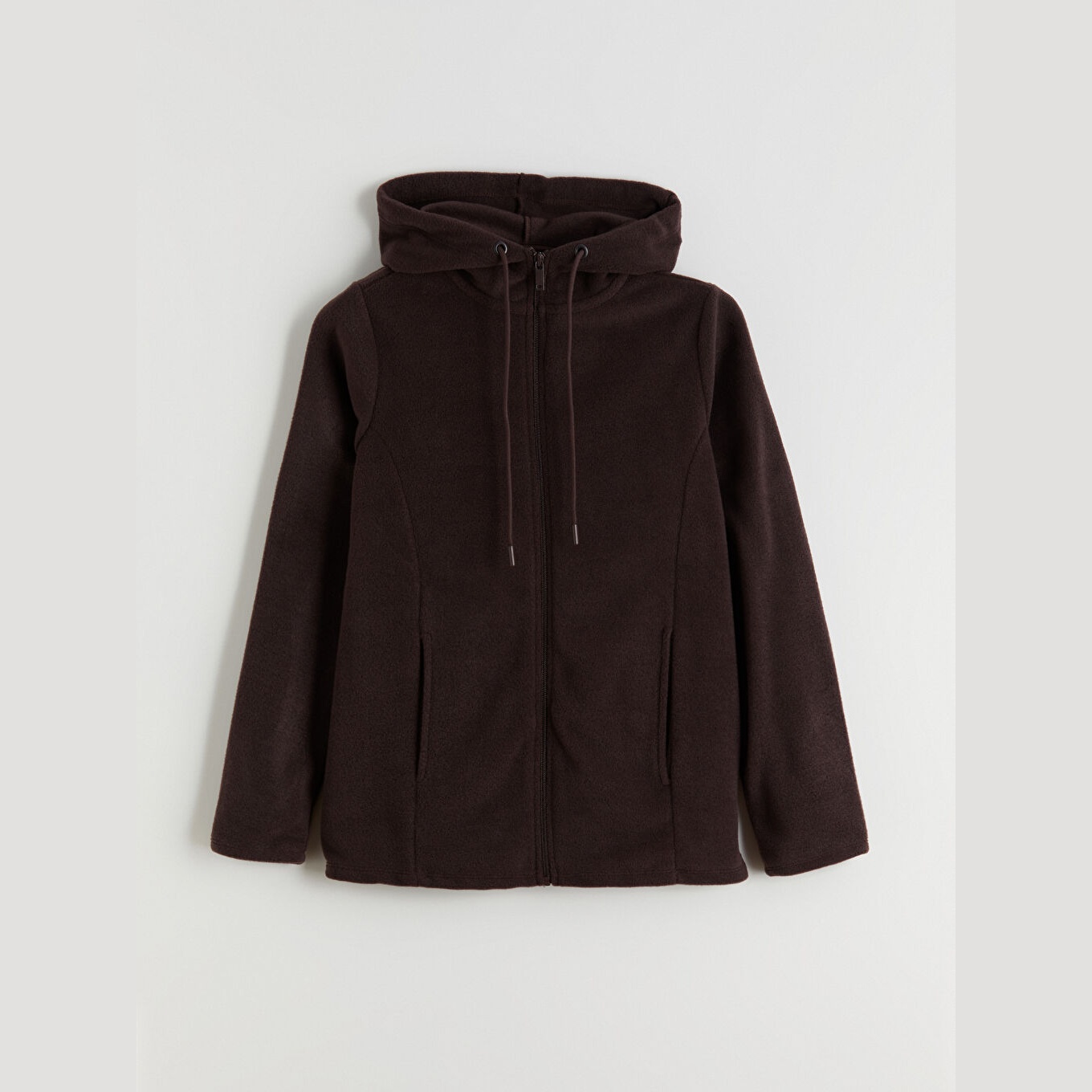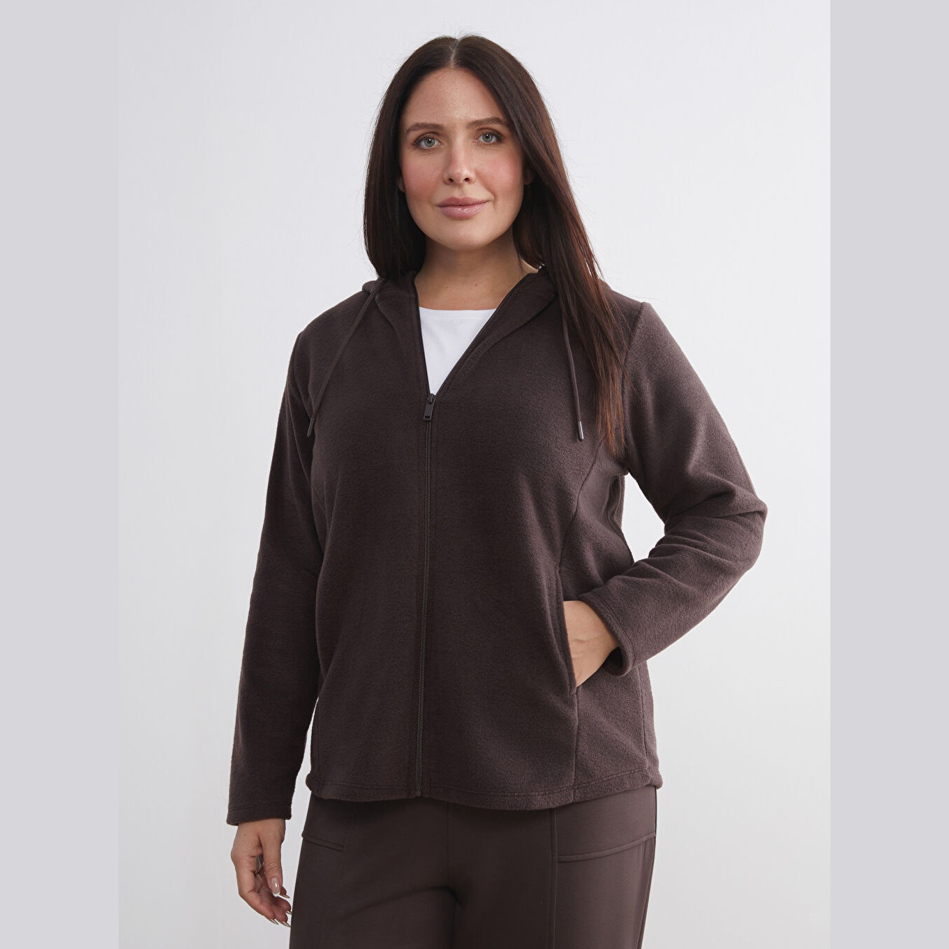 سويت شيرت نسائي بسحاب من LCWAIKIKI Basic – بني بولار بقبعة (قصة قياسية، خامة بوليستر سميكة، تصميم سادة، أكمام طويلة، ضمن مجموعة المقاسات الكبيرة)