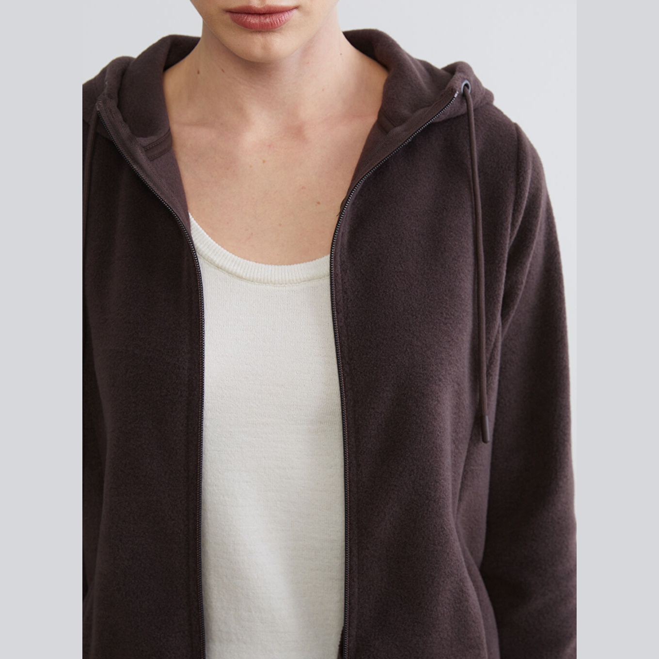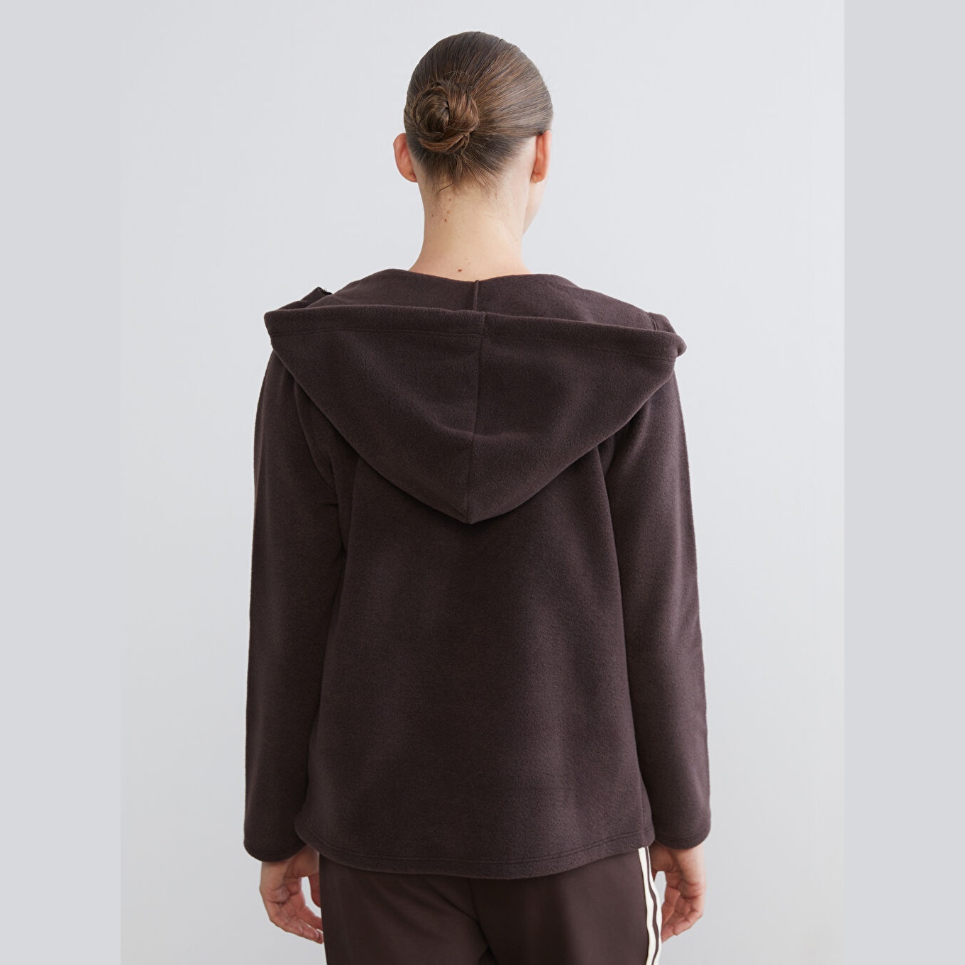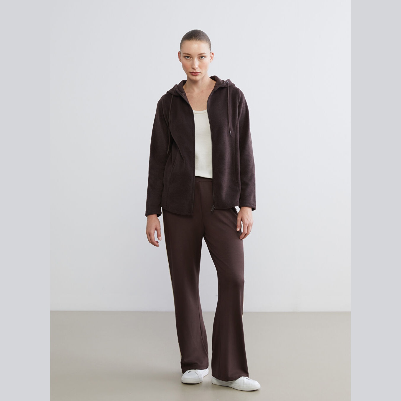 سويت شيرت نسائي بسحاب من LCWAIKIKI Basic – بني بولار بقبعة (قصة قياسية، خامة بوليستر سميكة، تصميم سادة، أكمام طويلة، ضمن مجموعة المقاسات الكبيرة)