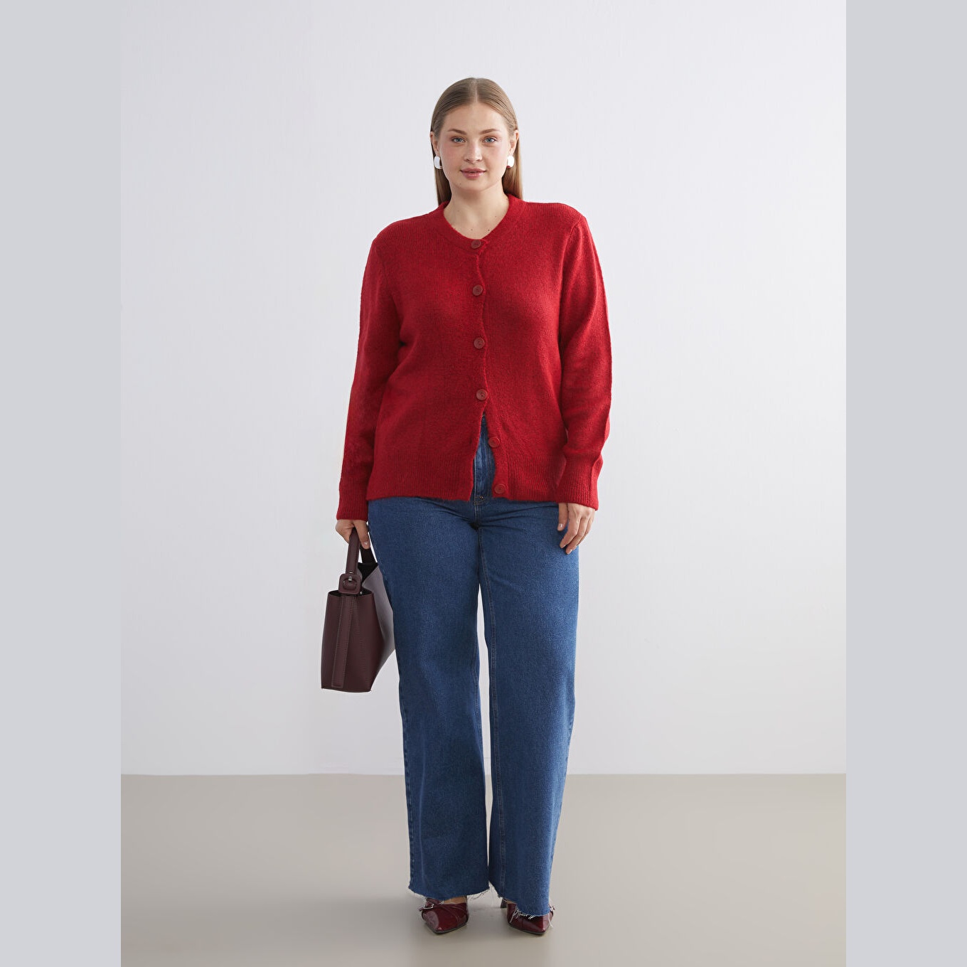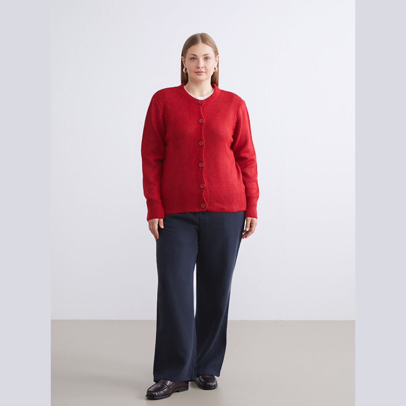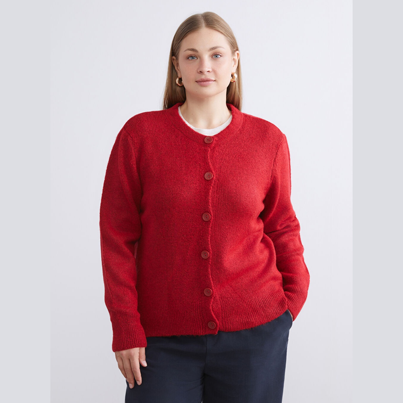 كارديغان دافئ من مجموعة LCWAIKIKI Classic بلون أحمر جذاب، مصمم بياقة دائرية (Bisiklet Yaka) كلاسيكية، أكمام طويلة، قصة Standart & Regular تمنحك مظهرًا مريحًا ومتوازنًا، تصميم سادة بدون نقوش، خامة Triko سميكة بتركيبة تحتوي على 78% أكريليك، 21% بوليستر، و1% إيلاستان لمرونة إضافية، بطول يُقاس من الكتف، مثالي للتنسيق مع بناطيل قماش أو تنانير لإطلالة شتوية أنيقة.