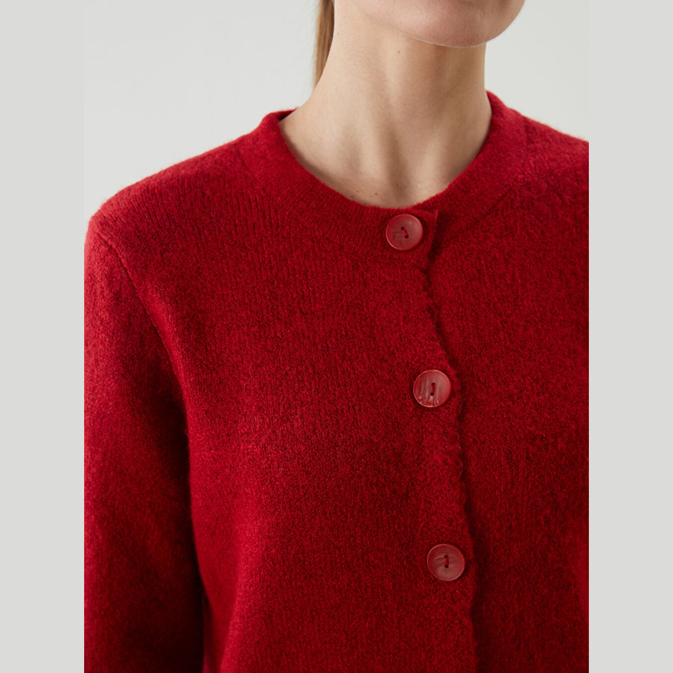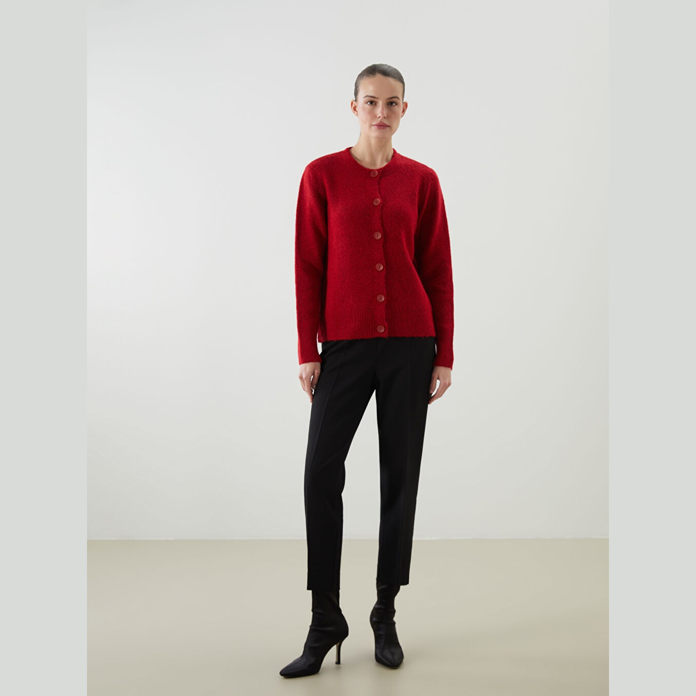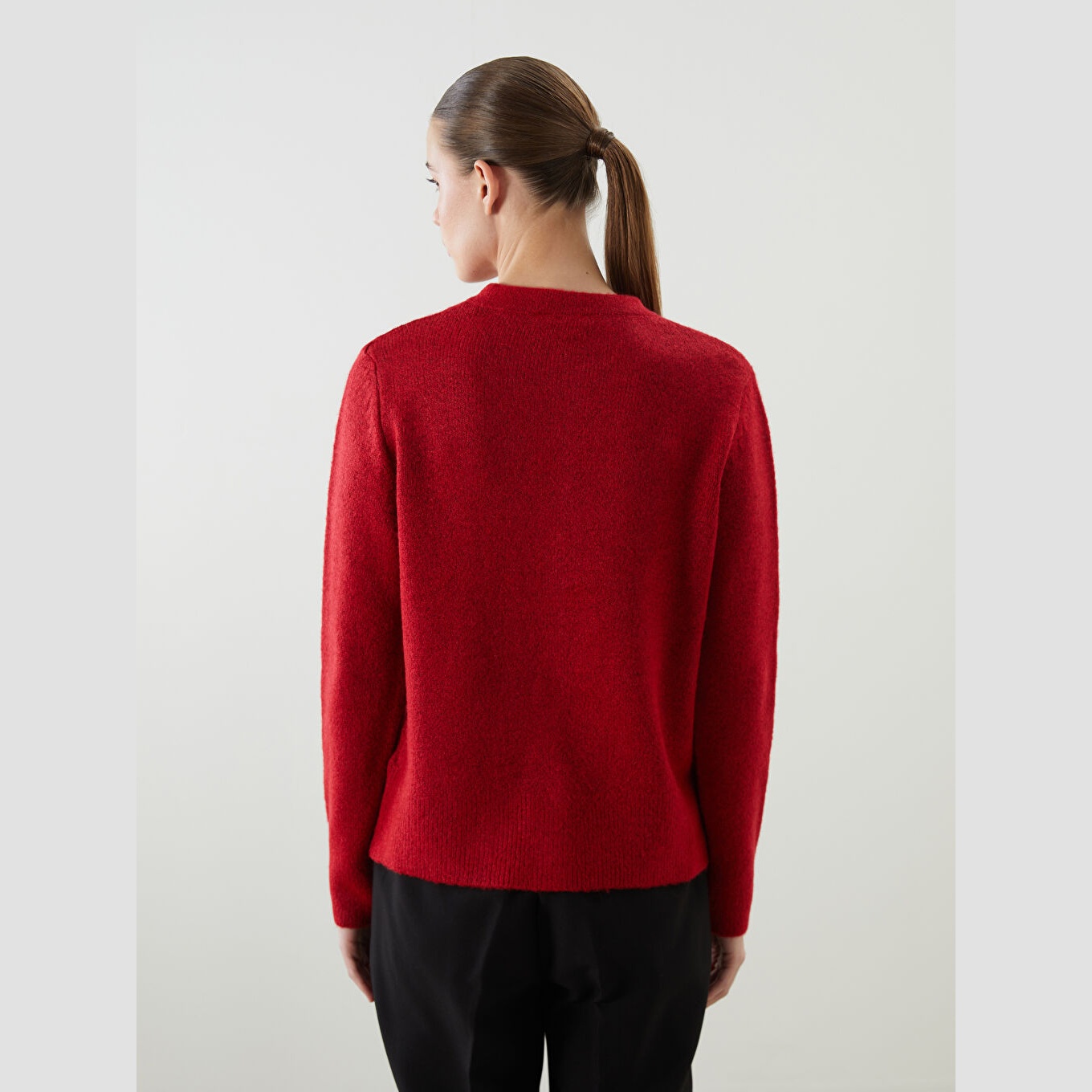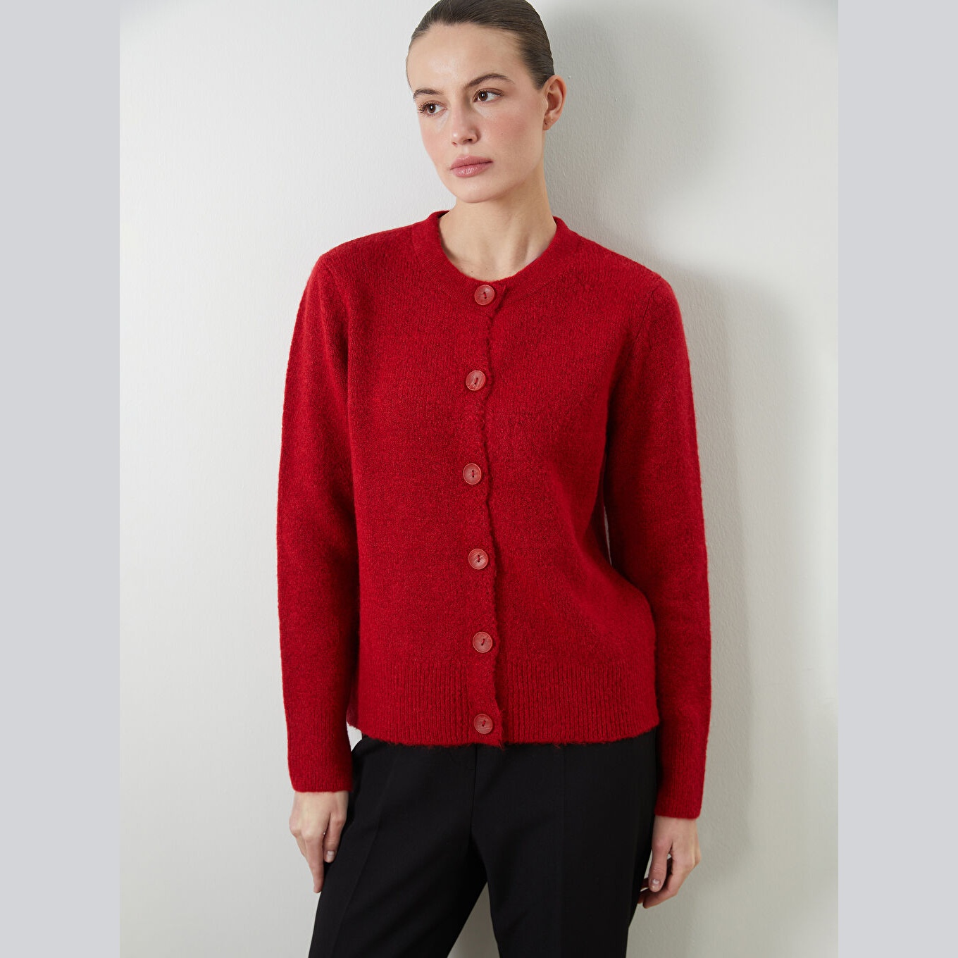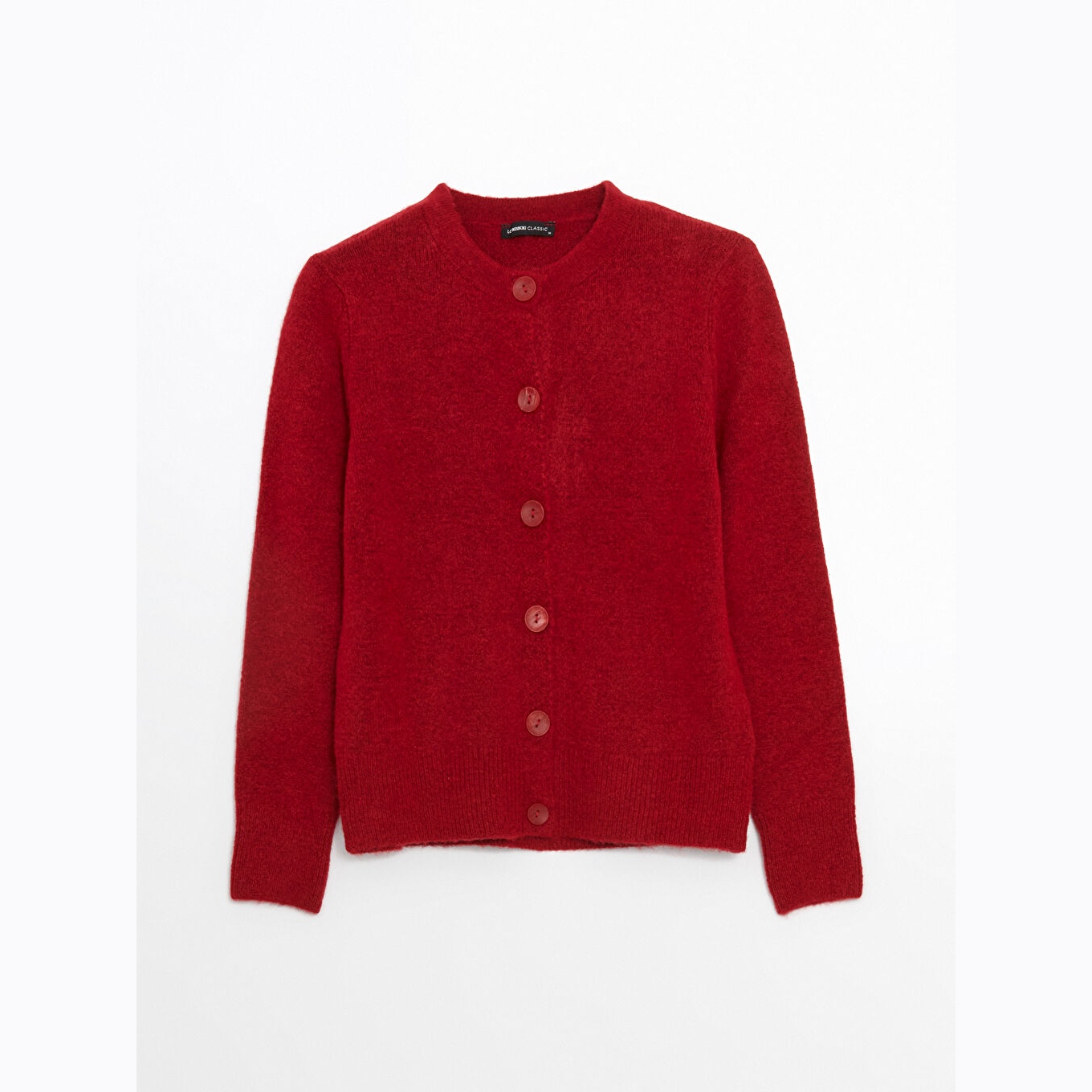 كارديغان نسائي بياقة دائرية من LCWAIKIKI Classic – أحمر (قصة قياسية، خامة تريكو سميكة، تصميم سادة، أكمام طويلة، مزيج أكريليك وبوليستر وإيلاستان)