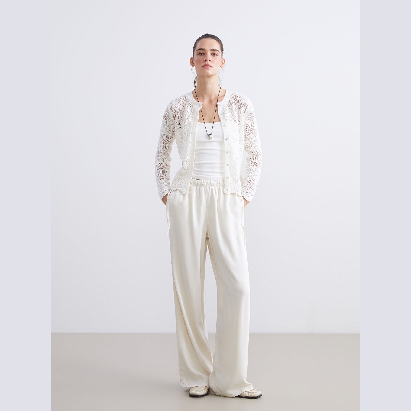كارديغان أنثوي من مجموعة LCW Vision بلون إكرو ناعم، مصمم بياقة دائرية (Bisiklet Yaka)، أكمام طويلة، قصة Dar & Slim تمنحك مظهرًا محددًا وانسيابيًا، تصميم Ajurlu مثقب يضفي لمسة أنيقة وناعمة، خامة Triko خفيفة بتركيبة تحتوي على 61% بوليستر، 34% قطن، و5% فيسكوز، بطول يُقاس من الكتف، مثالي للتنسيق مع تنانير أو بناطيل قماش لإطلالة ربيعية أو مكتبية أنيقة.