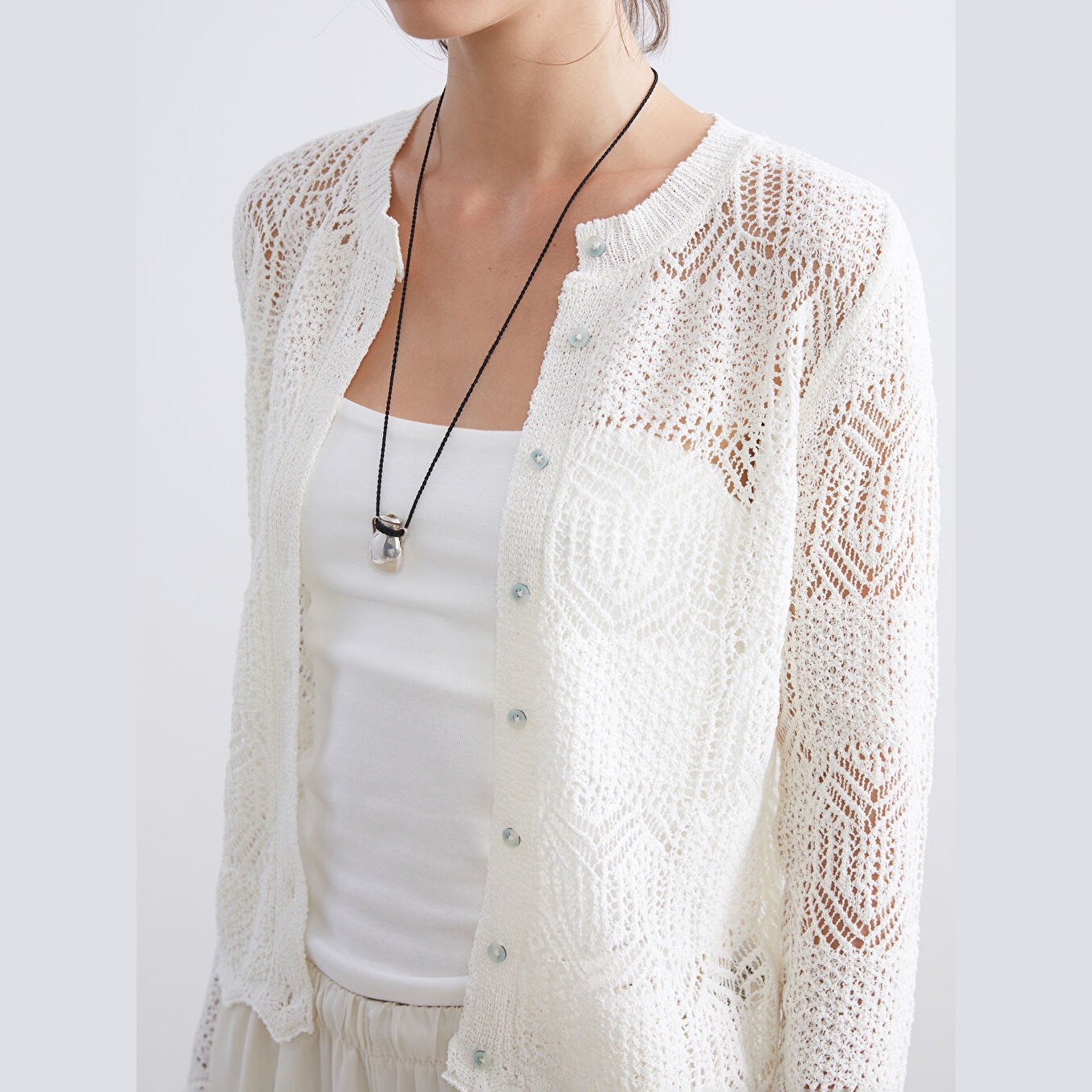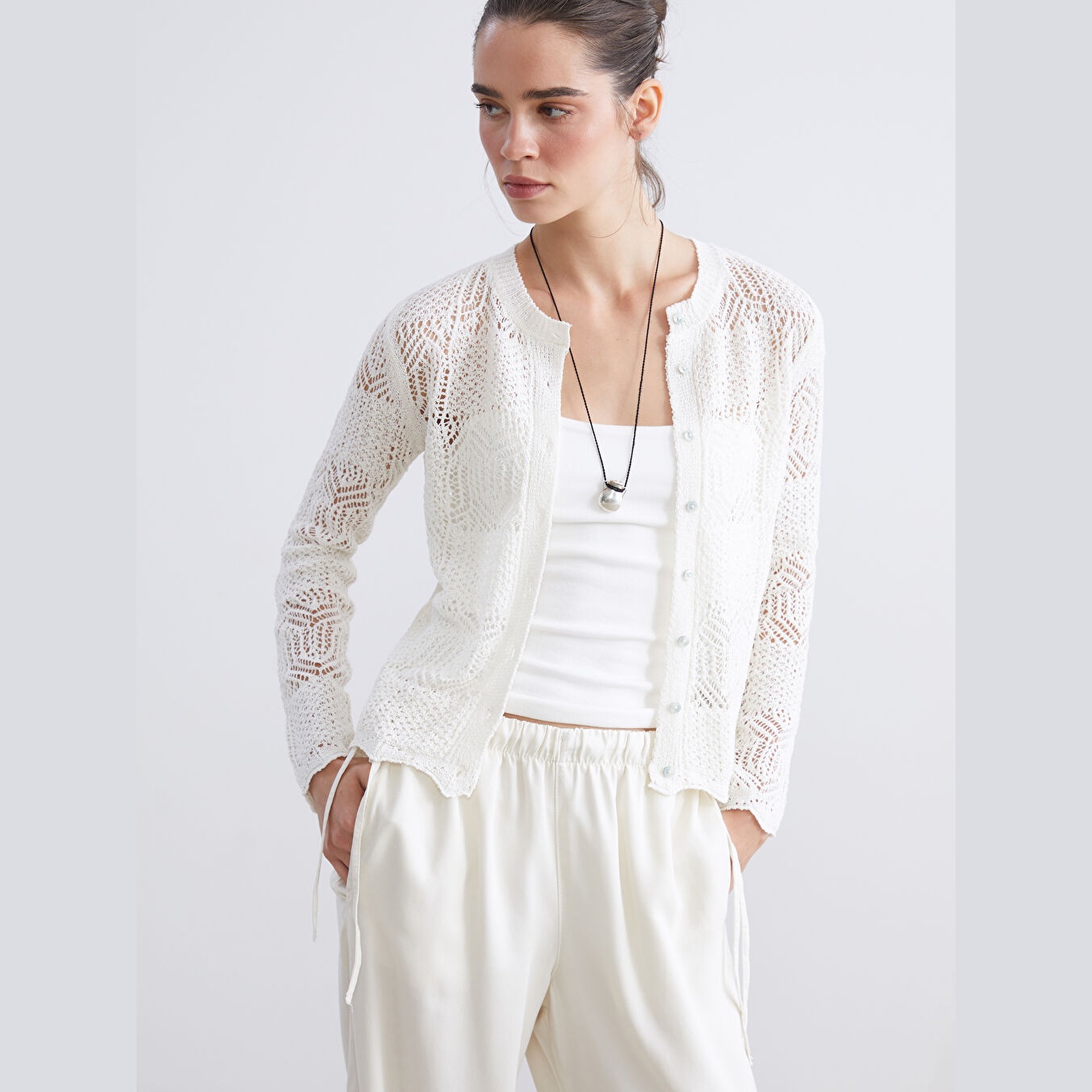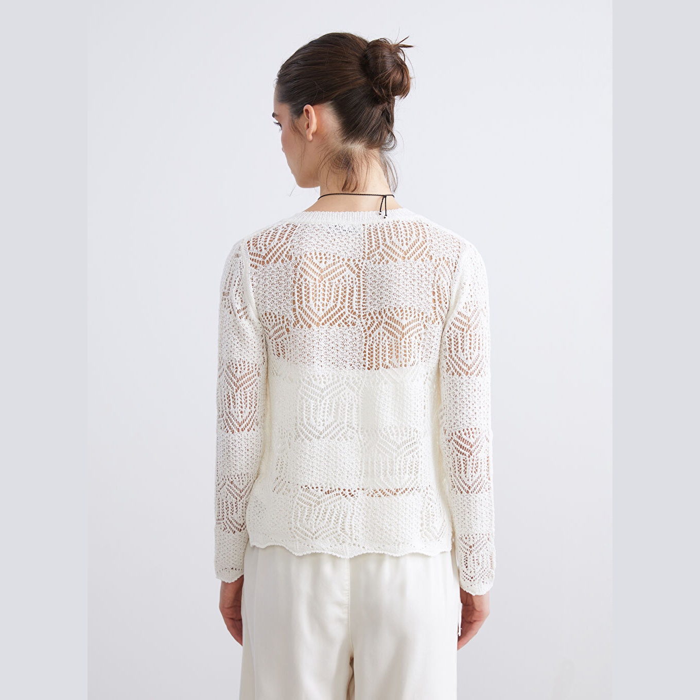 كارديغان نسائي Ajurlu بياقة دائرية من LCW Vision – إكرو (قصة ضيقة، خامة تريكو مثقبة، تصميم سادة، أكمام طويلة، مزيج بوليستر وقطن وفيسكوز)