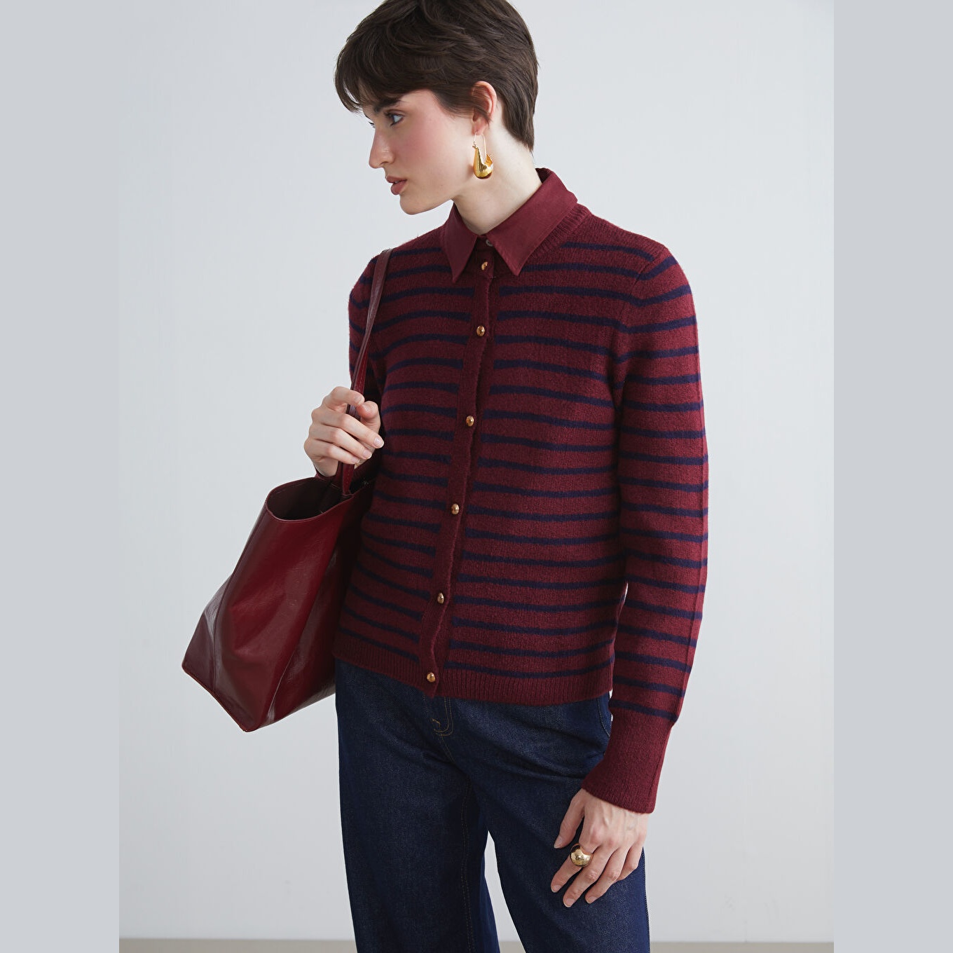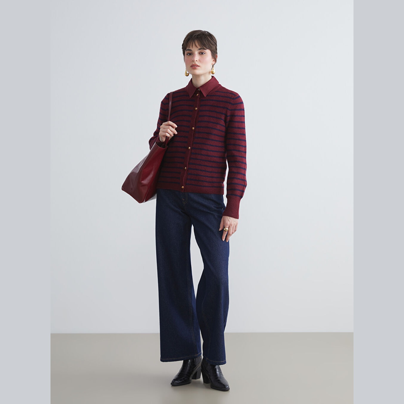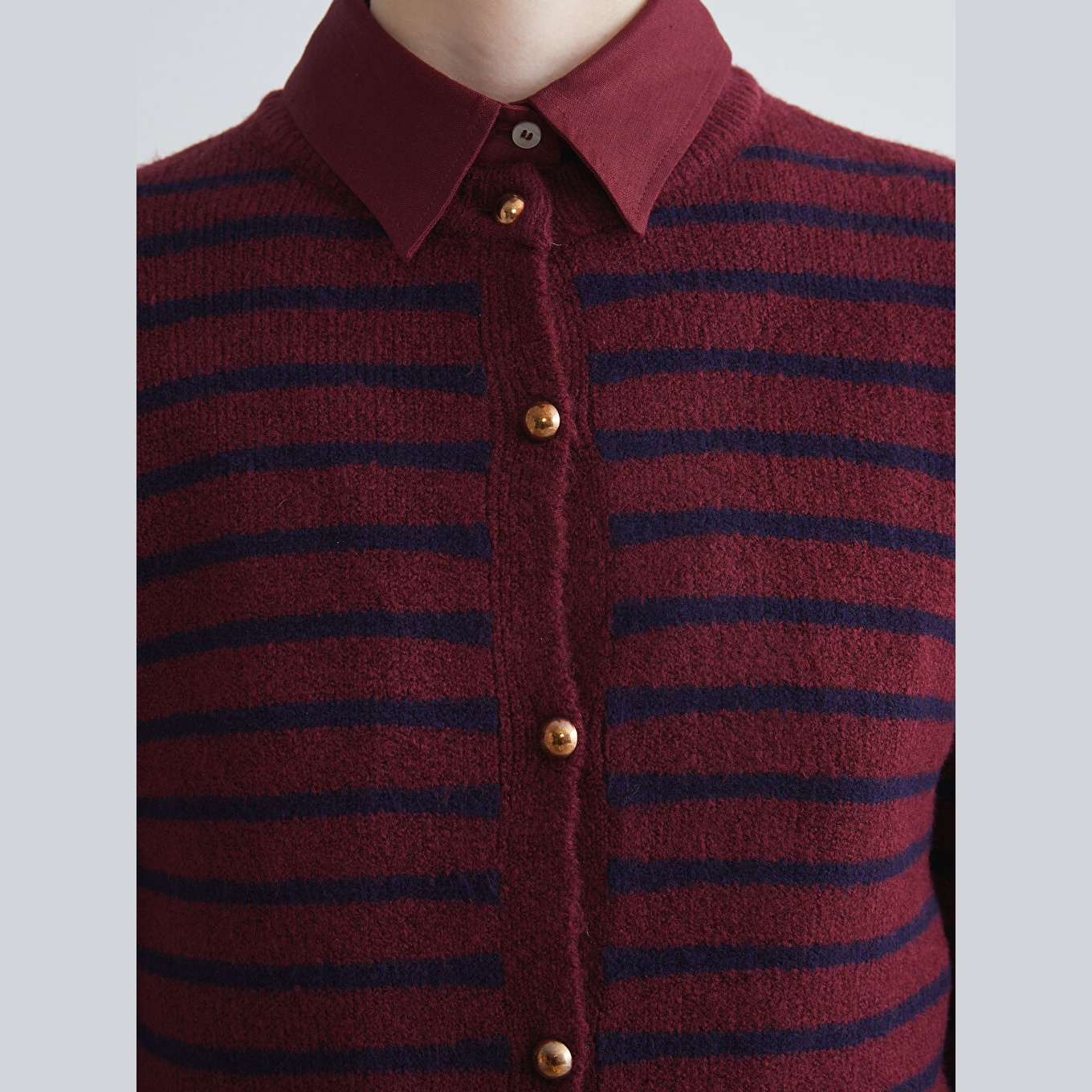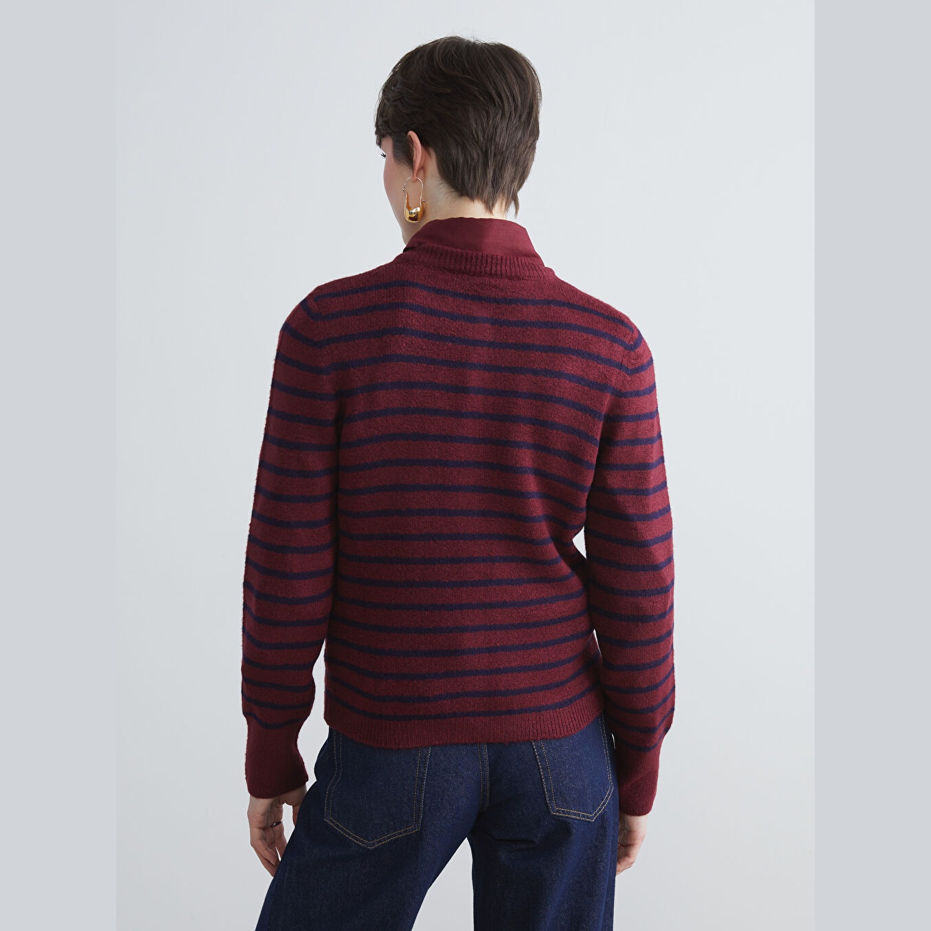 كارديغان نسائي مخطط بياقة دائرية من LCW Vision – بوردو (قصة ضيقة، خامة تريكو متوسطة السماكة، تصميم مخطط، أكمام طويلة)