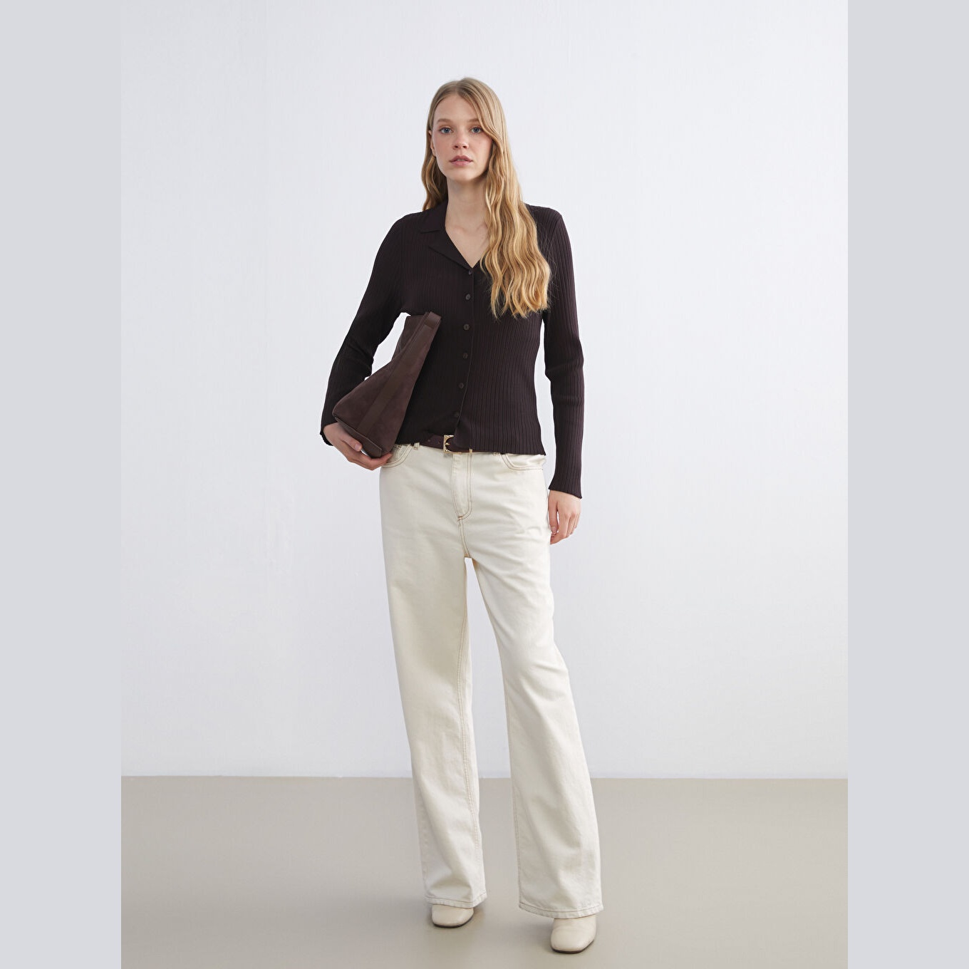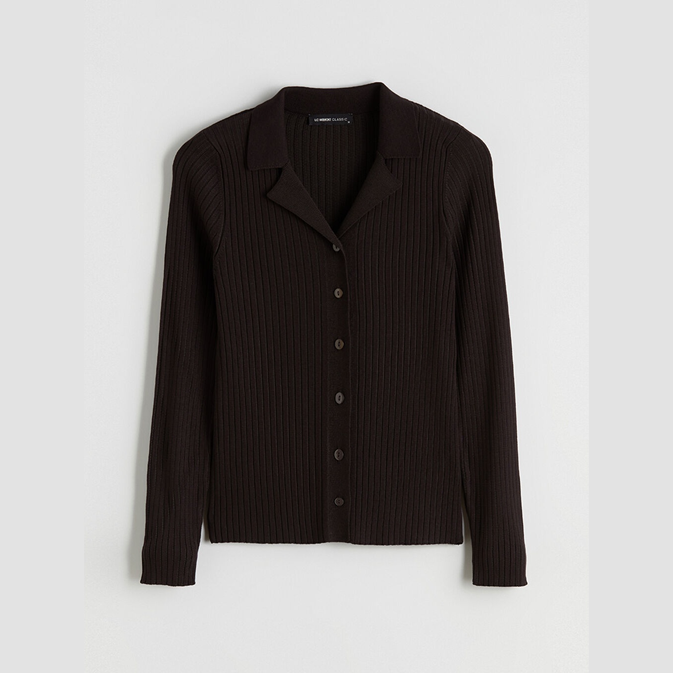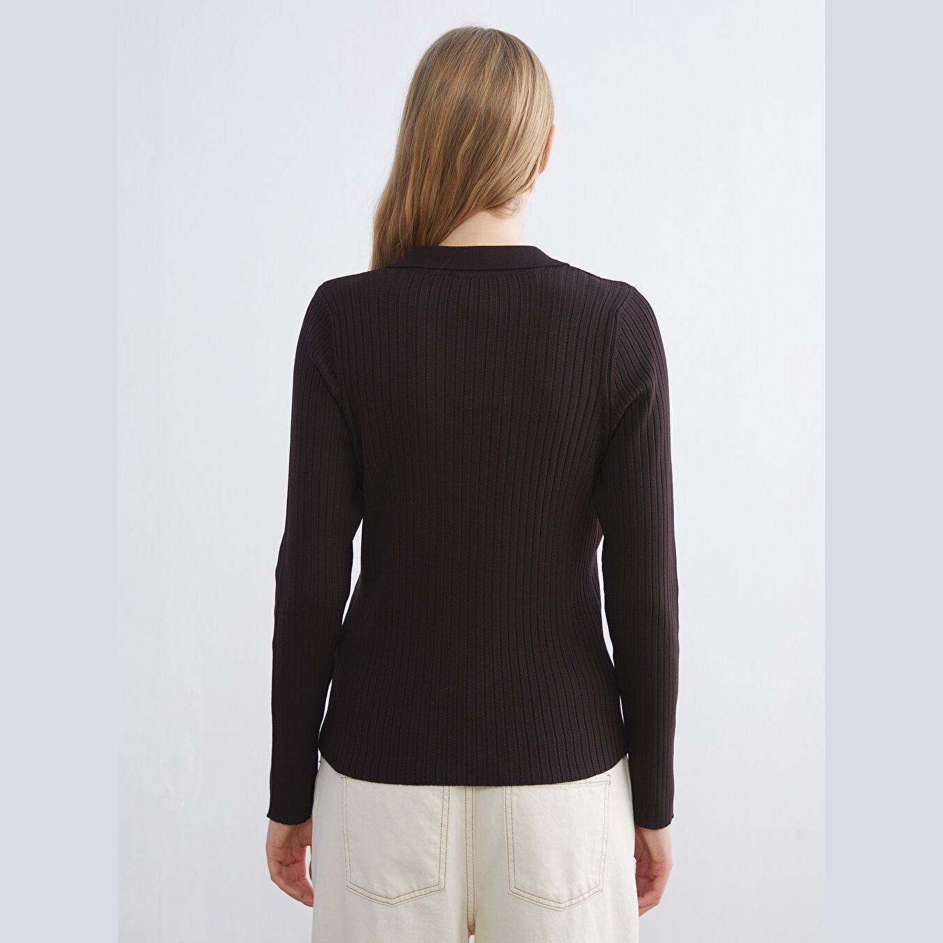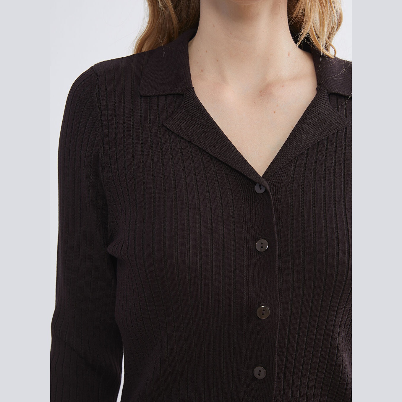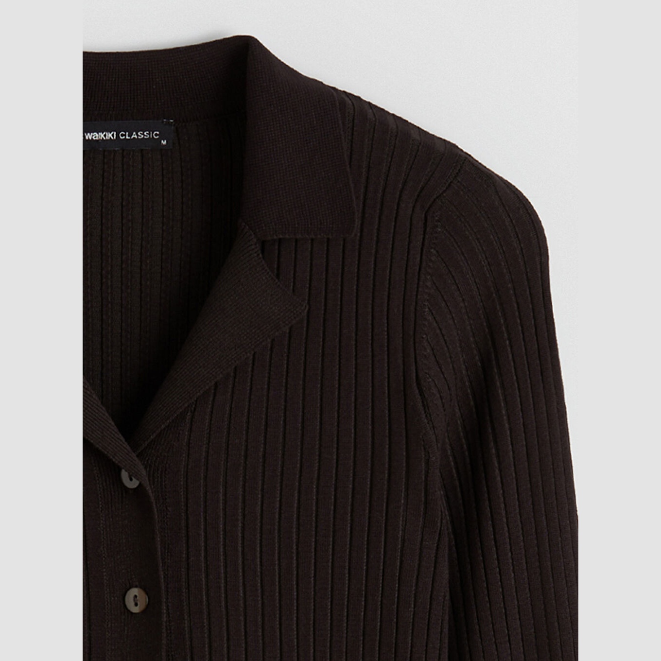 كارديغان نسائي بياقة بولو من LCWAIKIKI Classic – بني (قصة سوبر سكينّي، خامة تريكو ناعمة، تصميم سادة، بزر أمامي)