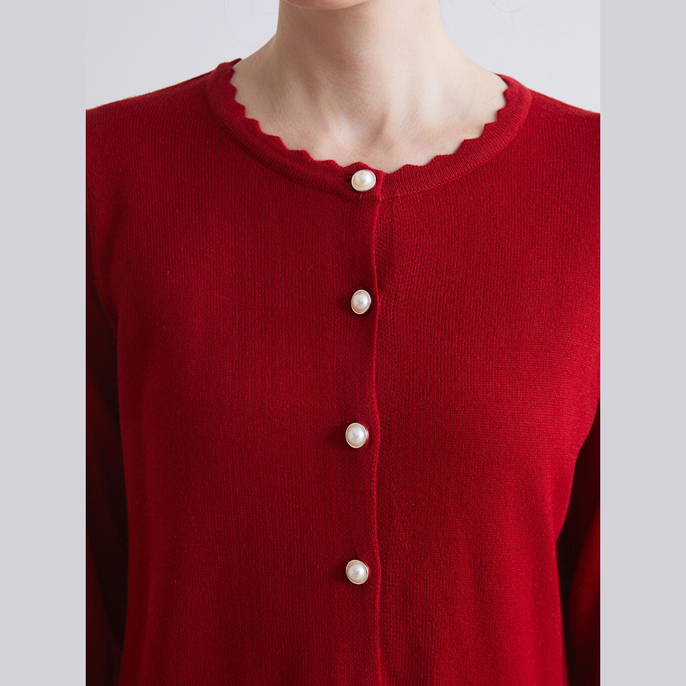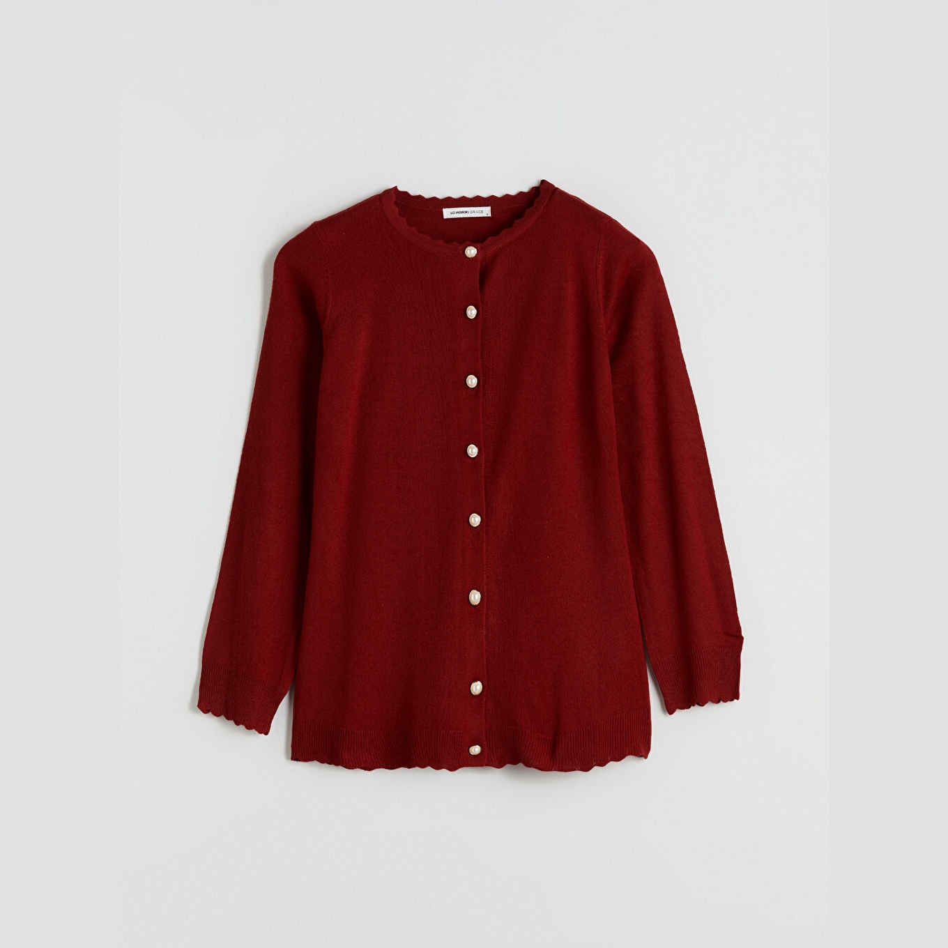 كارديغان نسائي بياقة دائرية من LCW Grace – أحمر (قصة قياسية، خامة تريكو متوسطة السماكة، تصميم سادة، بزر أمامي، طول ميدي)