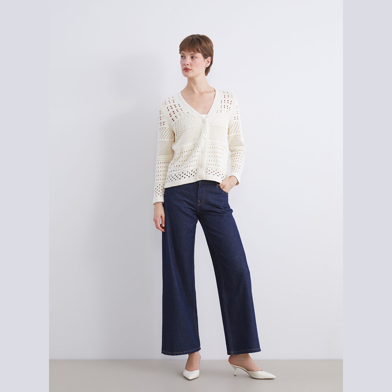 كارديغان عملي من مجموعة LCW Comfort بلون إكرو حيادي، مصمم بياقة V أنثوية، أكمام طويلة، قصة Standart & Regular تمنحك مظهرًا مريحًا ومتوازنًا، تصميم Ajurlu مخرم يضفي لمسة ناعمة وفاخرة، خامة Triko متوسطة السماكة بتركيبة تحتوي على 72% بوليستر و28% قطن، بطول يُقاس من الكتف، مثالي لفترة الحمل وما بعدها بفضل القصة المريحة والخامة المرنة، مناسب للتنسيق مع بناطيل قماش أو جينز لإطلالة يومية أنيقة وعملية.
